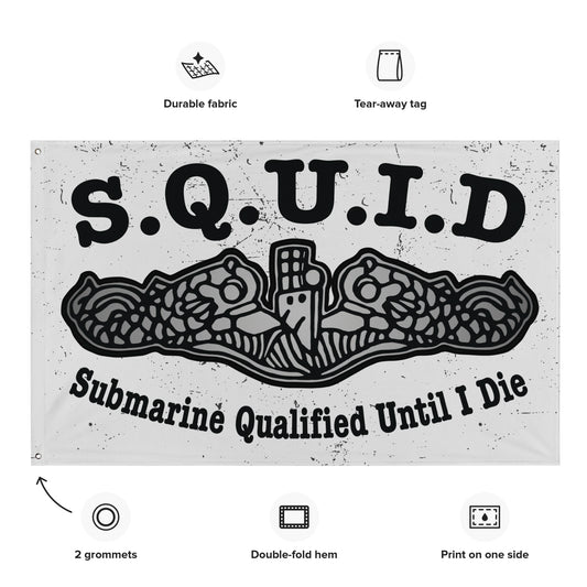 United States Navy S.Q.U.I.D. Submarine Qualified Until I Die Silver Dolphins Distressed White Flag