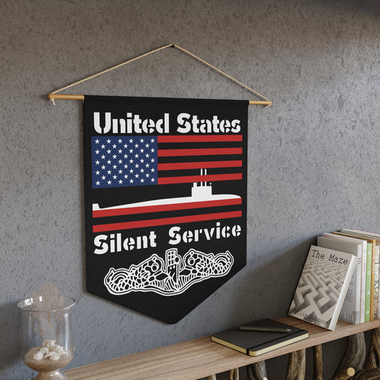 United States Navy Submarine Force Silent Service Flag with Dolphins on Black Pennant