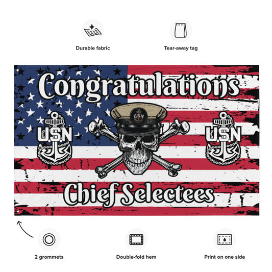 US Navy CPO Skull & Crossbones and Anchors Congrats Chief Selectees USA Distressed Flag