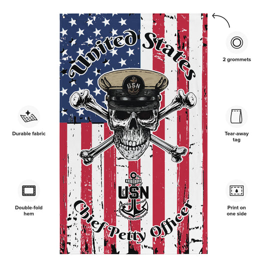 United States Navy Chief Petty Officer Skull Crossbones Distressed American Flag