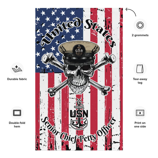 United States Navy Senior Chief Petty Officer Skull Crossbones Distressed American Flag