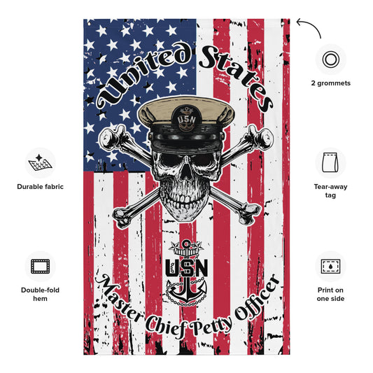United States Navy Master Chief Petty Officer Skull Crossbones Distressed American Flag