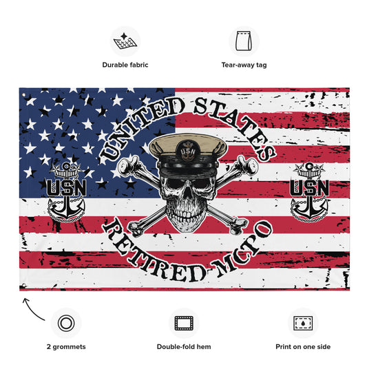 US Navy Retired MCPO Chief Skull Crossbones Distressed American Flag