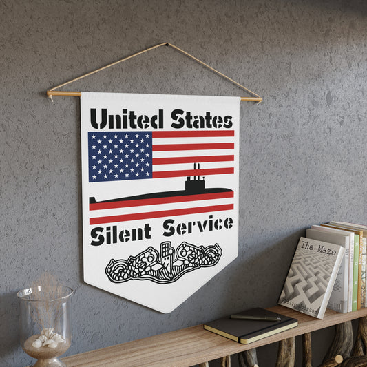 United States Navy Submarine Force Silent Service USA Flag with Dolphins on White Pennant
