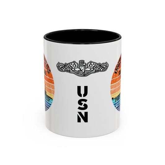 Sunset United States Navy Submarine Force Pride Runs Deep Distressed Accent Coffee Mugs