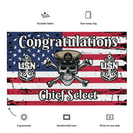 US Navy CPO Skull & Crossbones and Anchors Congrats Chief Select USA Distressed Flag