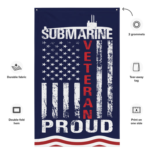 US Navy Submarine Veteran Proud Distressed USA Flag on Blue Flag