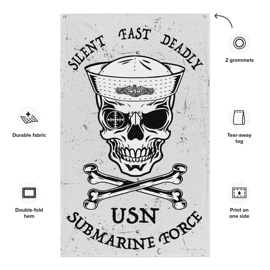 US Navy Submarine Force Silent Fast Deadly Skull Crossbones Sailor Distressed White Flag
