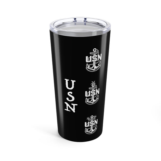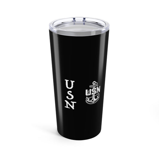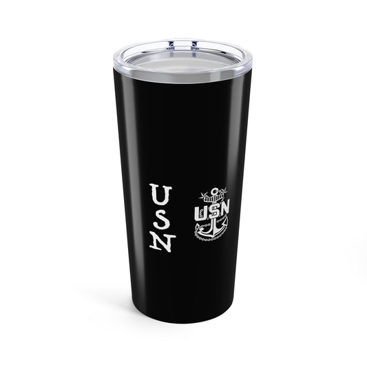 United States FCPO Skull Crossbones First Class Sailor with Navy Dolphins Blue Stainless Steel Tumbler 20oz