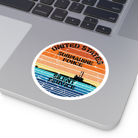 Sunset United States Submarine Force Silent Service Distressed Round Sticker