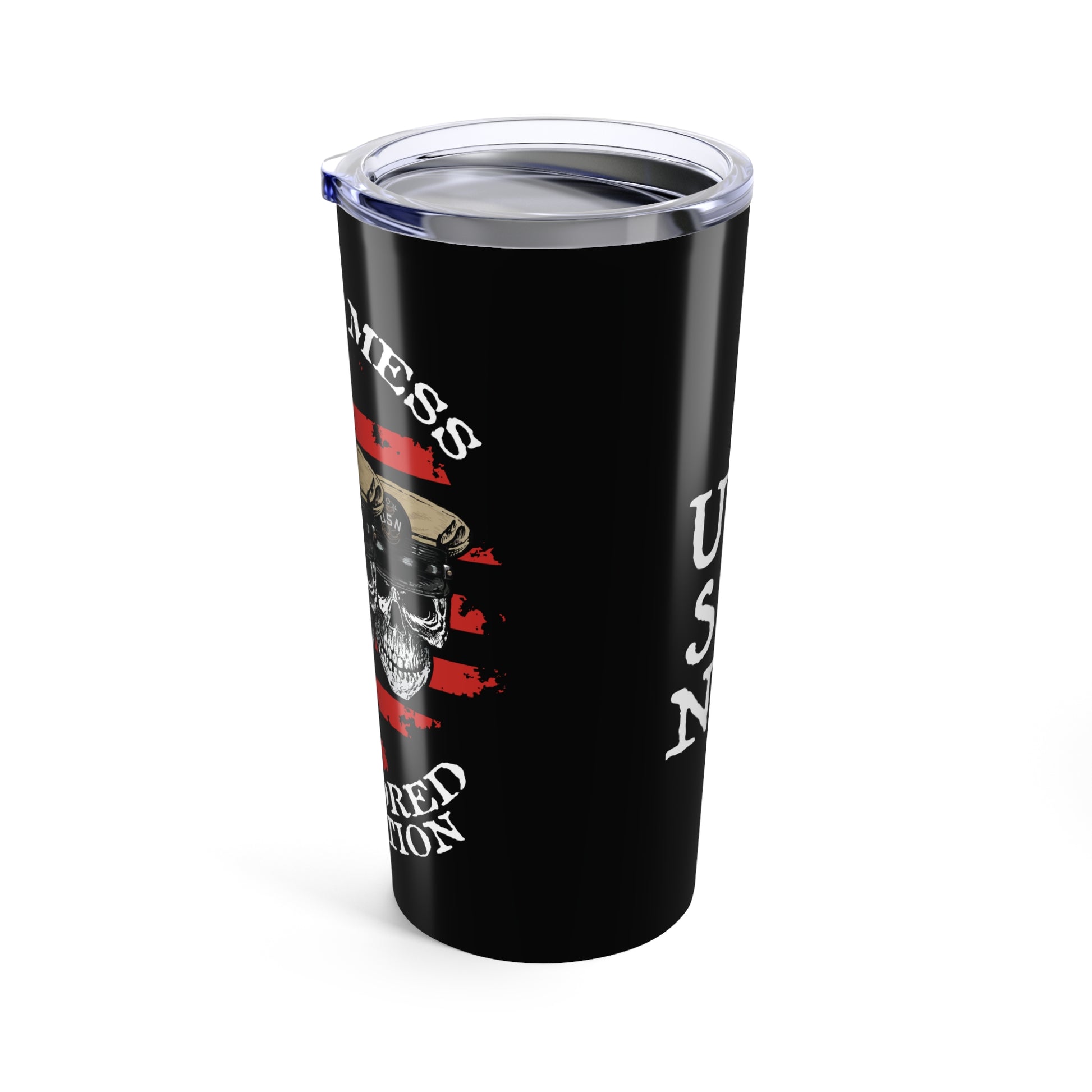 Chief's Mess Anchored Tradition CPO Sailor Skull's with Distressed USA Flag 20oz Stainless-Steel Tumbler.