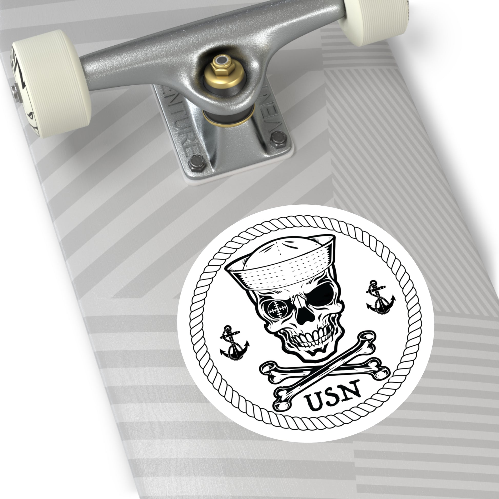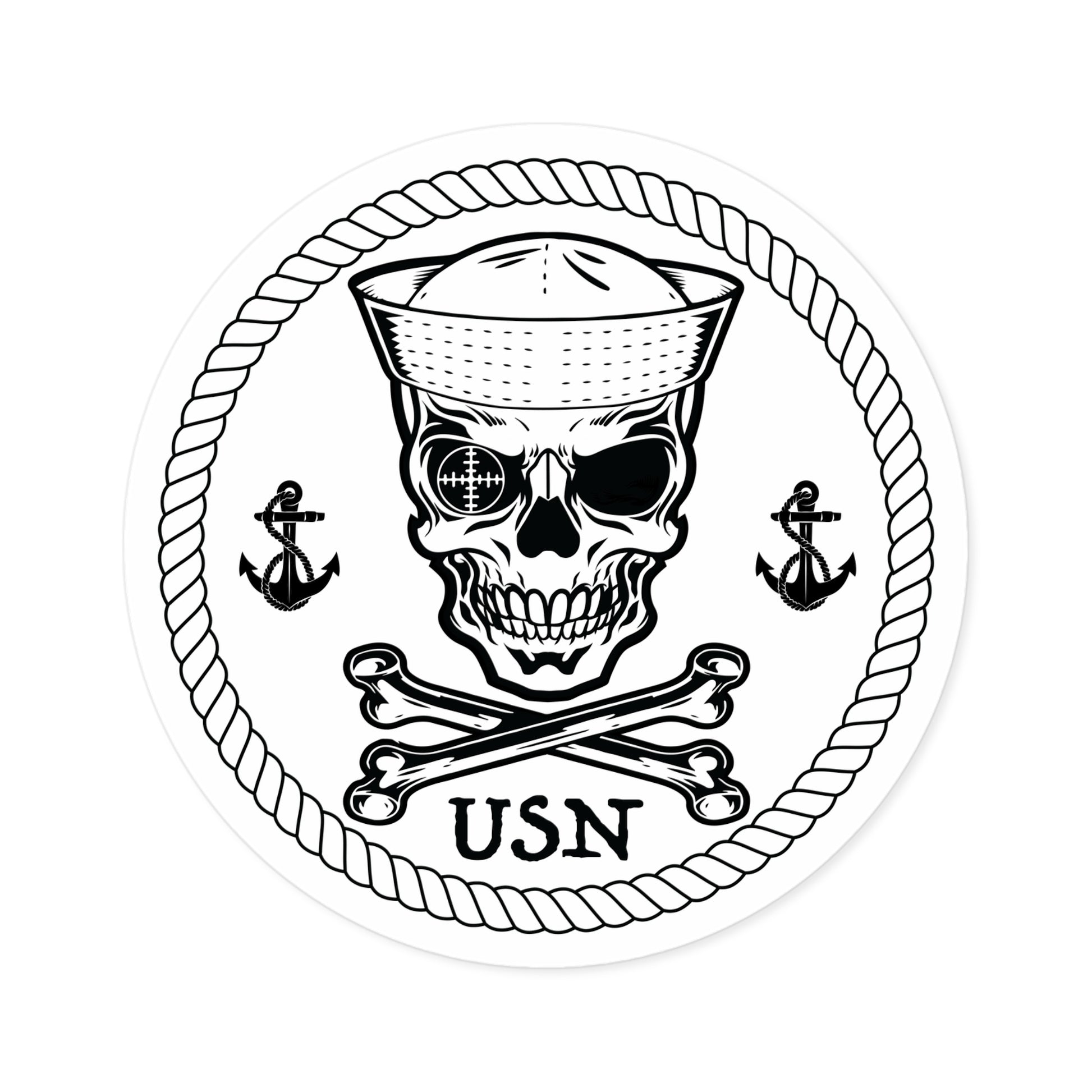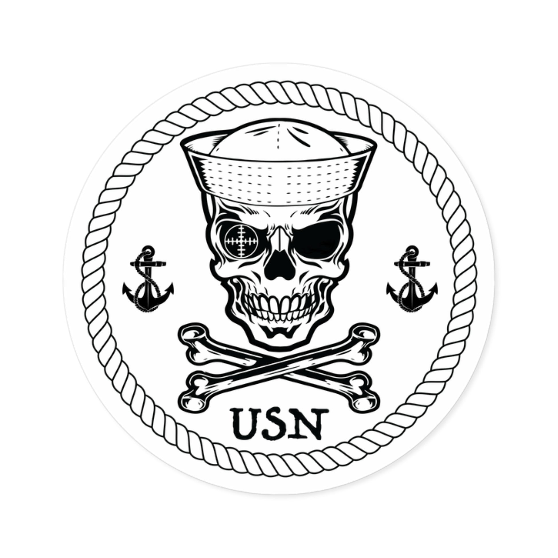 Navy Sailor Skull Crossbones Crosshairs Sailor with Anchors Round Stickers.