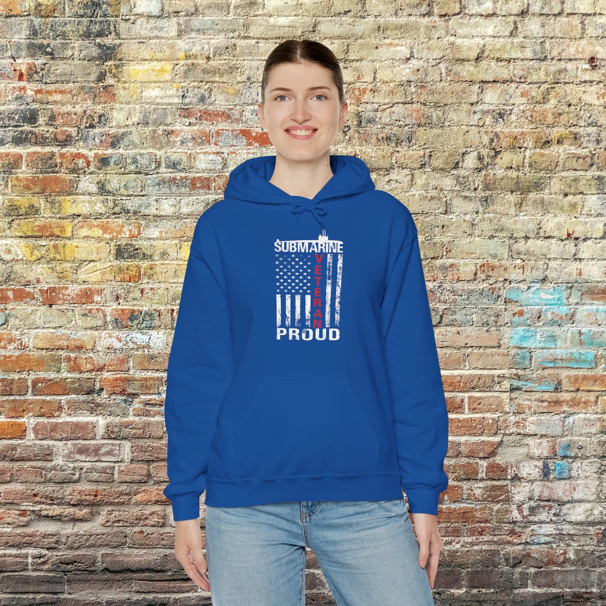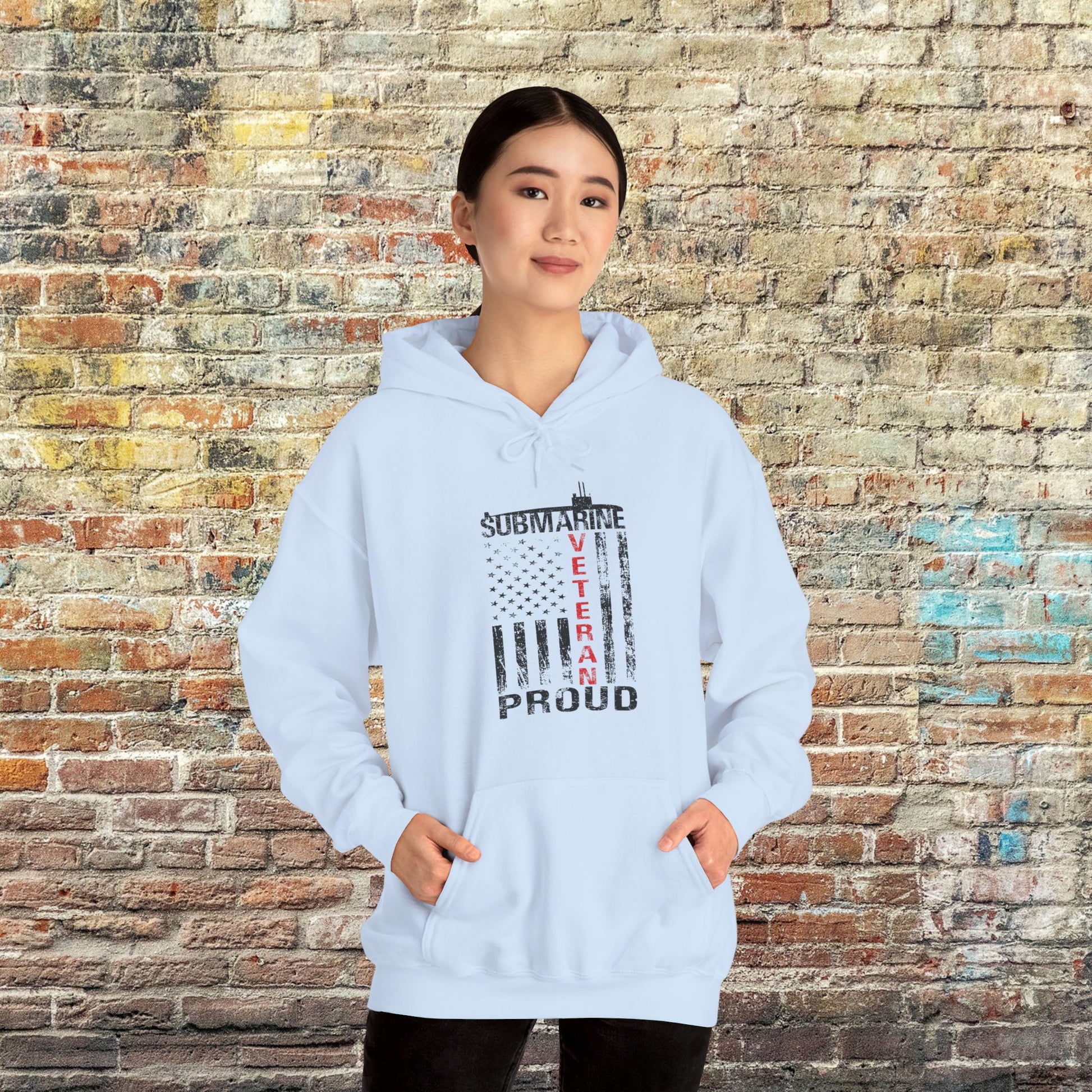 Submarine Veteran Proud Distressed USA Flag with Submarine Unisex Heavy Blend™ Hooded Sweatshirt