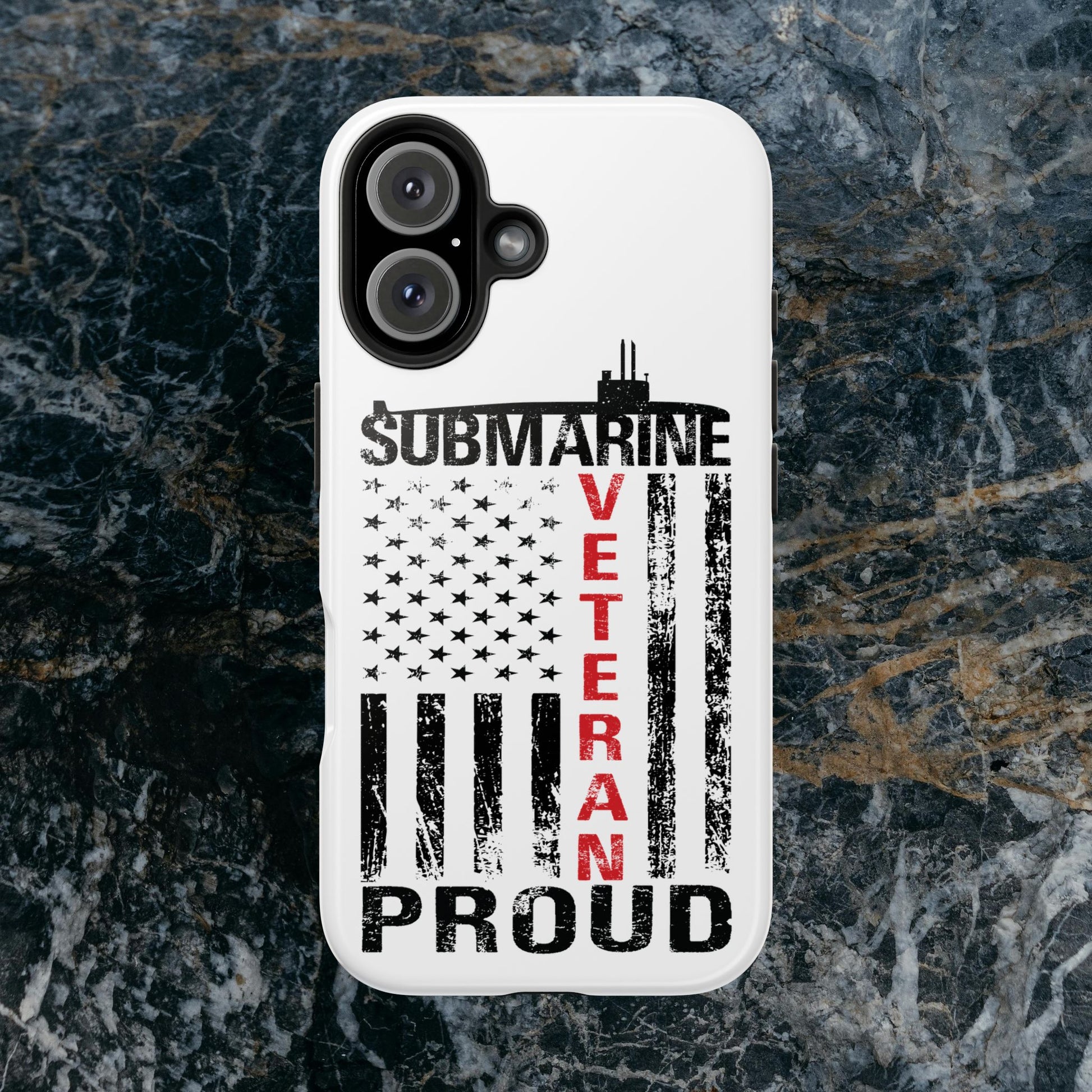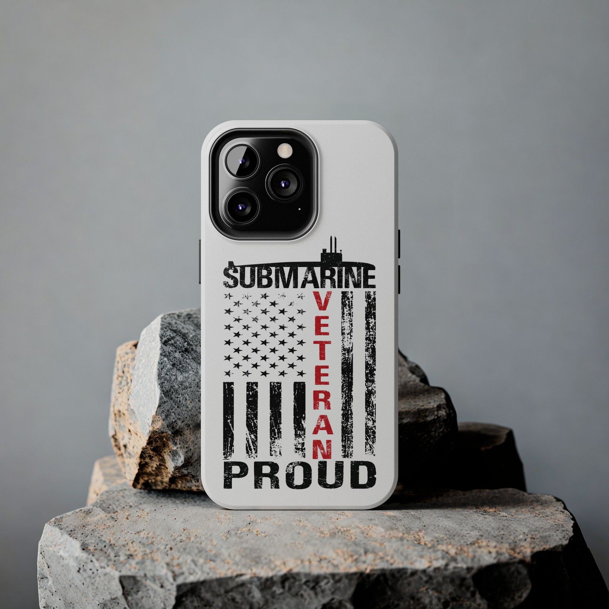 Submarine Veteran Proud Distressed White Flag White Tough iPhone Case