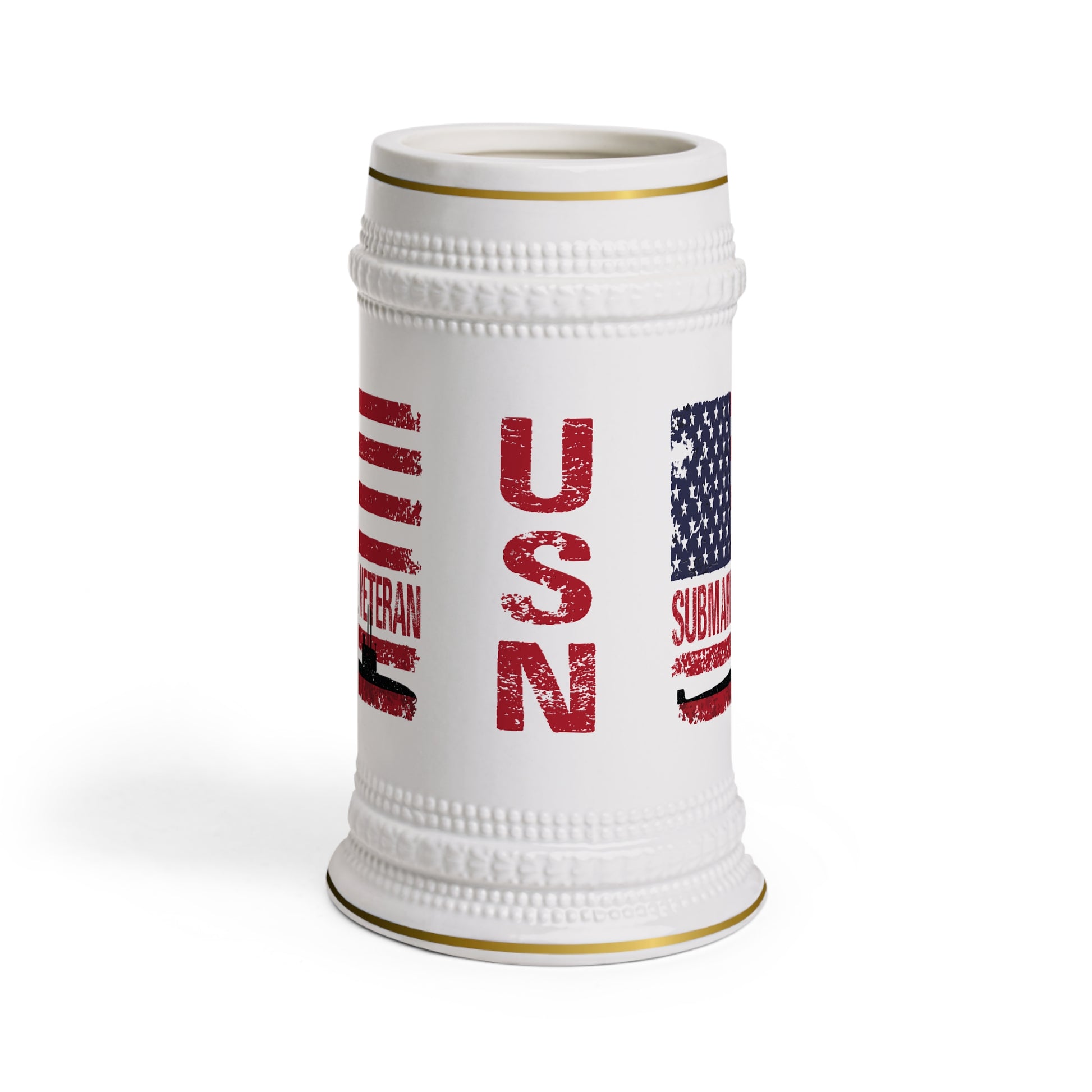 Submarine Veteran United States Navy Silent Service USA Flag Drinking Stein Mug.