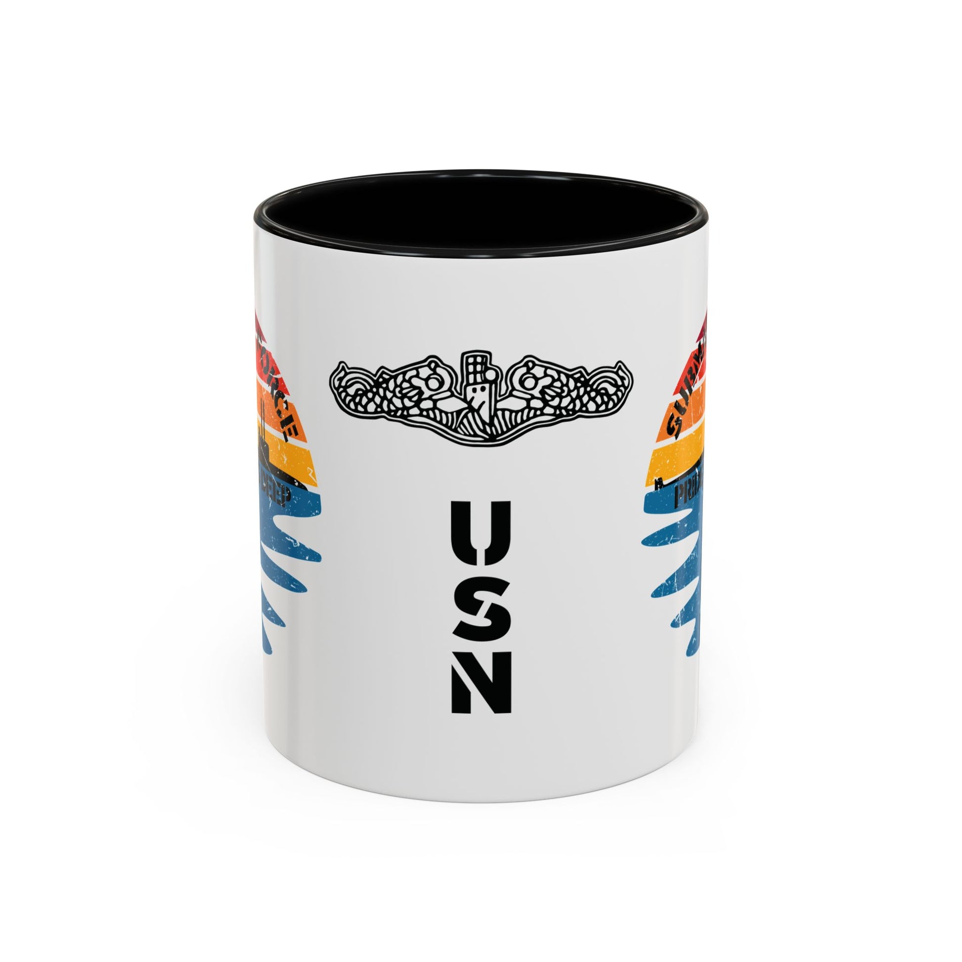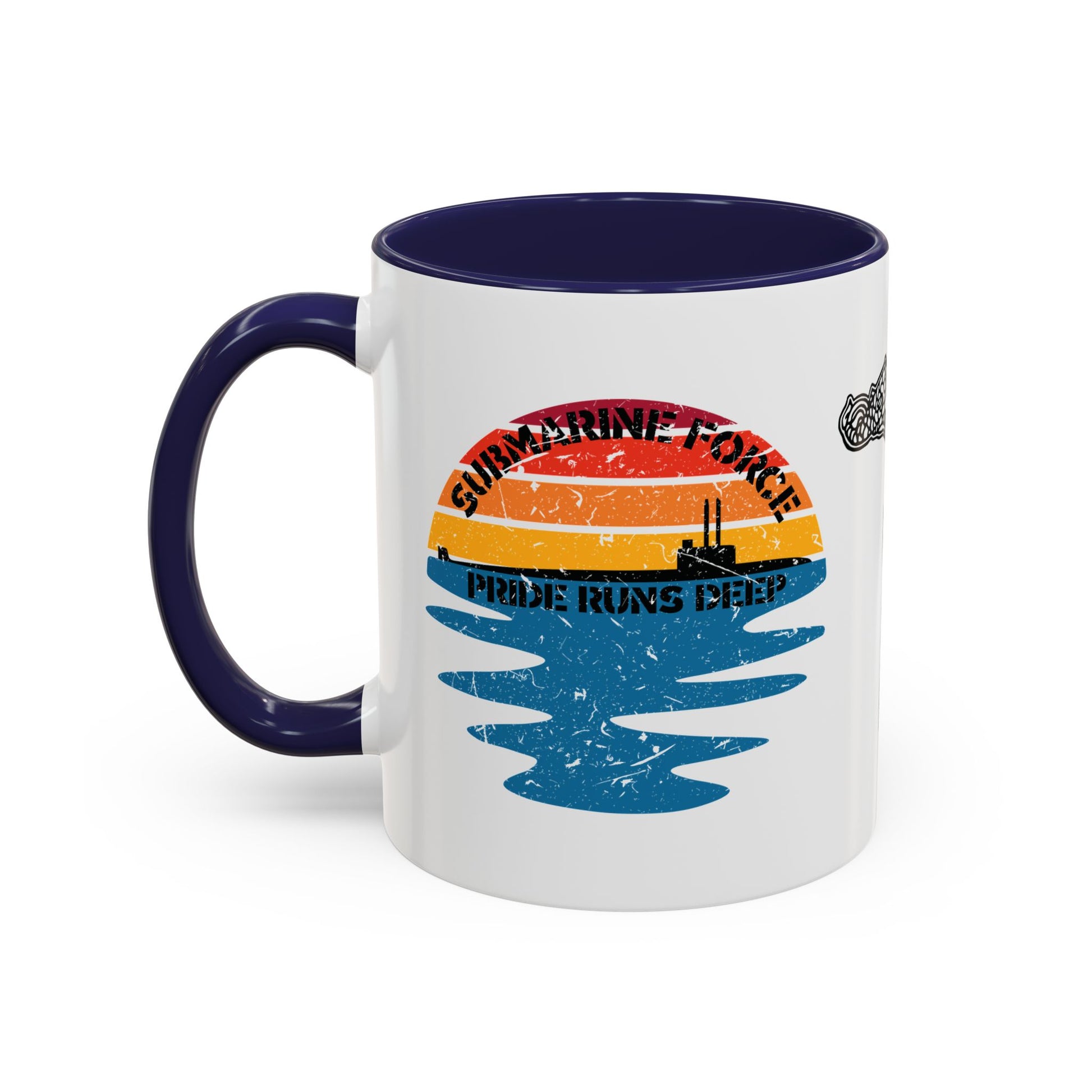 Sunrise USN Submarine Force Silent Service Pride Runs Deep Distressed Two-Tone Accent Coffee Mugs.