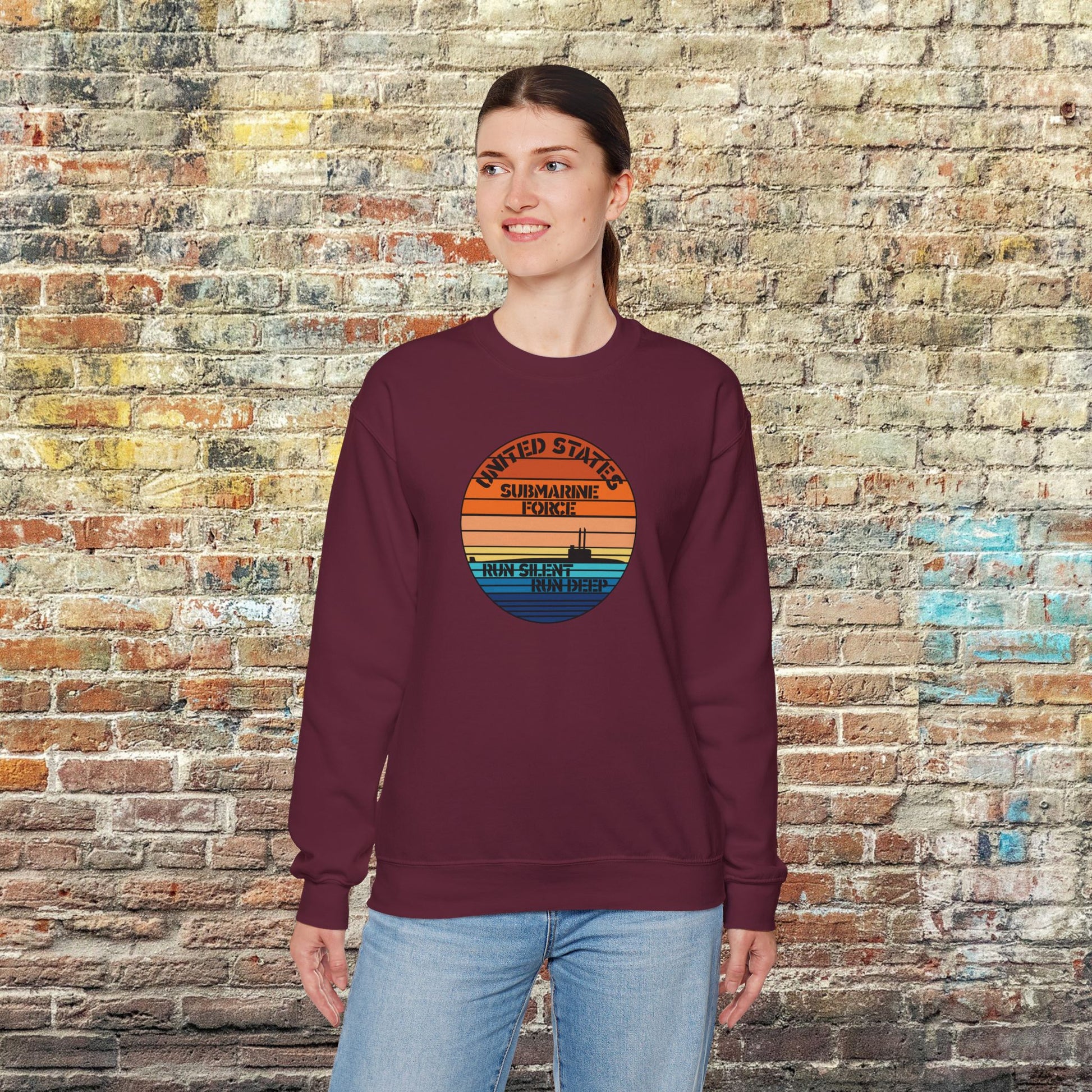 Sunset United States Navy Submarine Force Run Silent Deep Vintage Unisex Heavy Blend™ Crewneck Sweatshirt