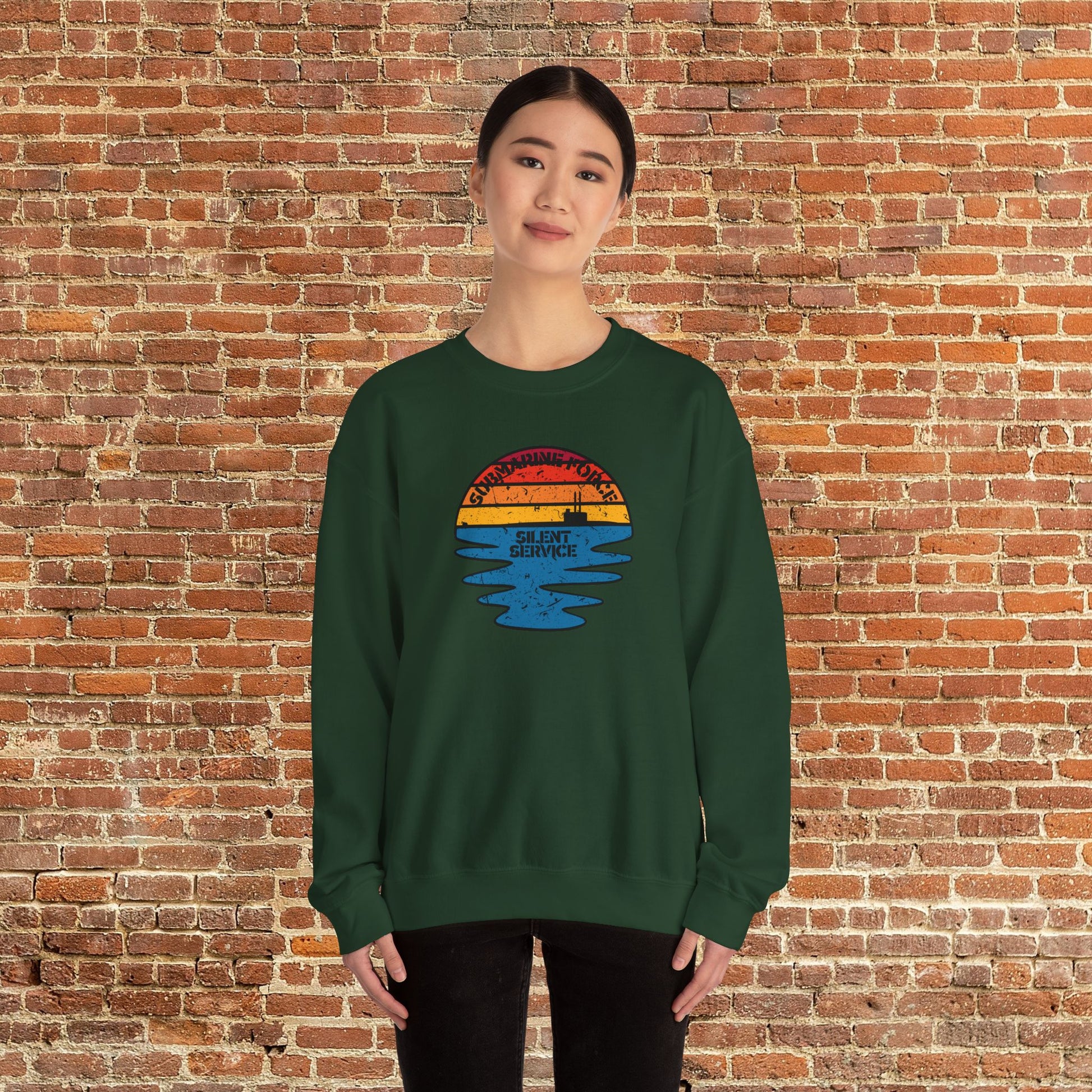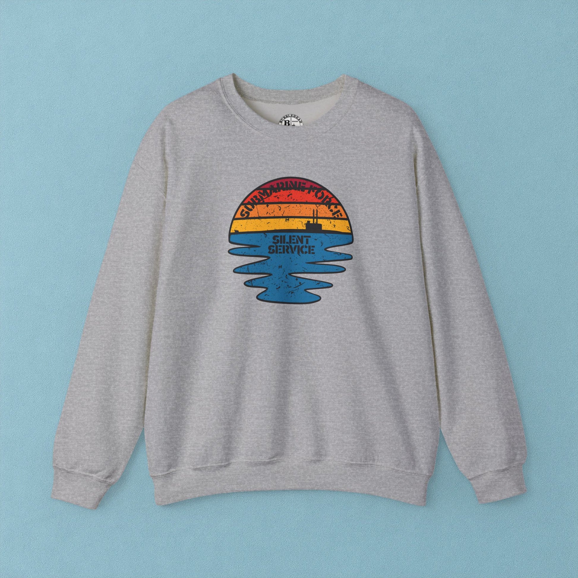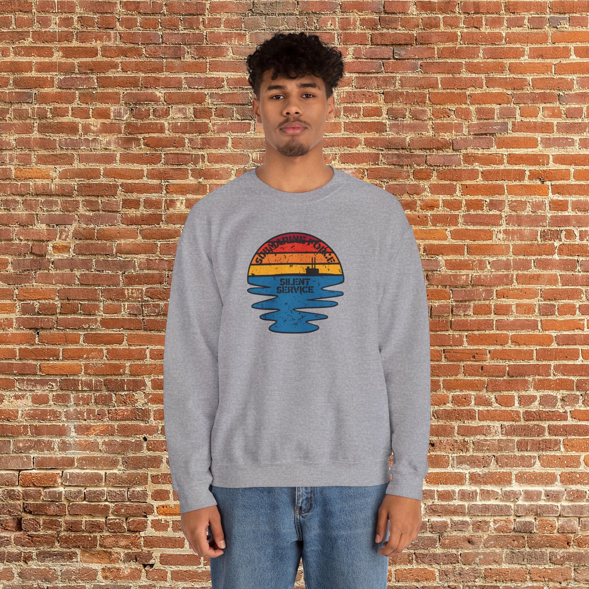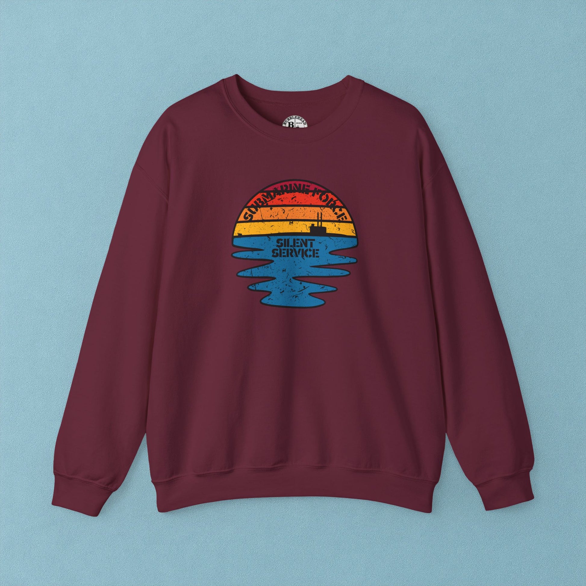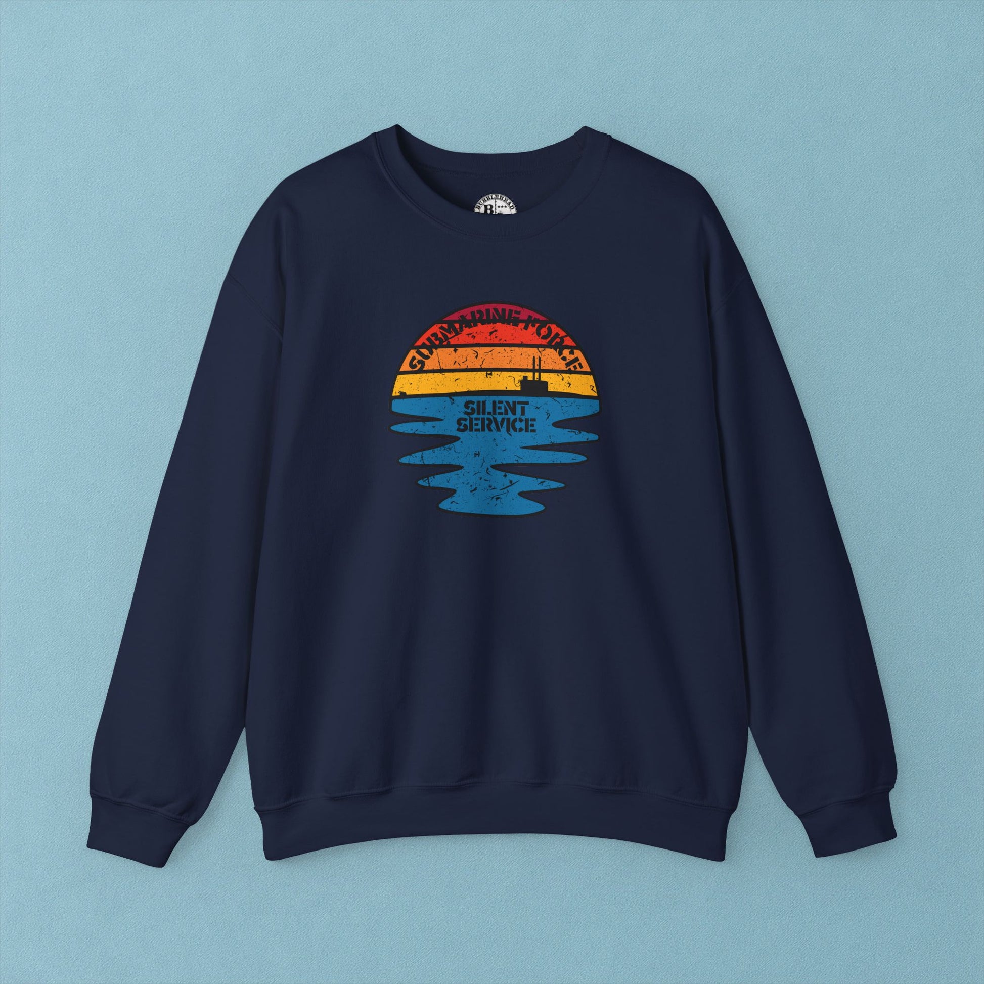 Sunset Retro US Navy Submarine Force Silent Service Vintage Pullover Crewneck Sweatshirt.
