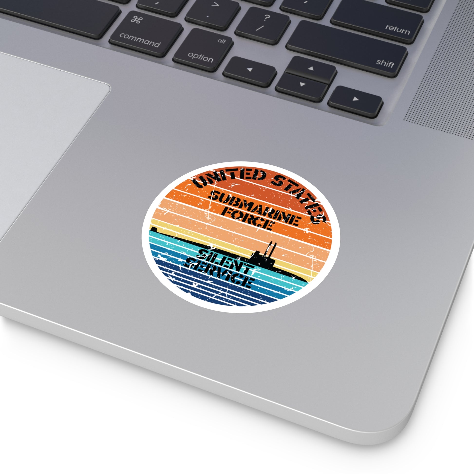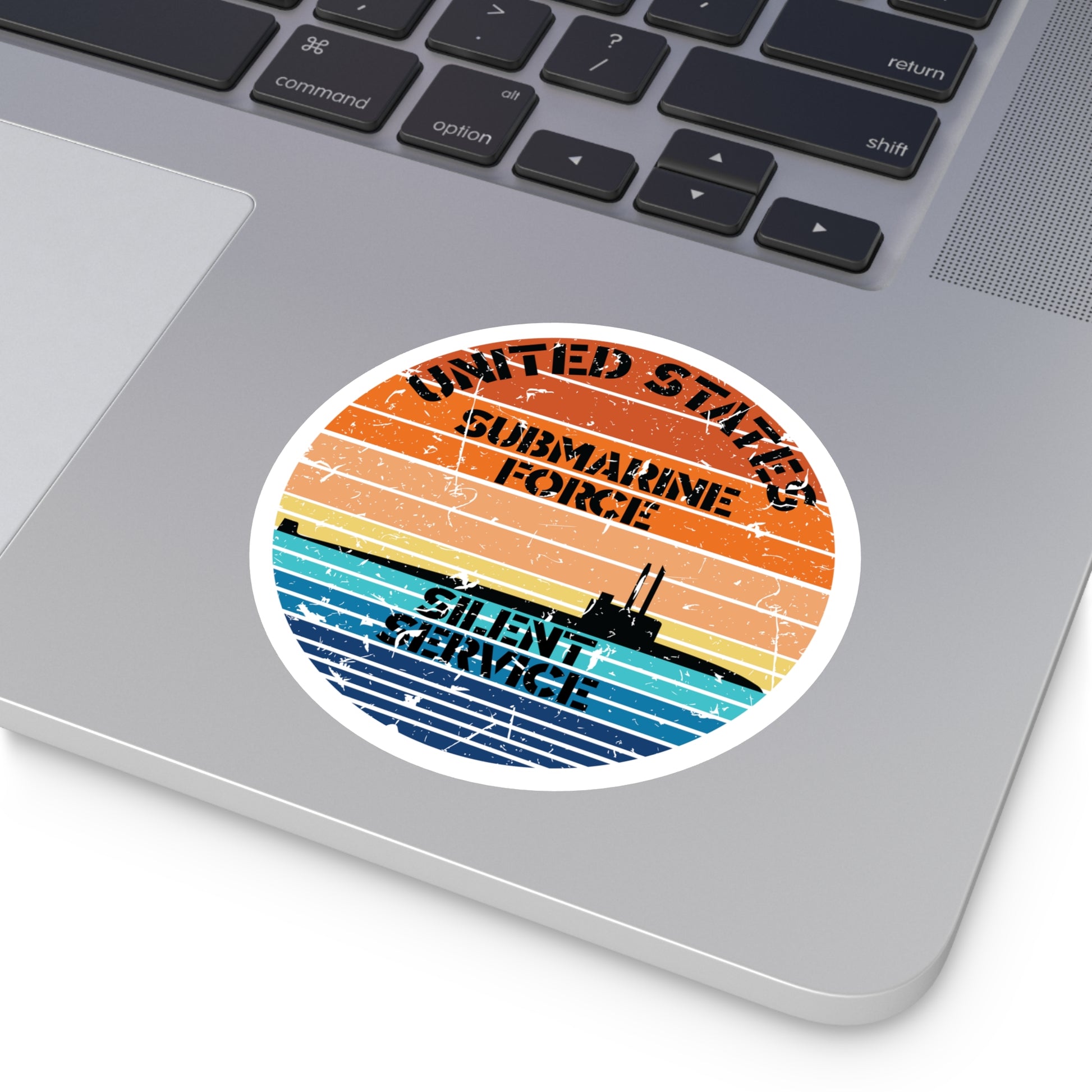Sunset United States Submarine Force Silent Service Distressed Round Sticker