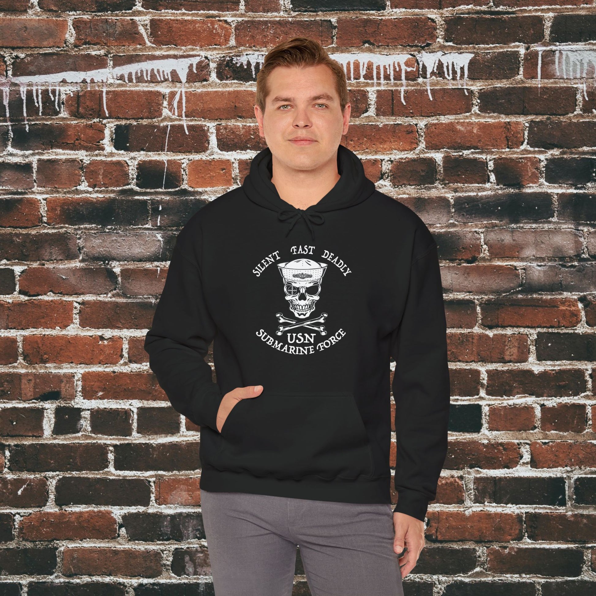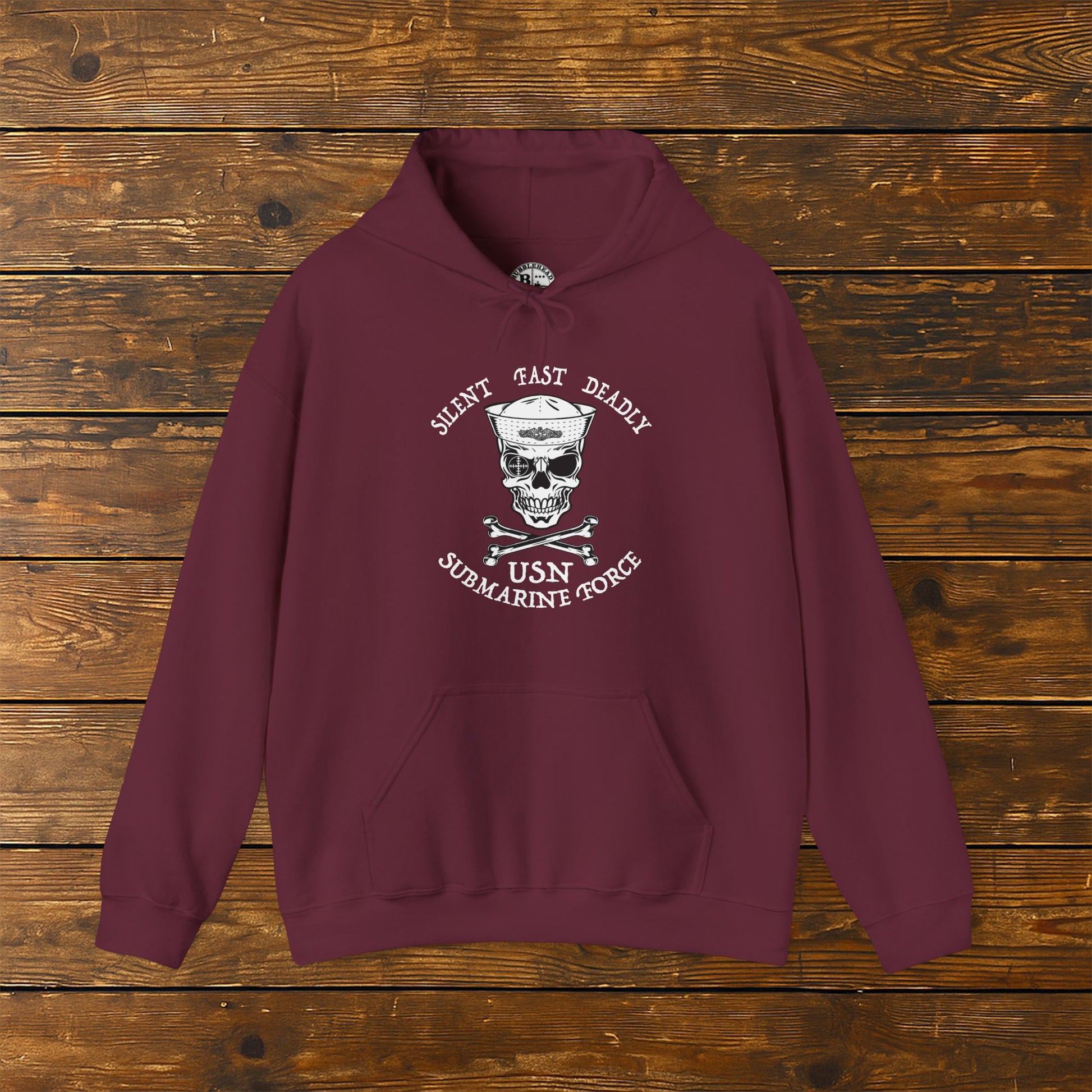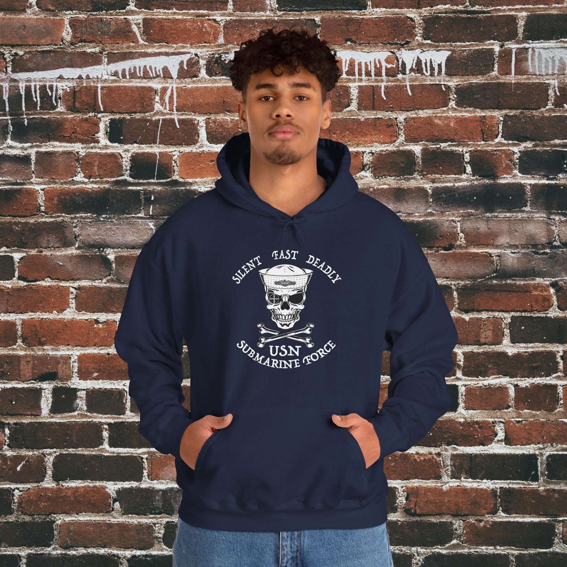 U.S. Submarine Force Silent Fast Skull Crossbones Sailor with Dolphins Unisex Heavy Blend™ Hooded Sweatshirt