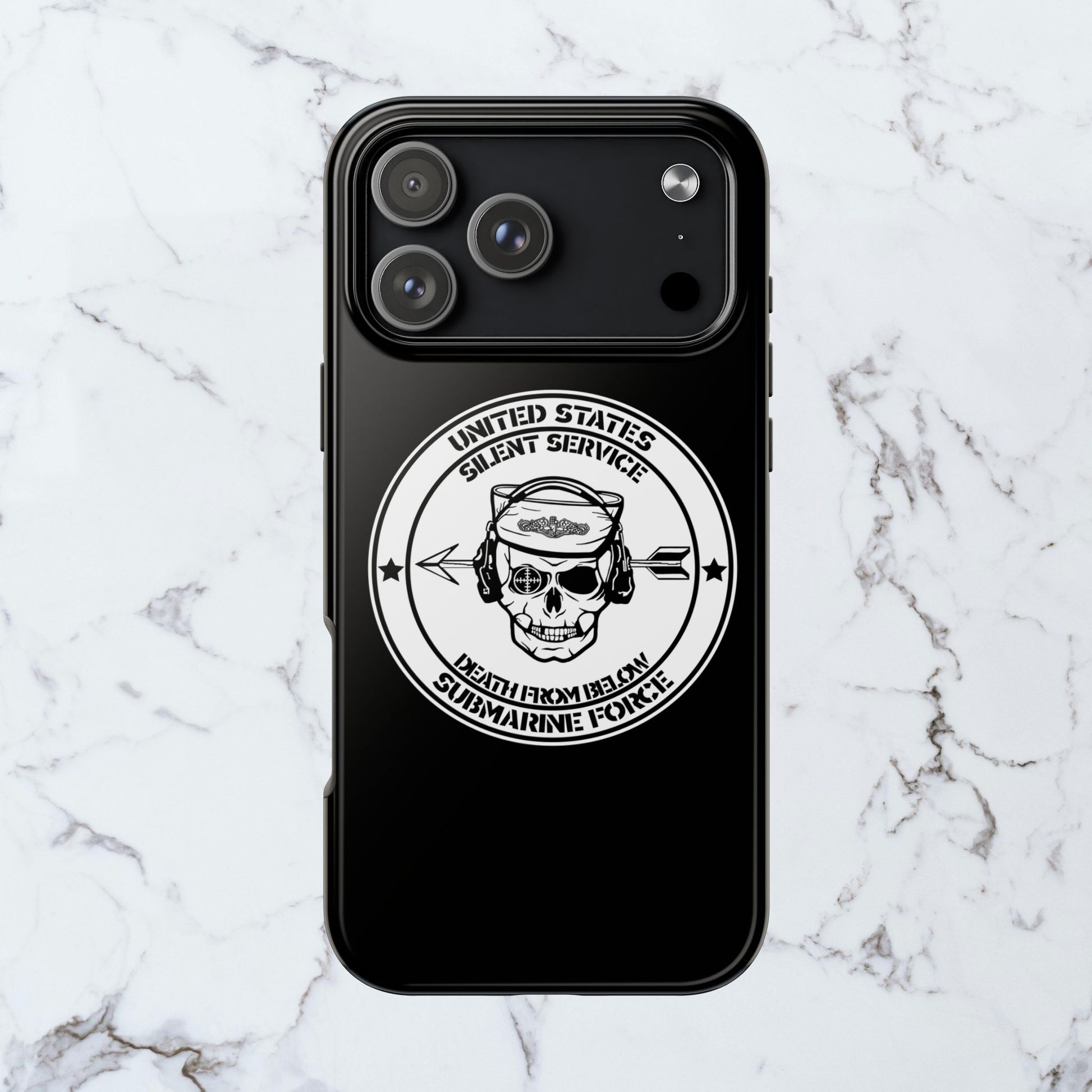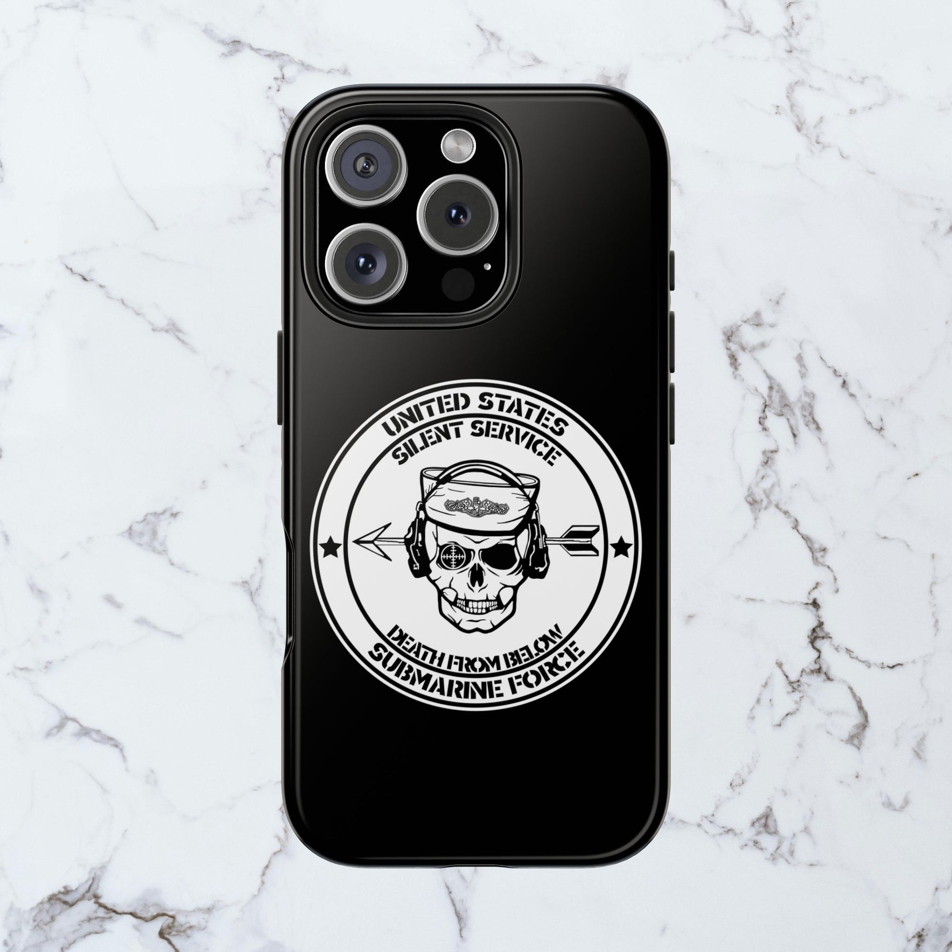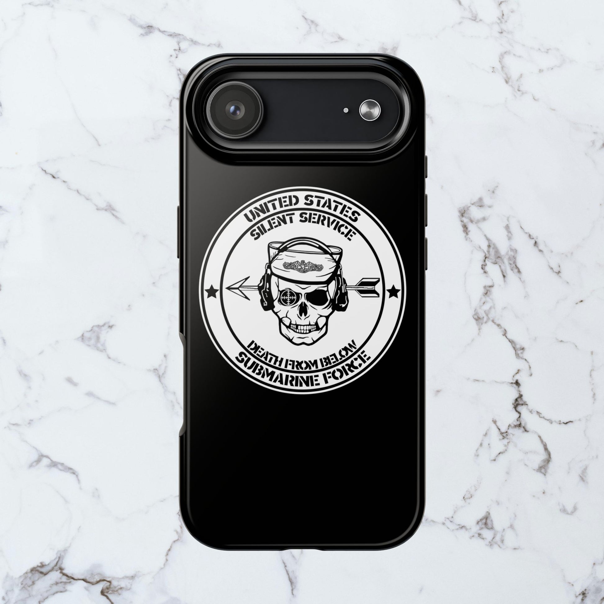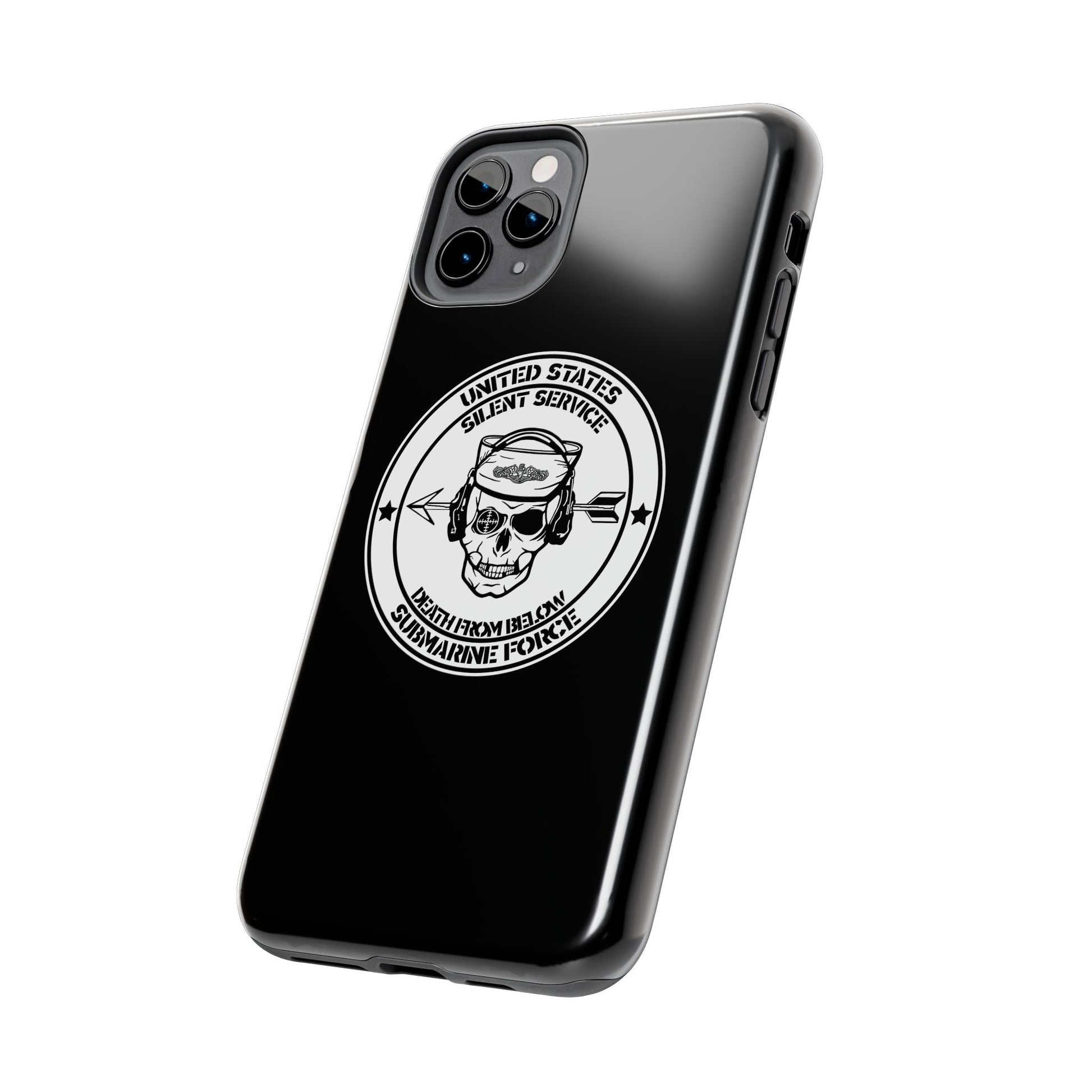 U.S. Submarine Force Silent Service Death From Below Sailor Skull Tough Black iPhone Case