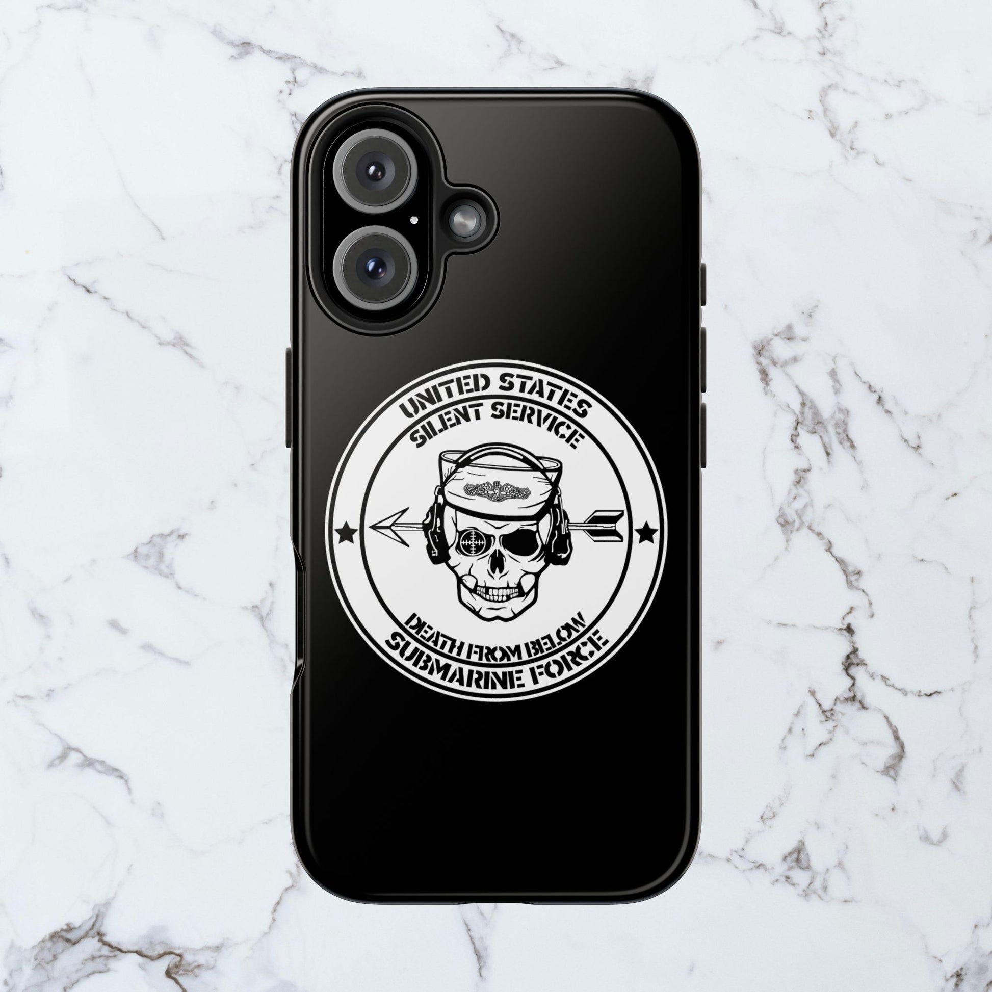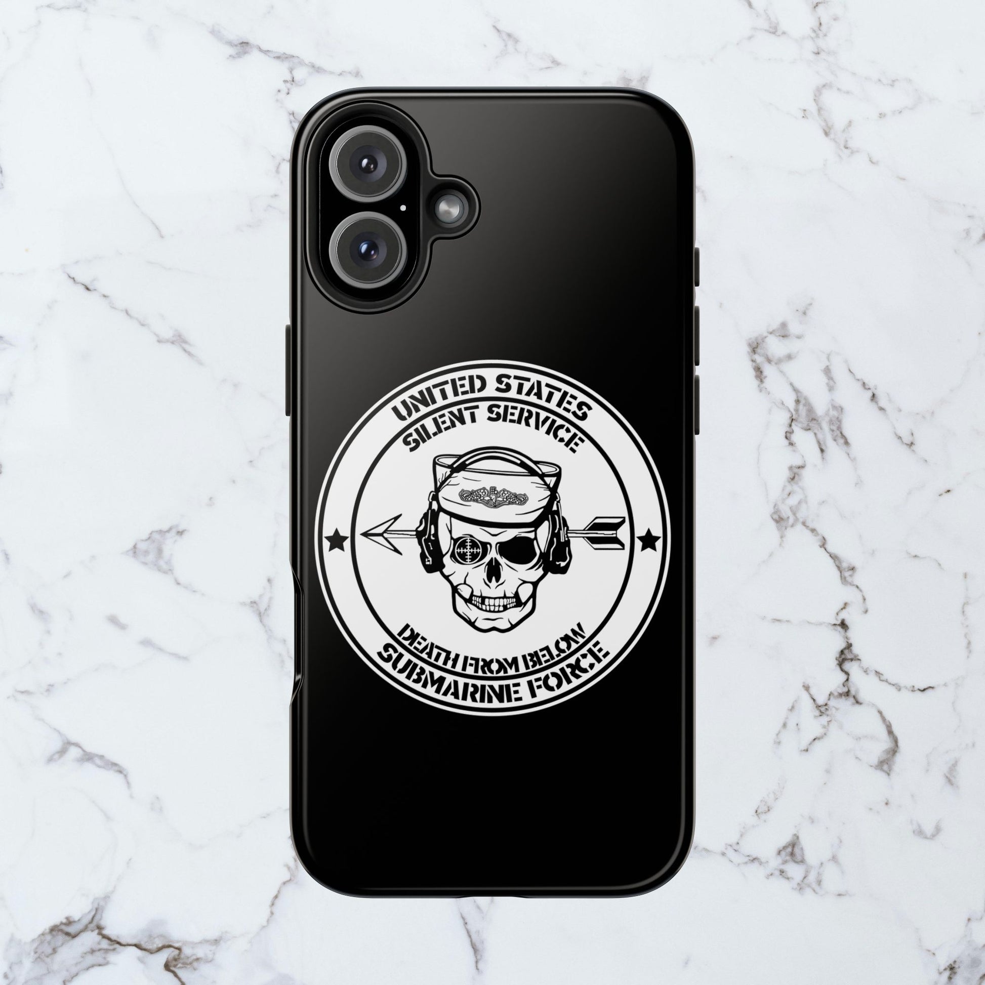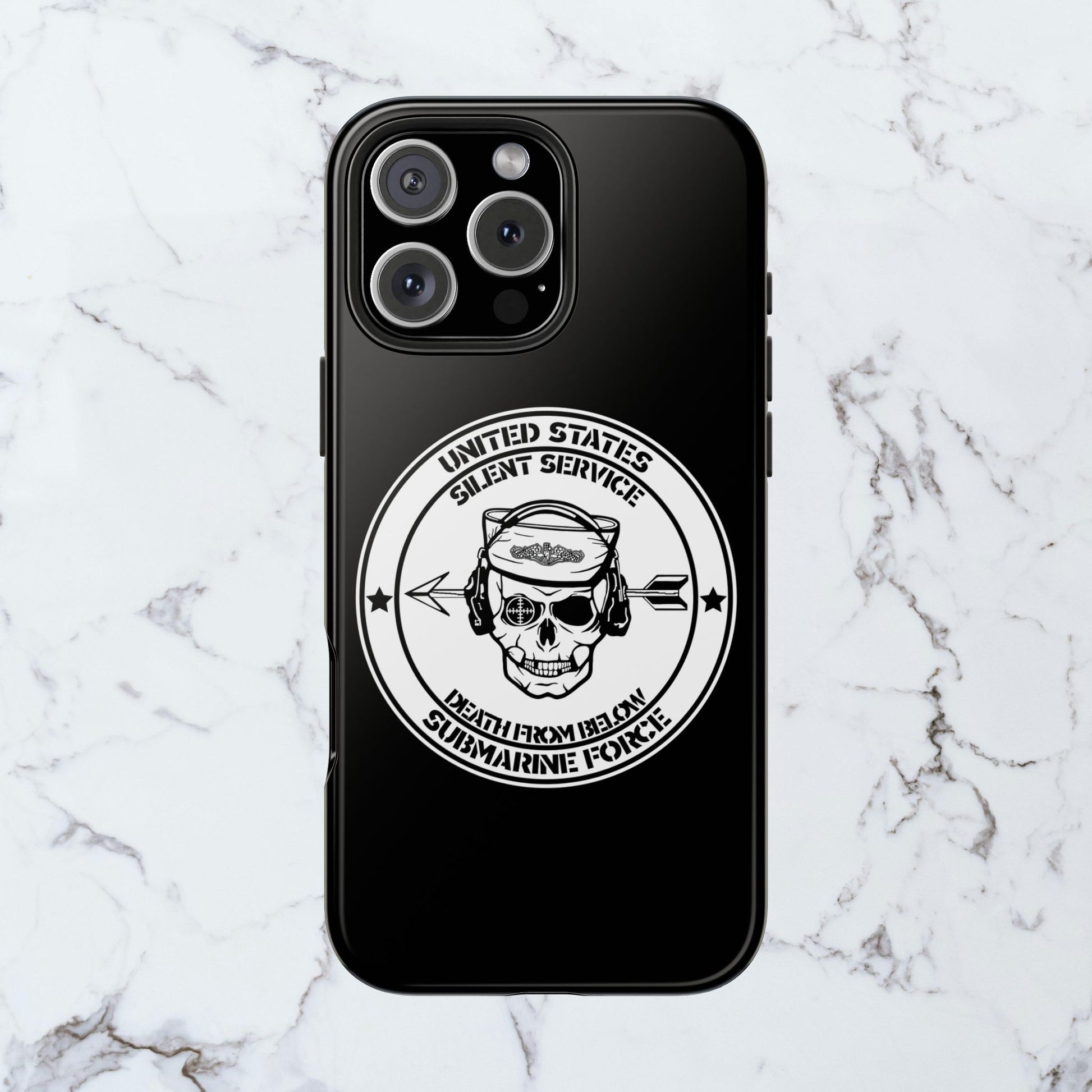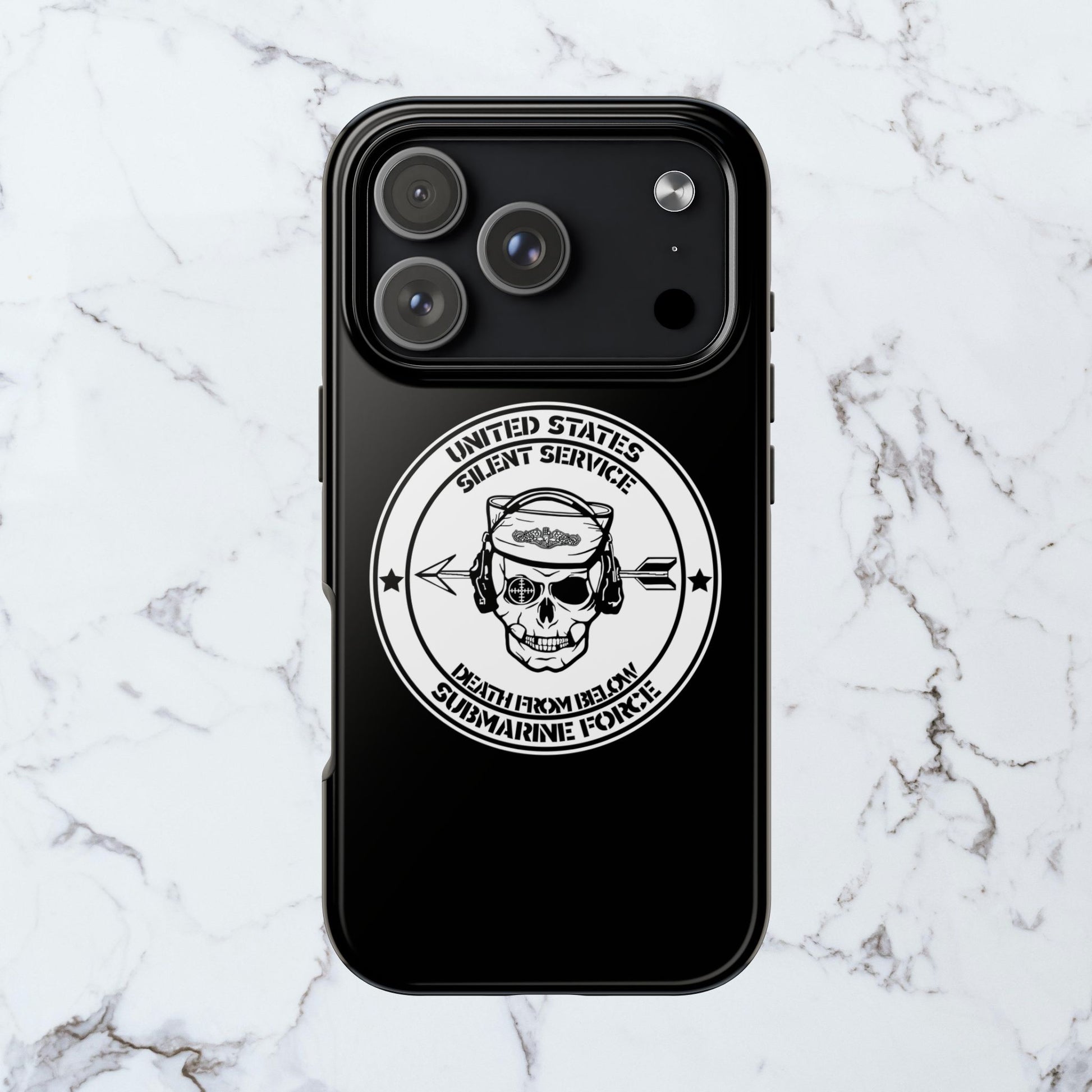 U.S. Submarine Force Silent Service Death From Below Sailor Skull Tough Black iPhone Case