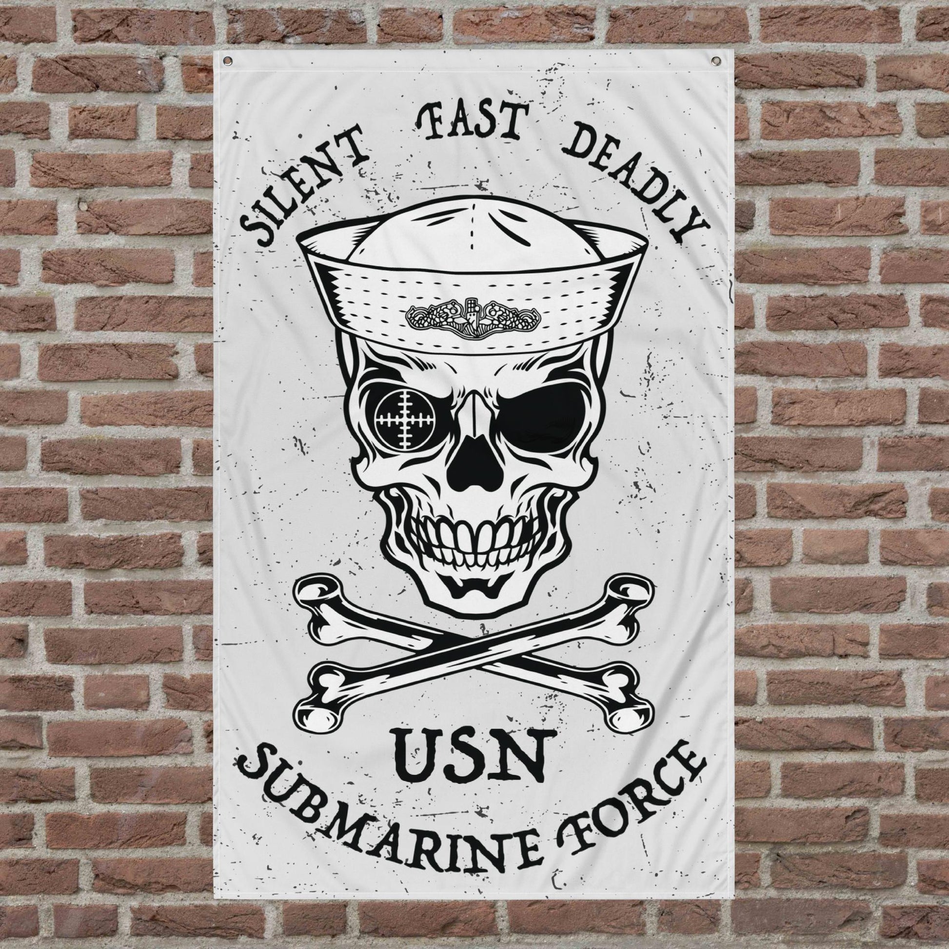 US Navy Submarine Force Silent Fast Deadly Skull Crossbones Sailor Distressed White Flag