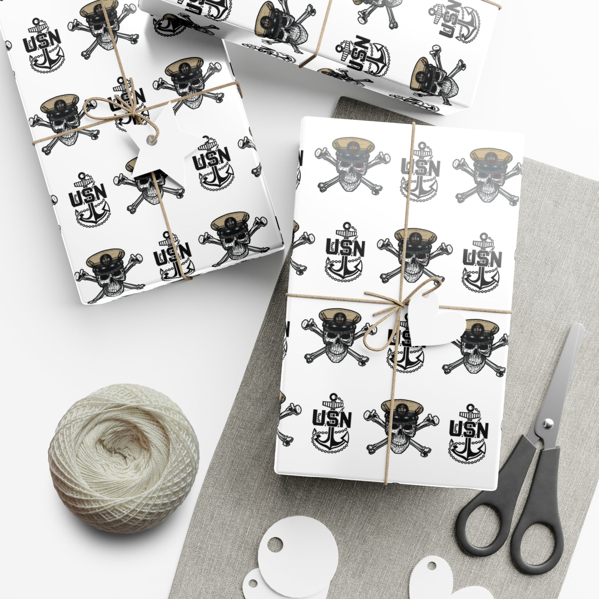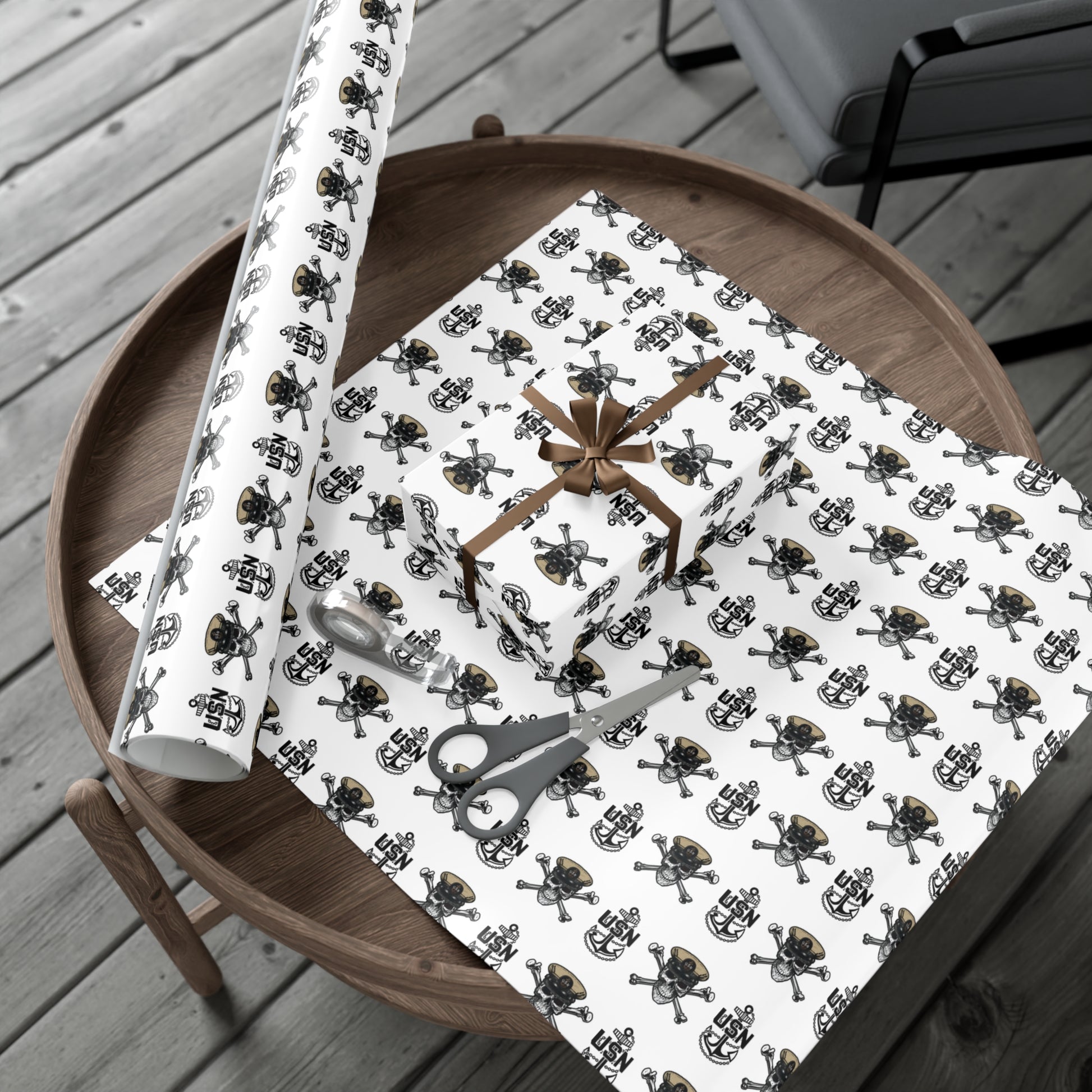 Make any gift bring an even wider smile to the receiver with this Navy Chief designed gift wrap paper. Show them how much thought you put into your gift and celebrate their special day with a personal touch. This naval design makes it clear that effort and style was put into this gift.