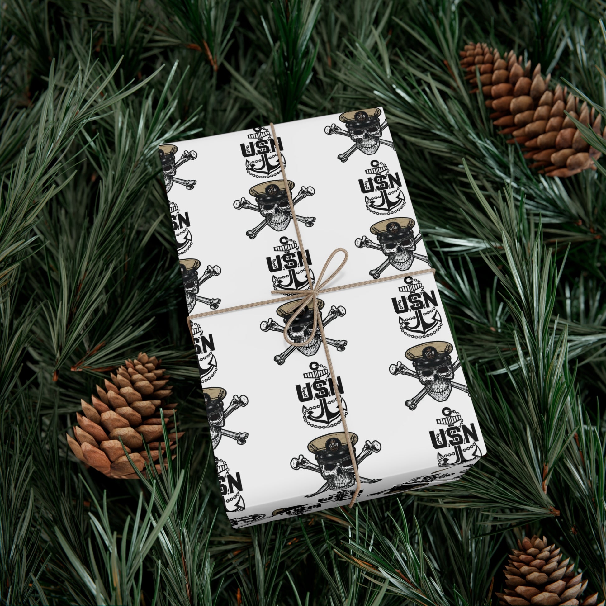 United States Navy Chief Skull & Crossbones with CPO Anchors White Gift Wrap Papers