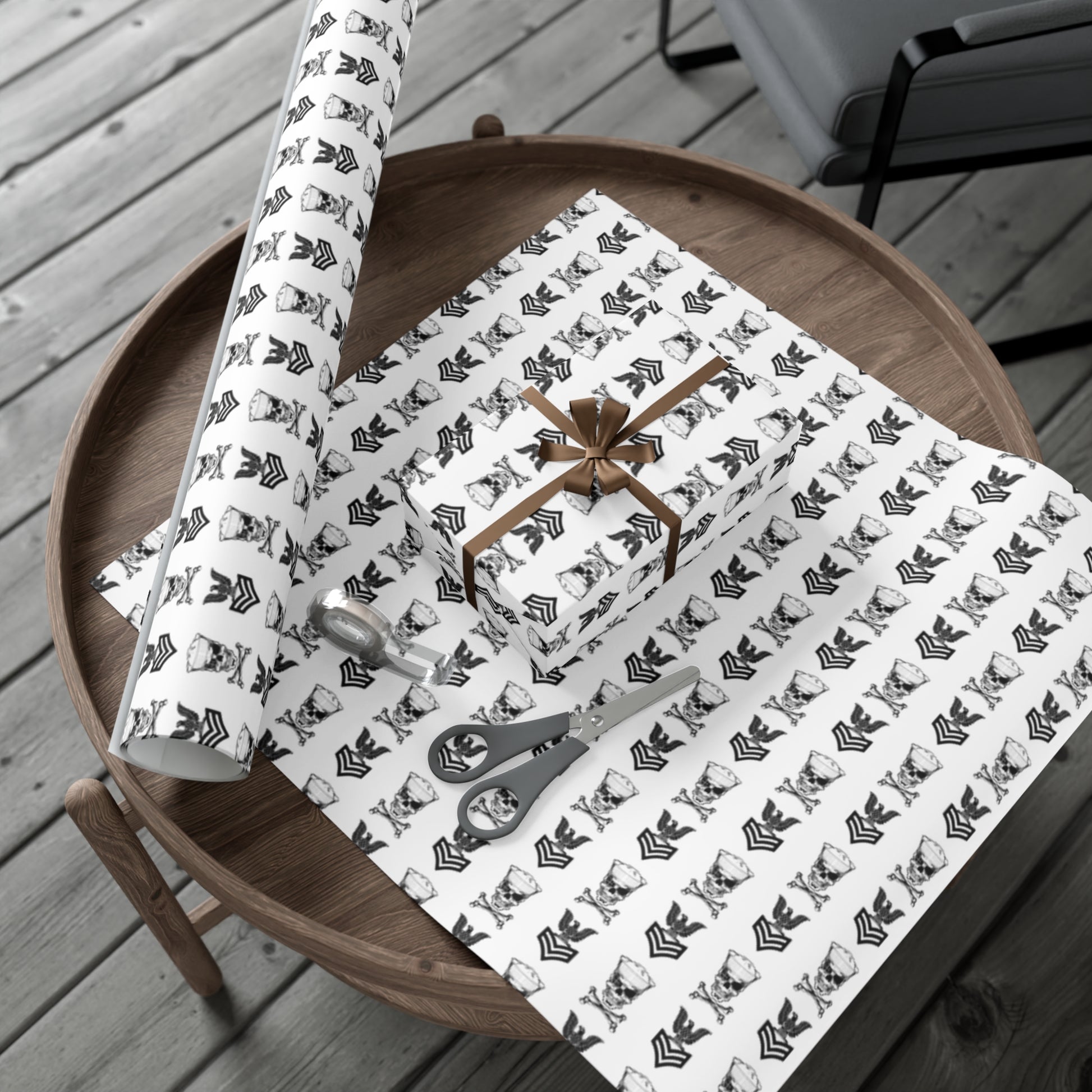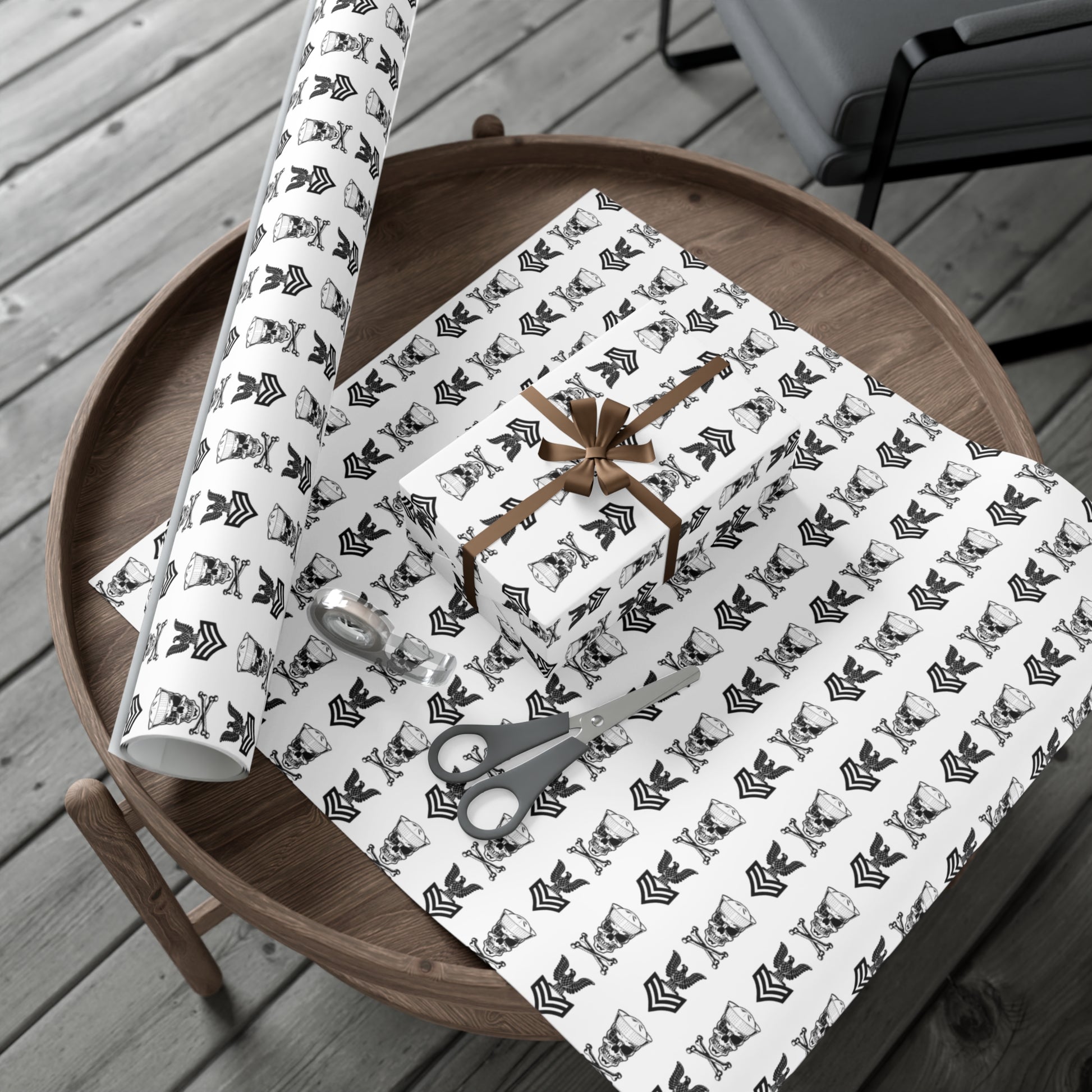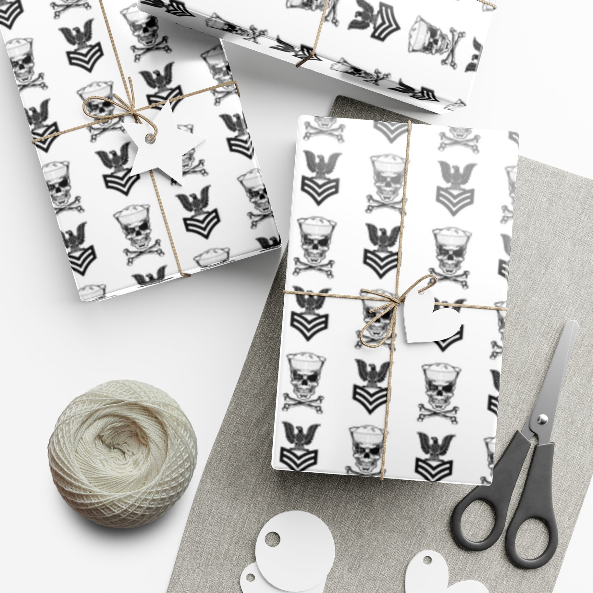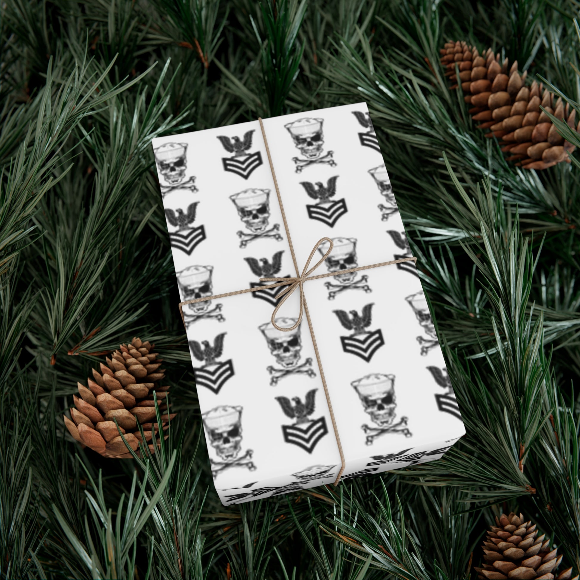 United States Navy FCPO Skull & Crossbones Sailor and First Class Crow Device on White Gift Wrapping Paper.