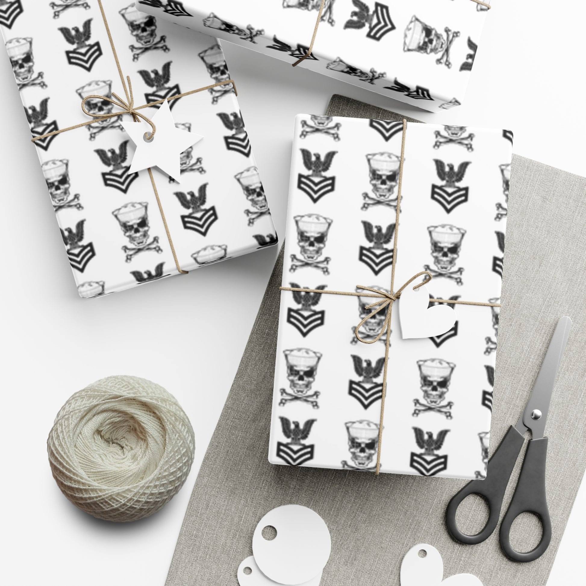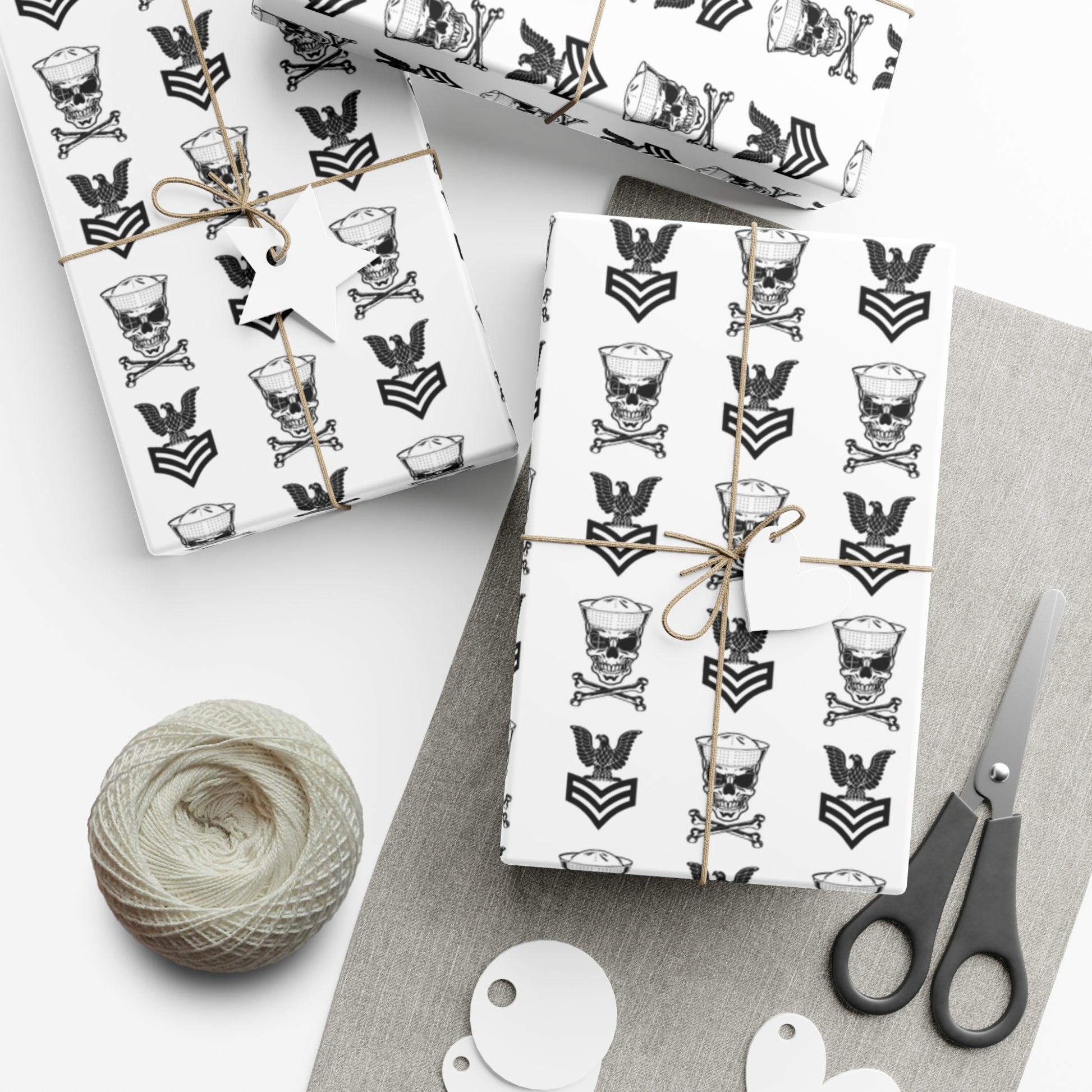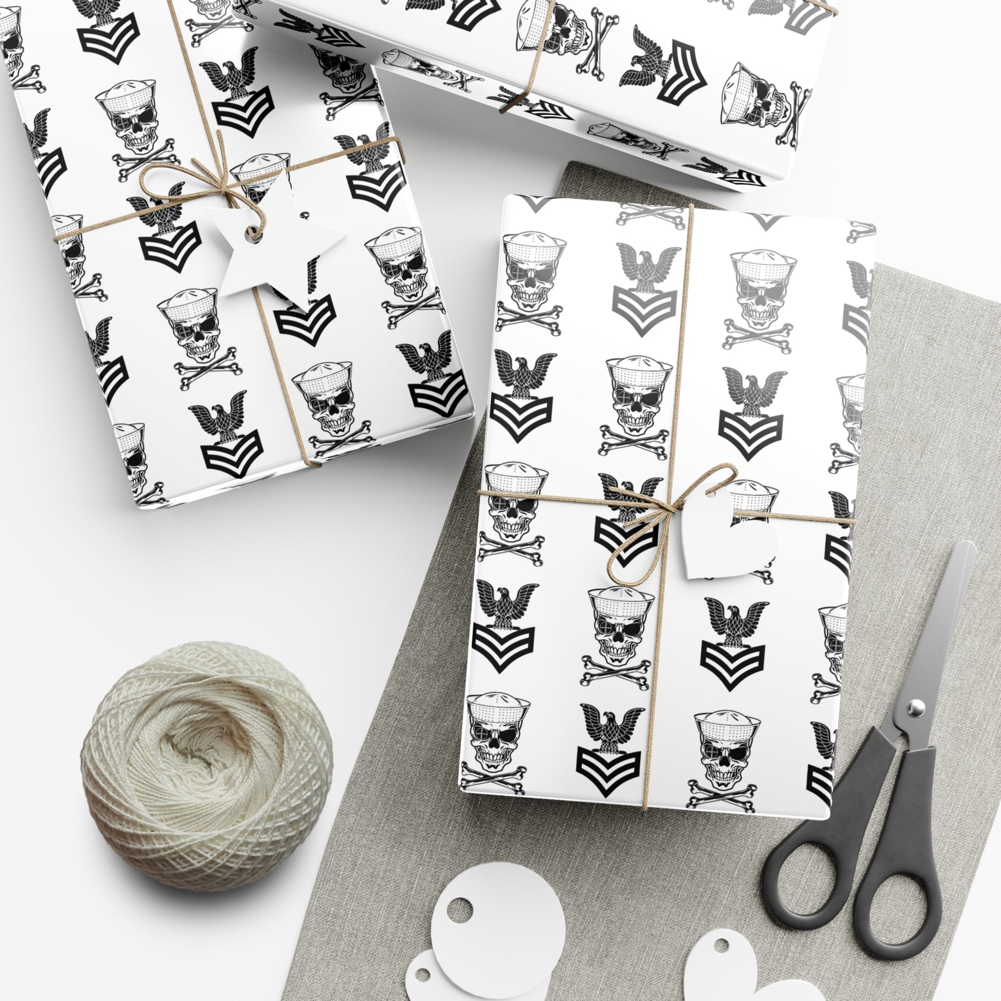 United States Navy FCPO Skull Crossbones First Class Sailor with Dixie Cup Blue Gift Wrap Papers