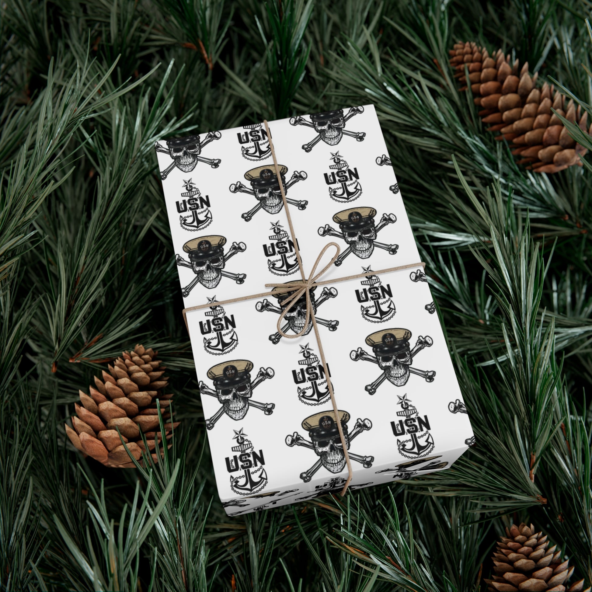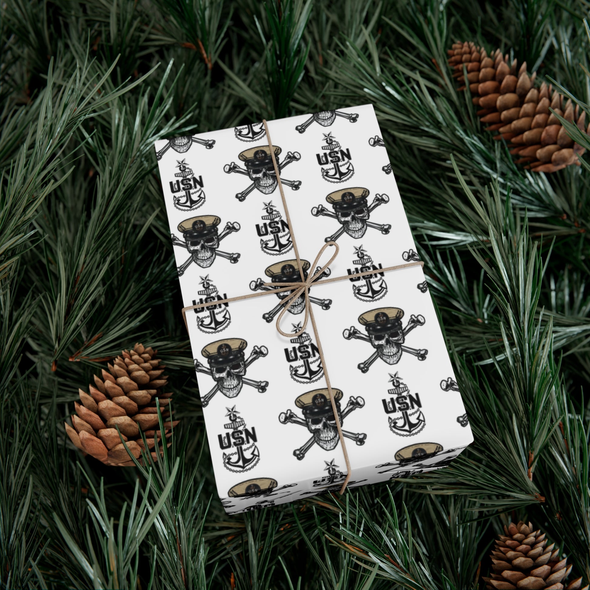 US Navy Senior Chief Skull & Crossbones with SCPO Anchors White Gift Wrapping Paper.
