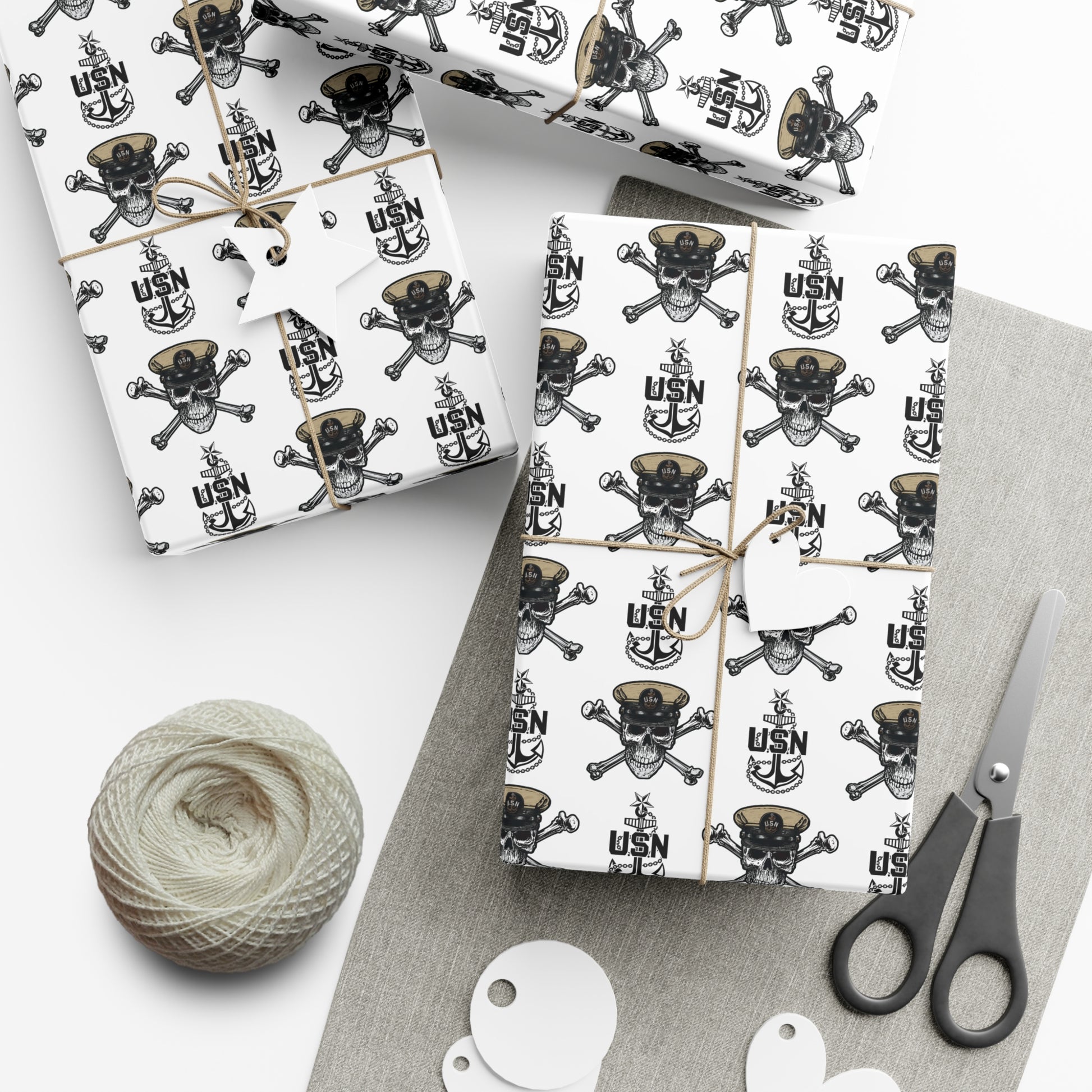 Make any gift bring an even wider smile to the receiver with this Navy Chief designed gift wrap paper. Show them how much thought you put into your gift and celebrate their special day with a personal touch. This naval design makes it clear that effort and style was put into this gift.