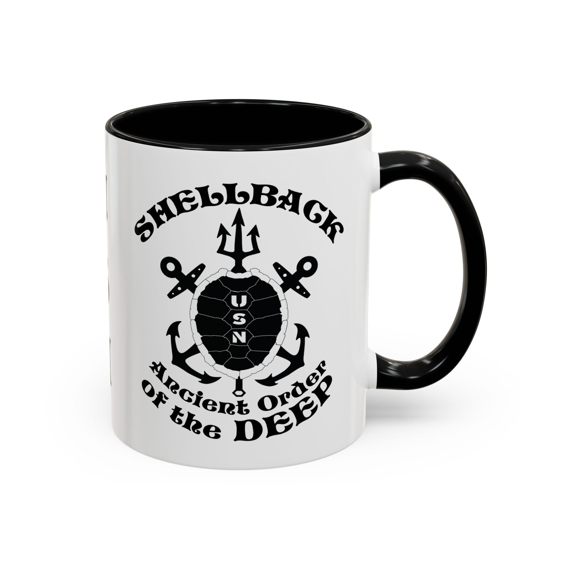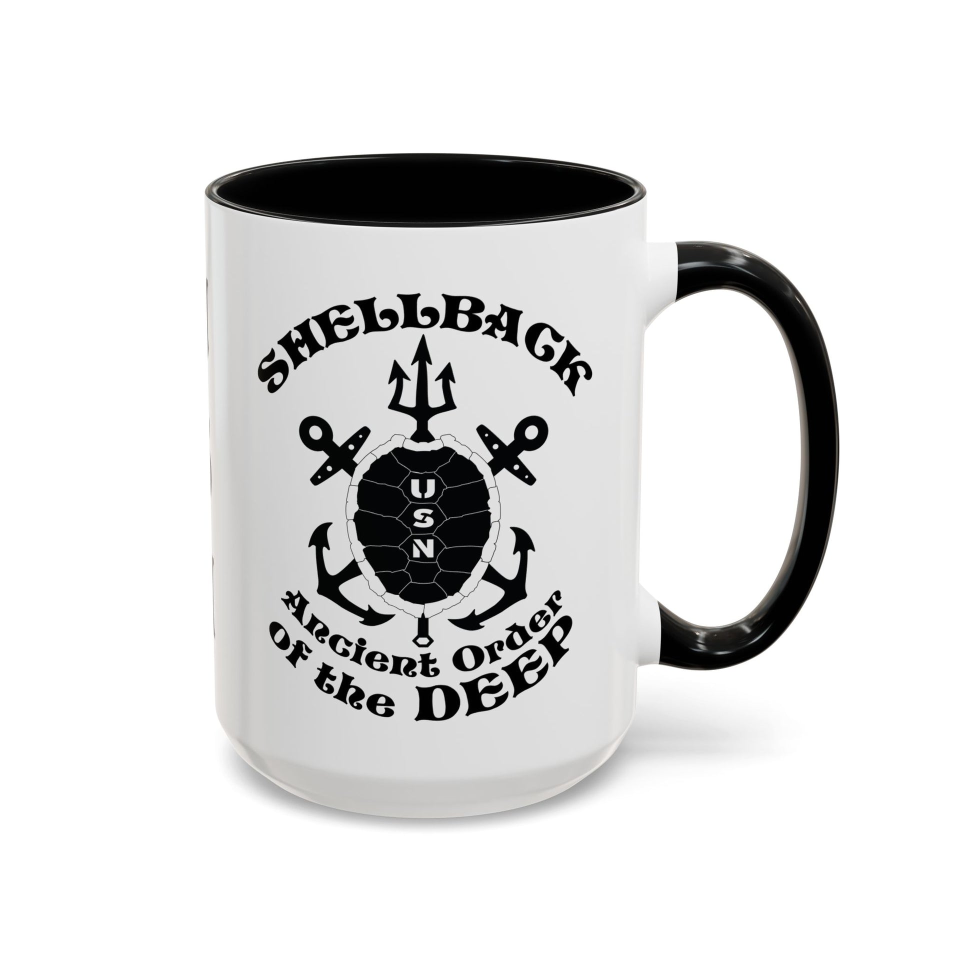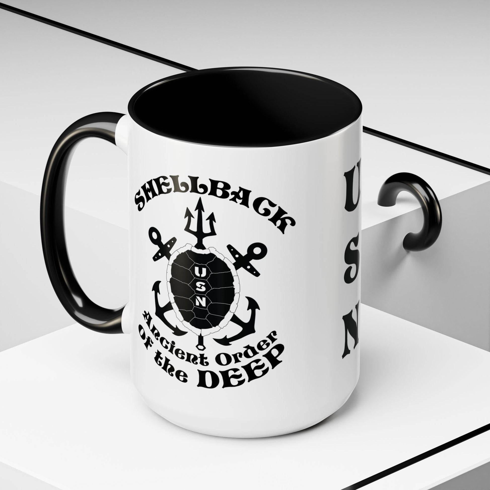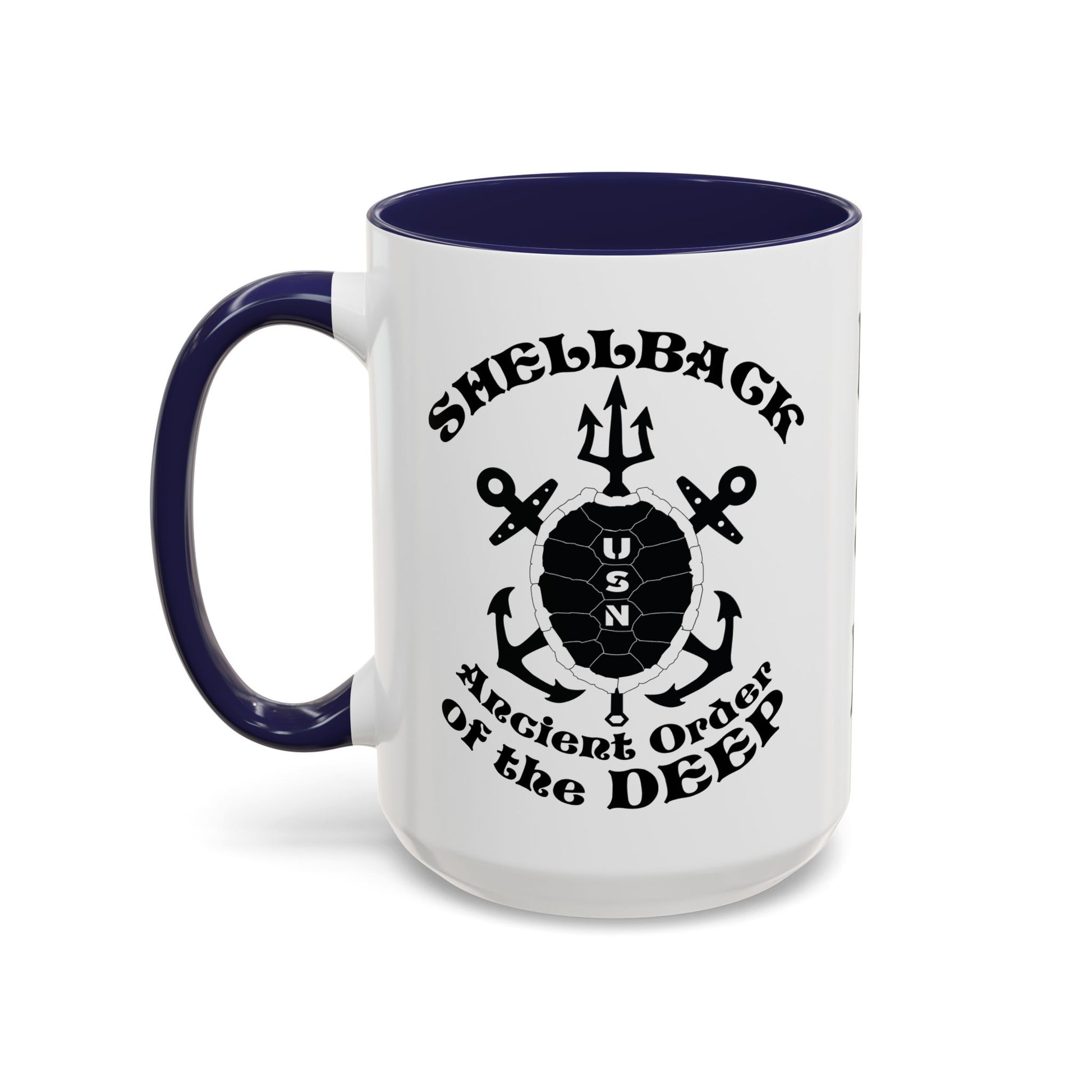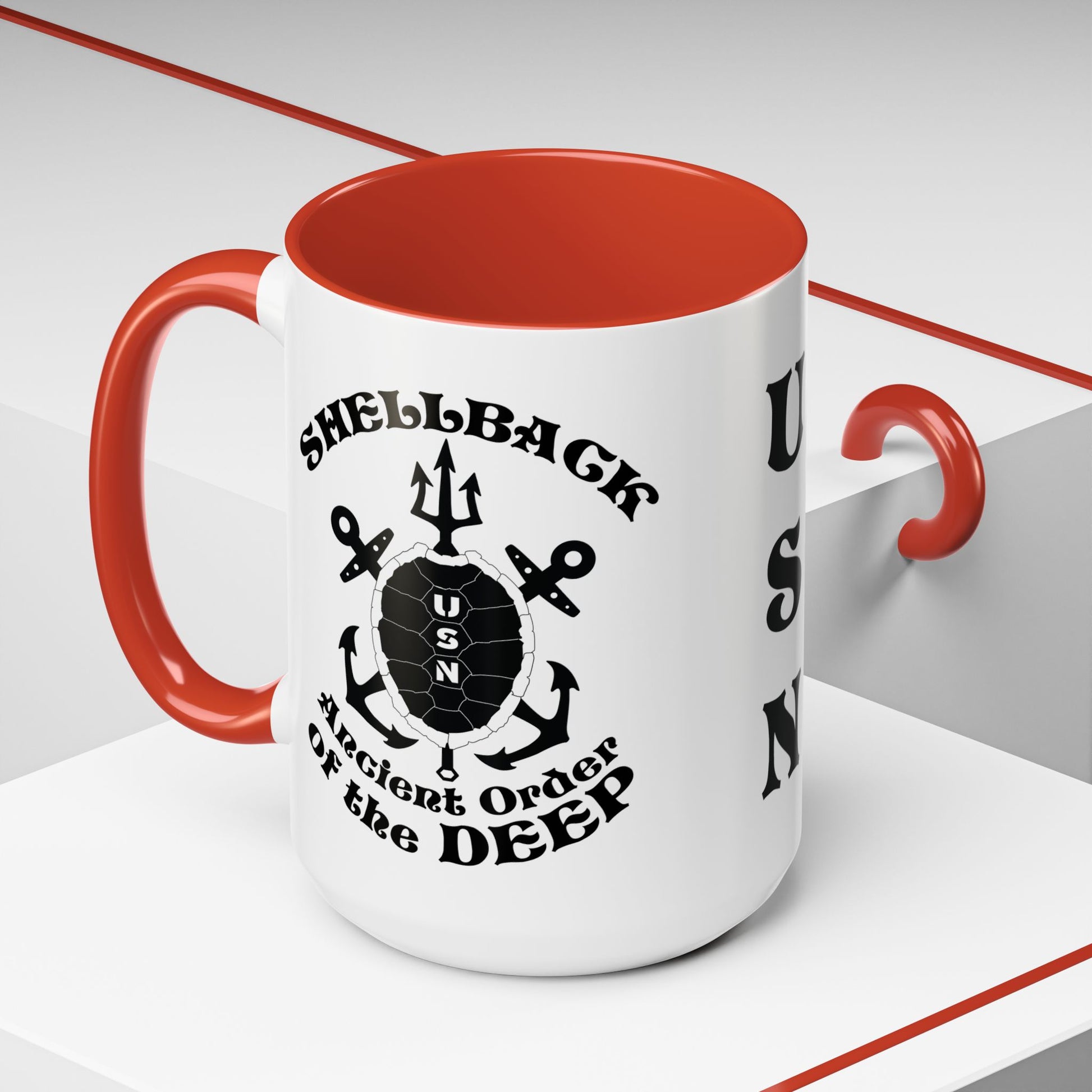 United States Navy Shellback Ancient Order of the Deep Equator Line-Crossing Ceremony Two-Tone Accent Coffee Mugs.