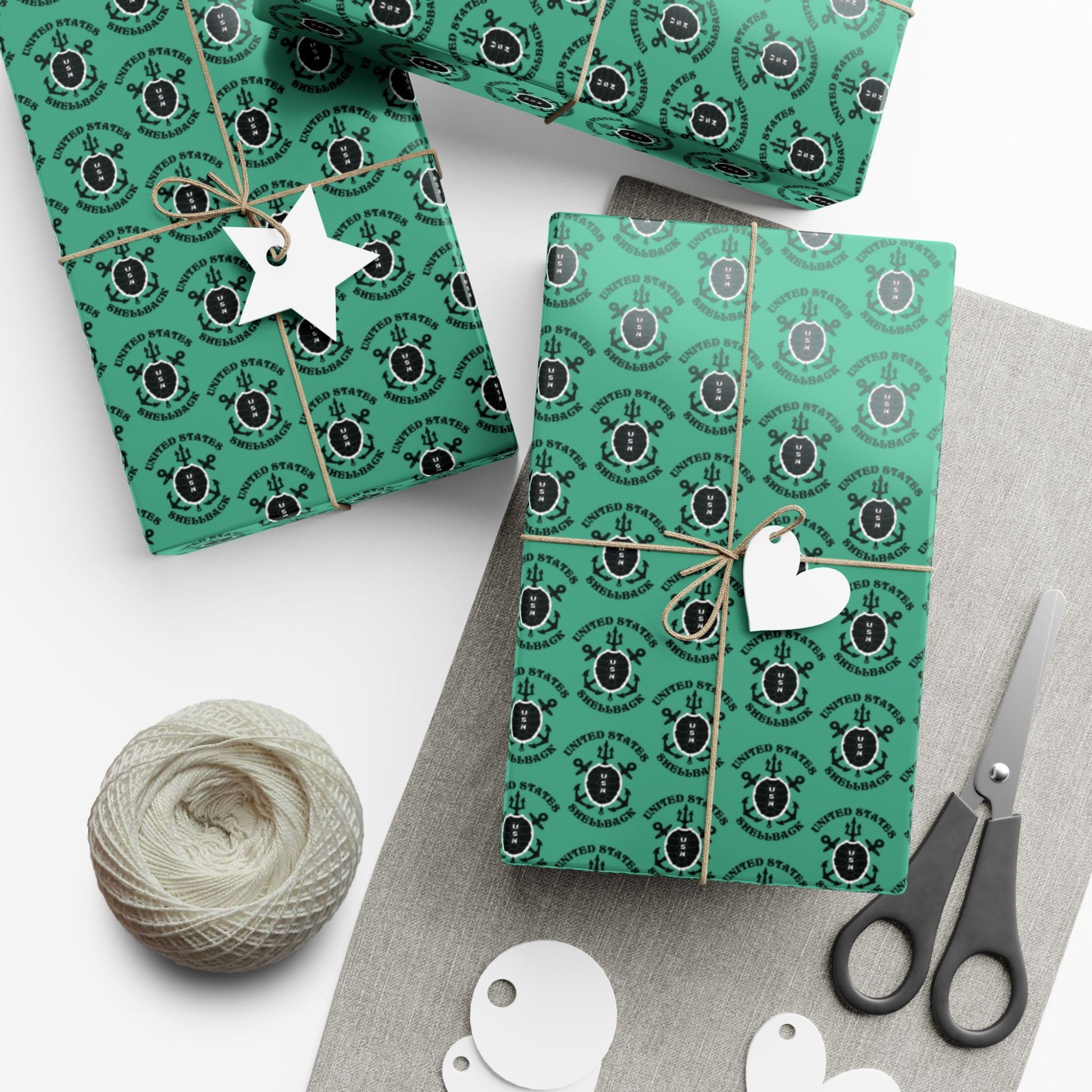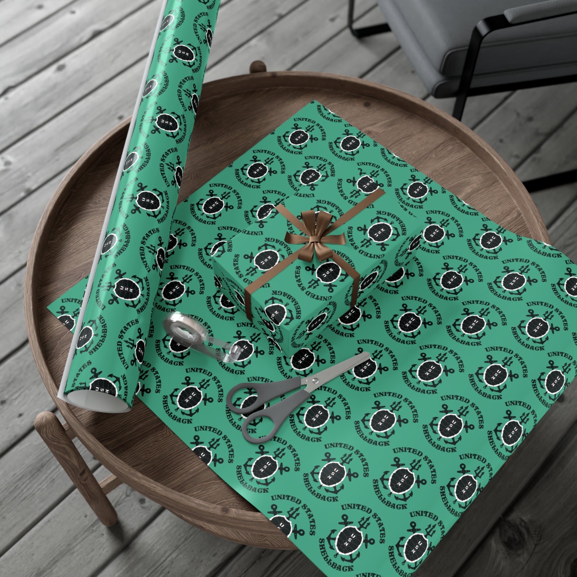 United States Navy Shellback Ancient Order of the Deep Naval Line-crossing Ceremony Black Shell Seafoam Green Gift Wrap Papers