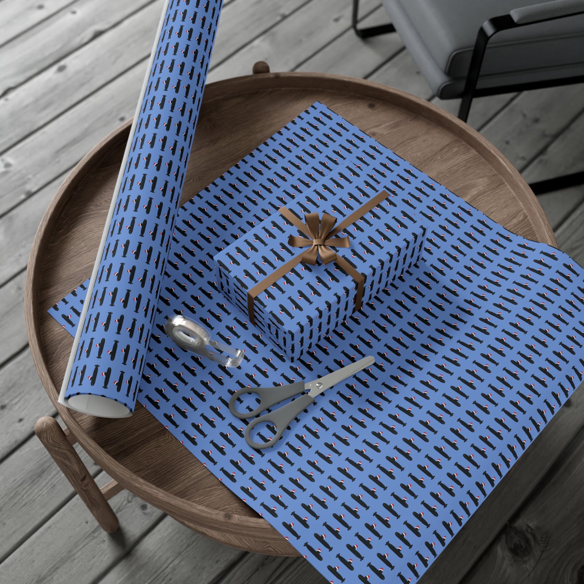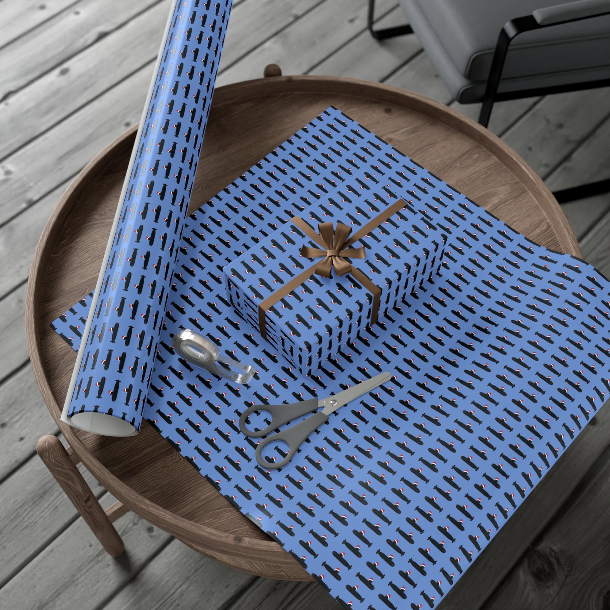 United States Navy Submarine Force Santa Hat on Black Mini Submarines Light Blue Gift Wrap Papers