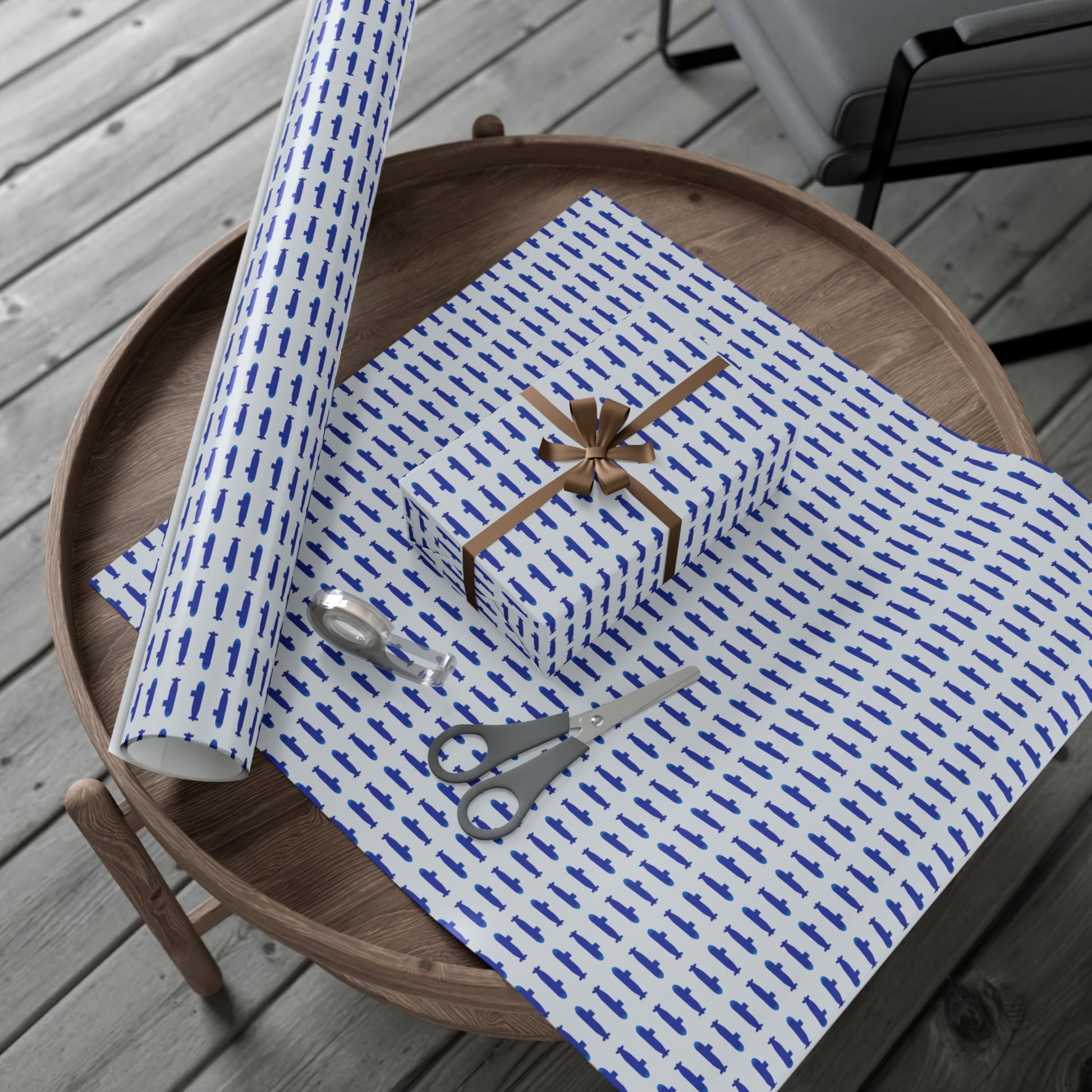 United States Navy Submarine Force Silent Service Blue Mini Submarines Gray Gift Wrap Papers