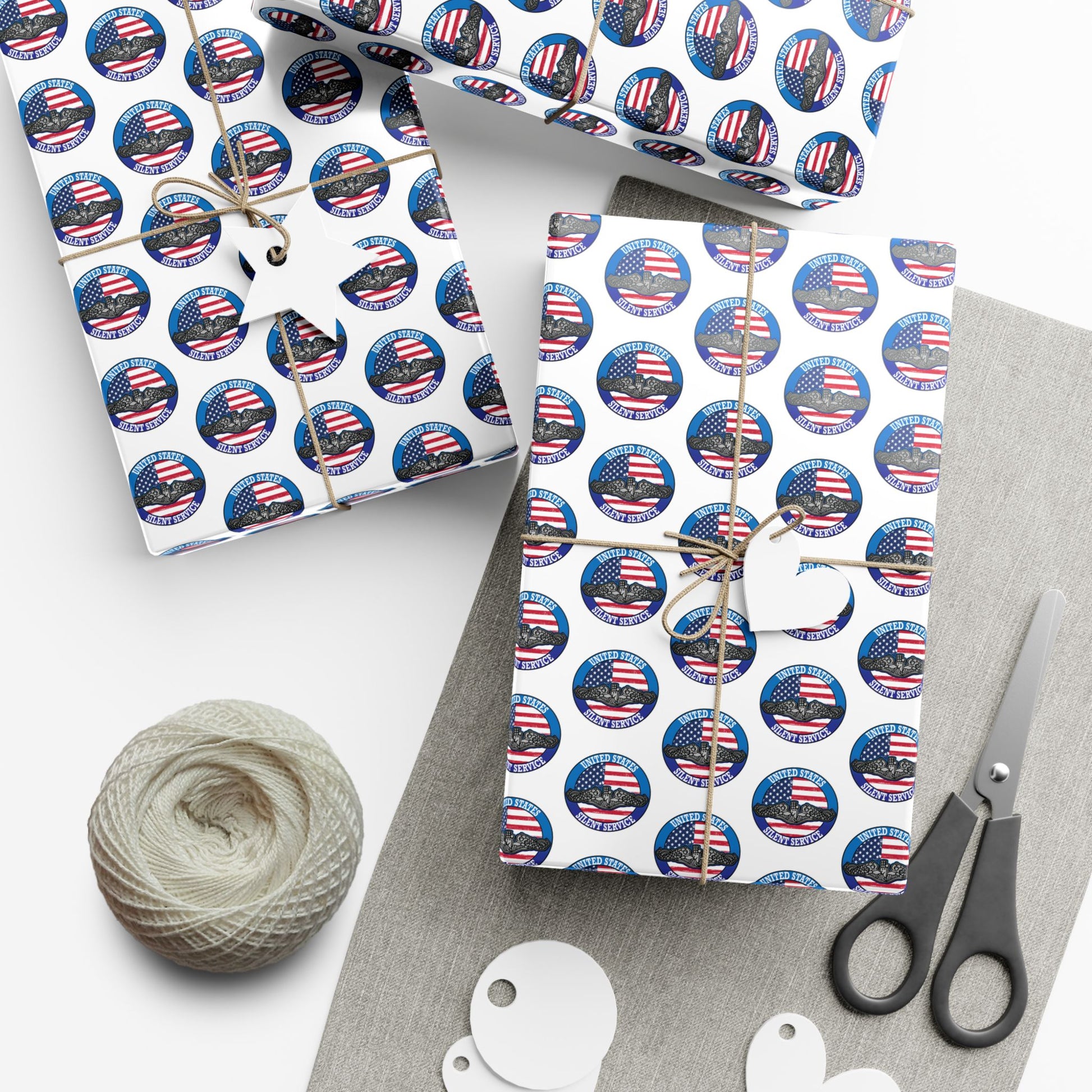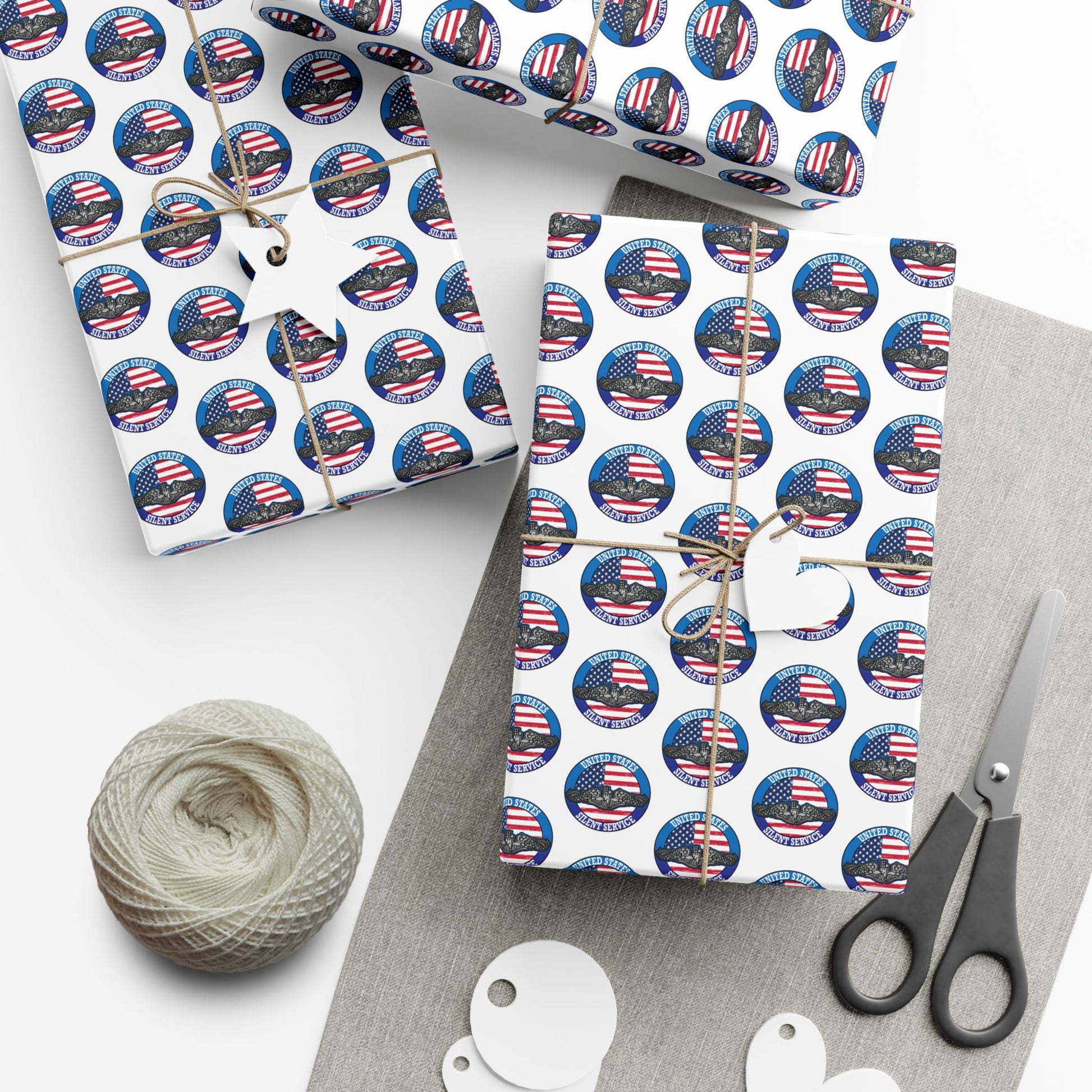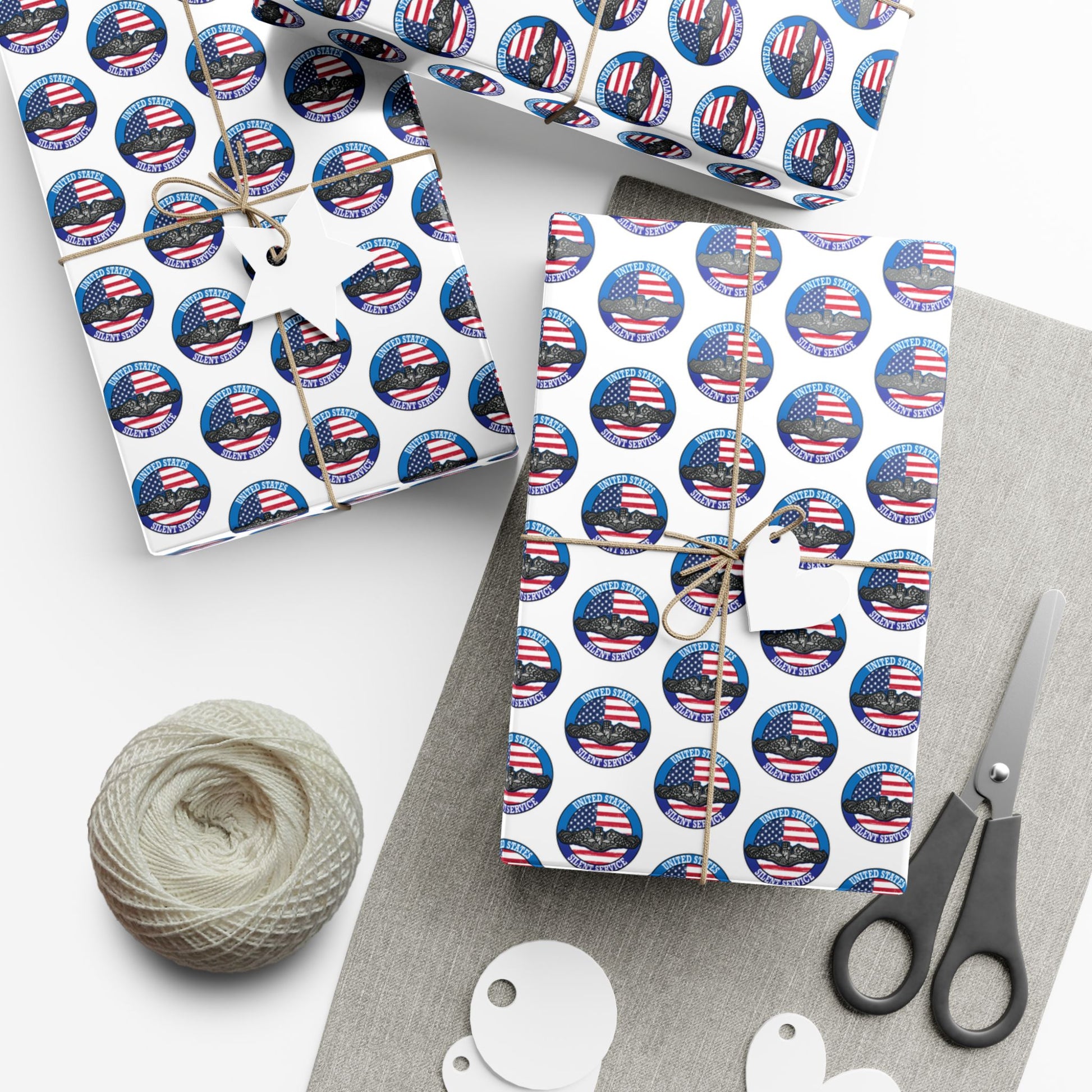 Celebrate naval heritage with this bold and patriotic "United States Silent Service" gift wrapping paper. Featuring the iconic silver submarine dolphins insignia over a distressed American flag backdrop, this design honors the strength, sacrifice, and silent pride of the United States Submarine Force.