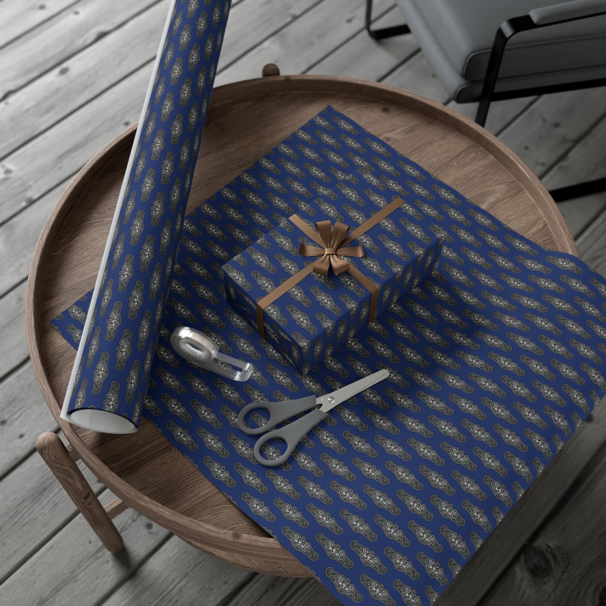 United States Navy Submarine Force Silver Dolphins Blue Gift Wrapping Paper Sheet.