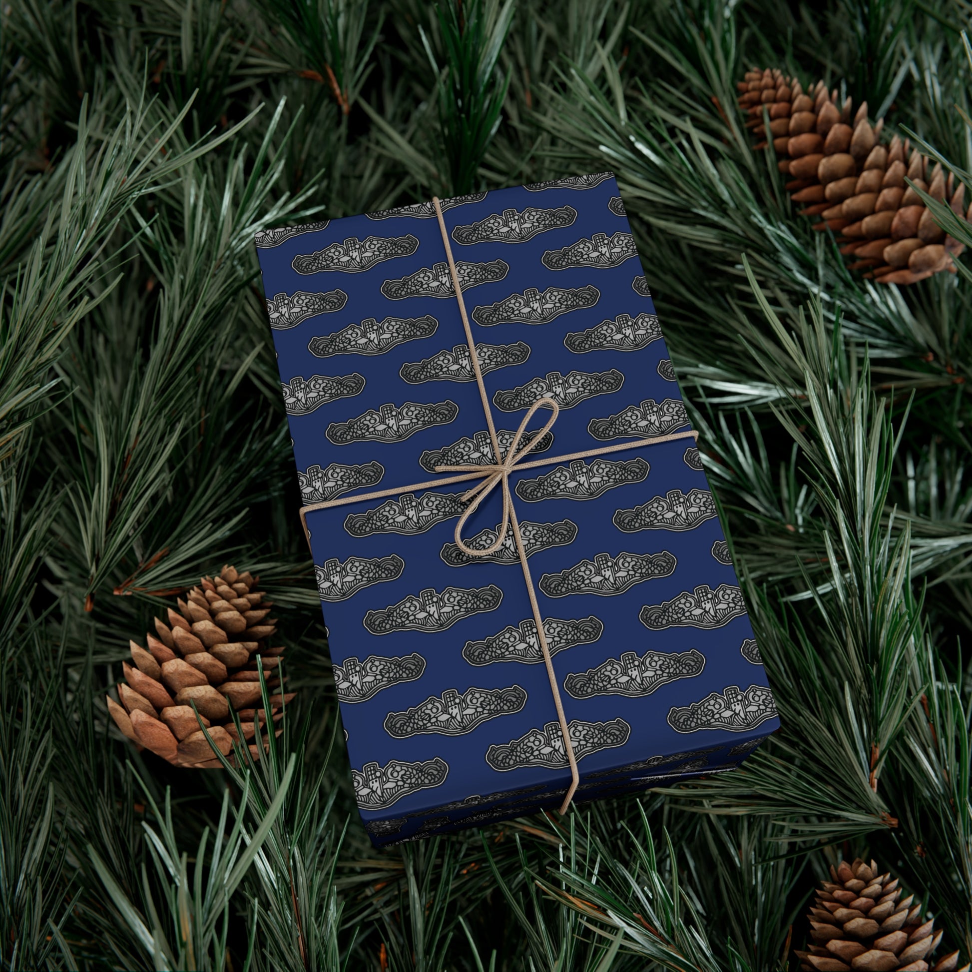 United States Navy Submarine Force Silent Service Silver Enlisted Dolphins Blue Gift Wrap Papers