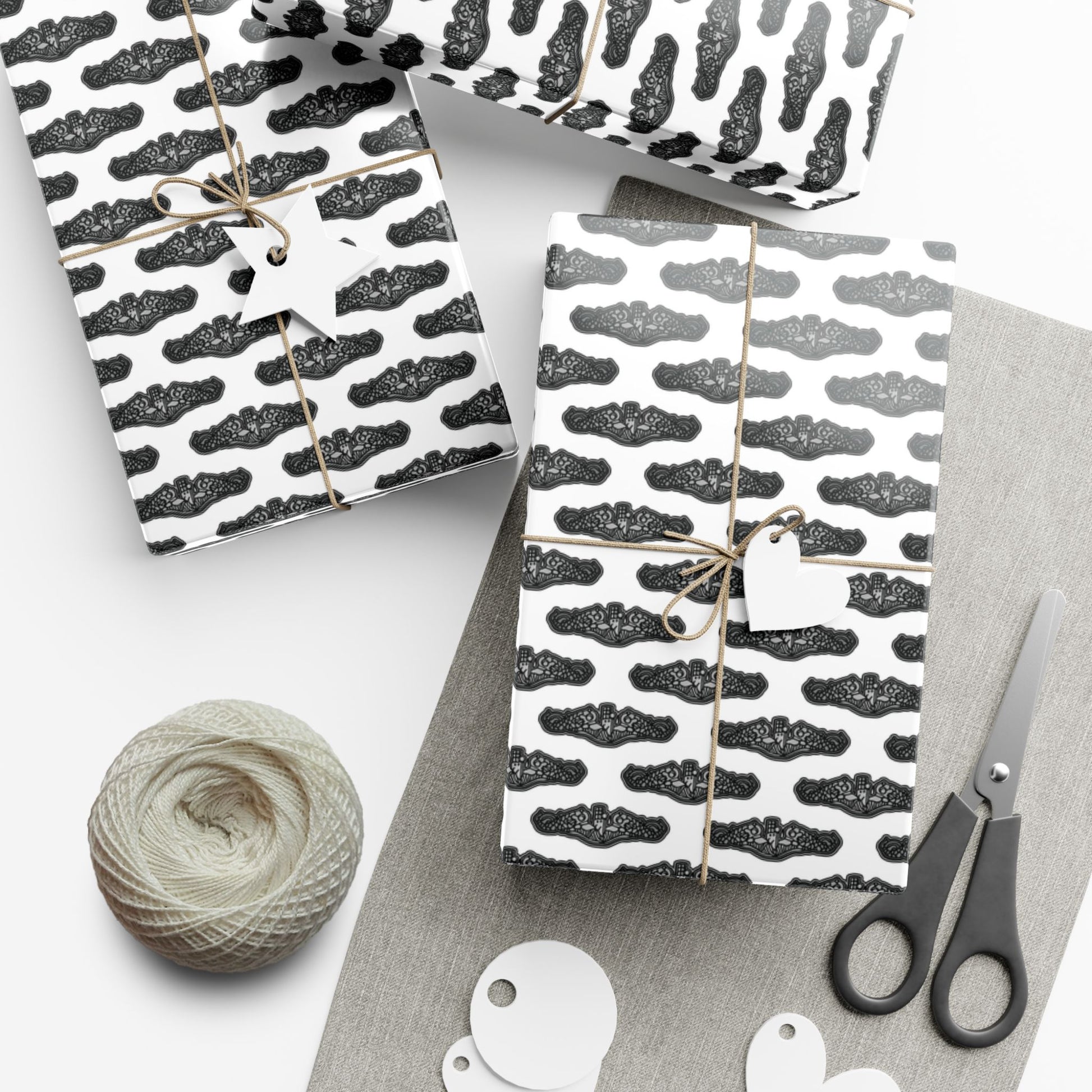 United States Navy Submarine Force Silent Service Silver Enlisted Dolphins White Gift Wrap Papers