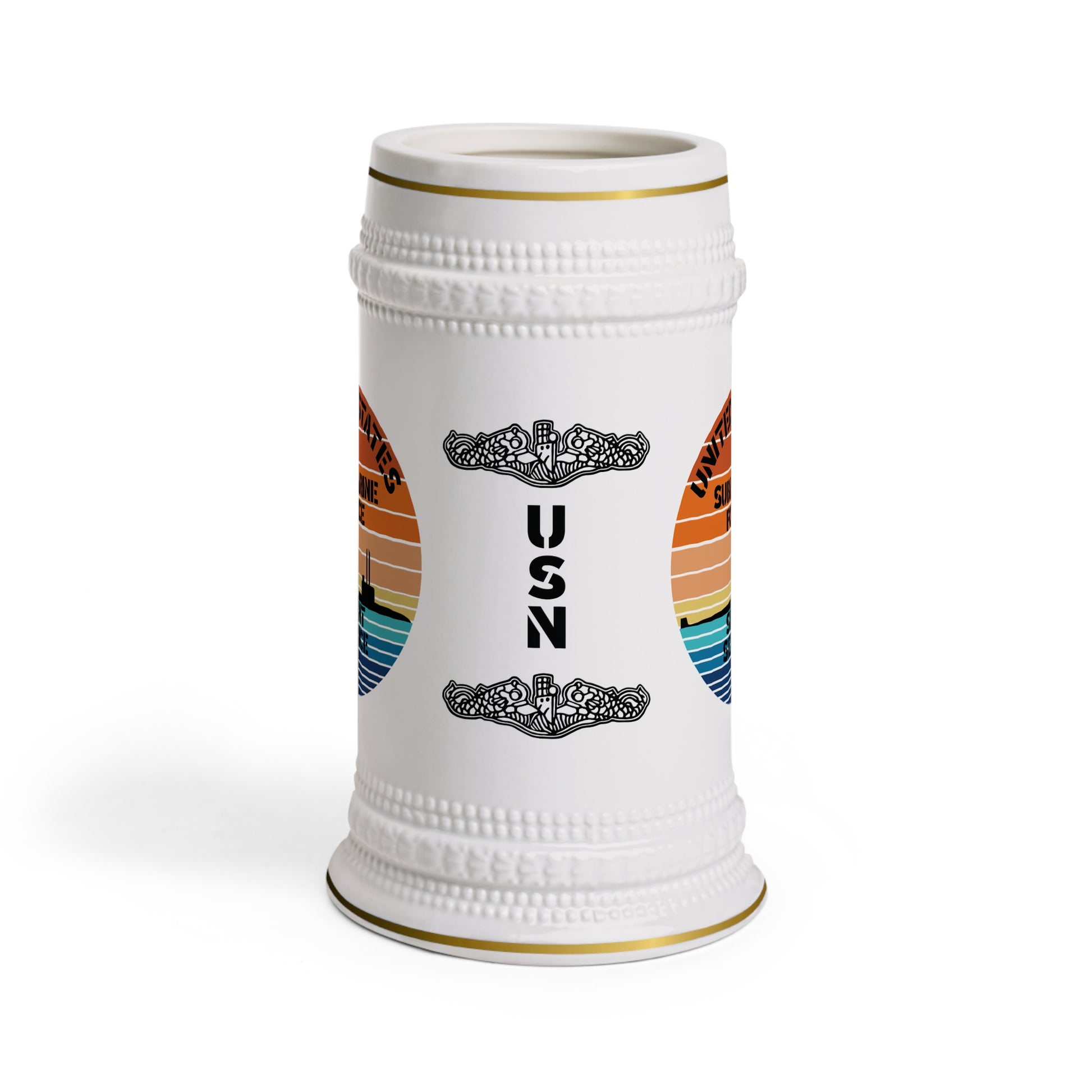 Whether you’re shopping for a proud submariner, a Navy veteran, or someone with deep military ties, this design delivers a powerful blend of patriotism, history, and style. And I’m sure this beer stein will look good in someone's collection.