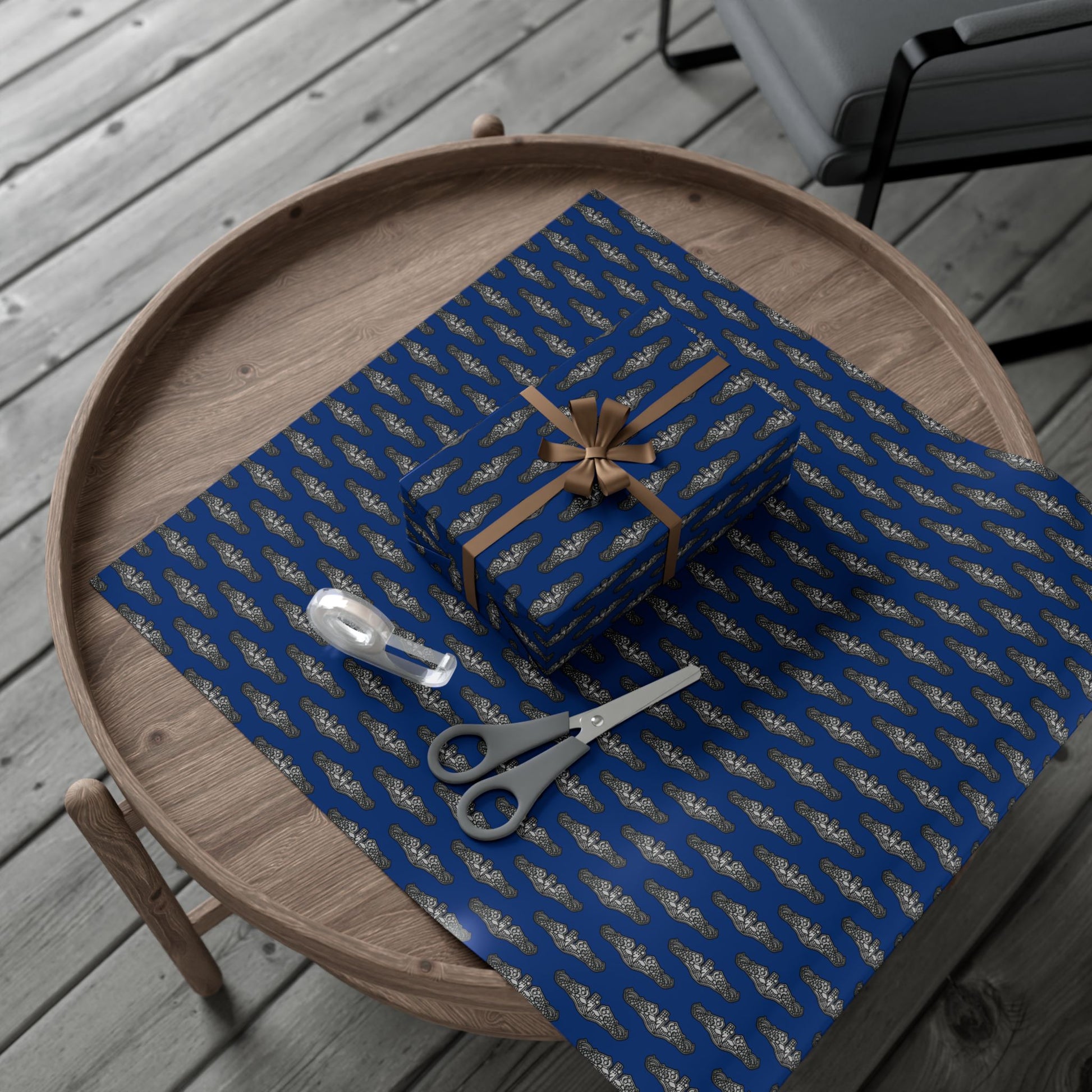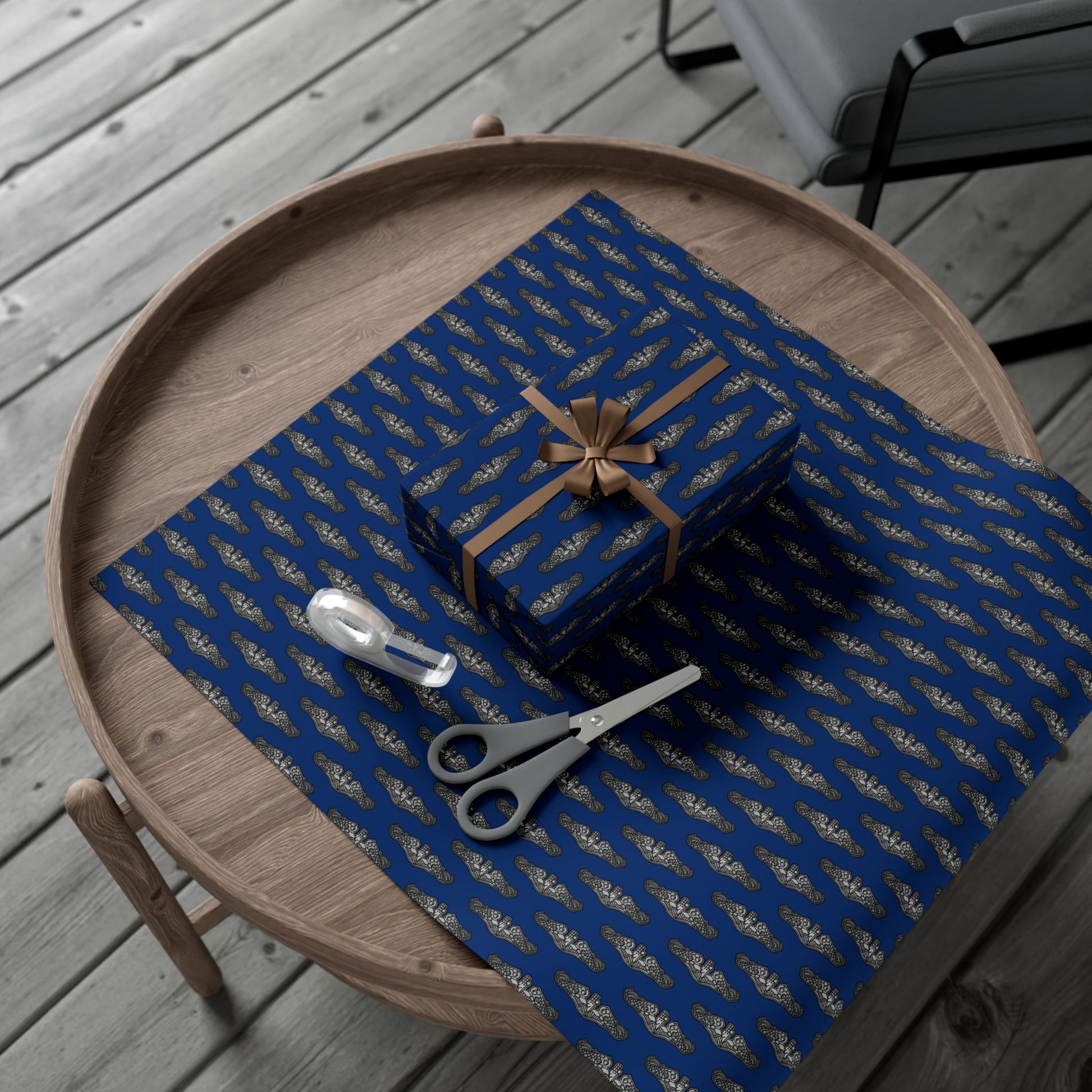 United States Navy Submarine Force Silver Dolphins Blue Gift Wrapping Paper Sheet.