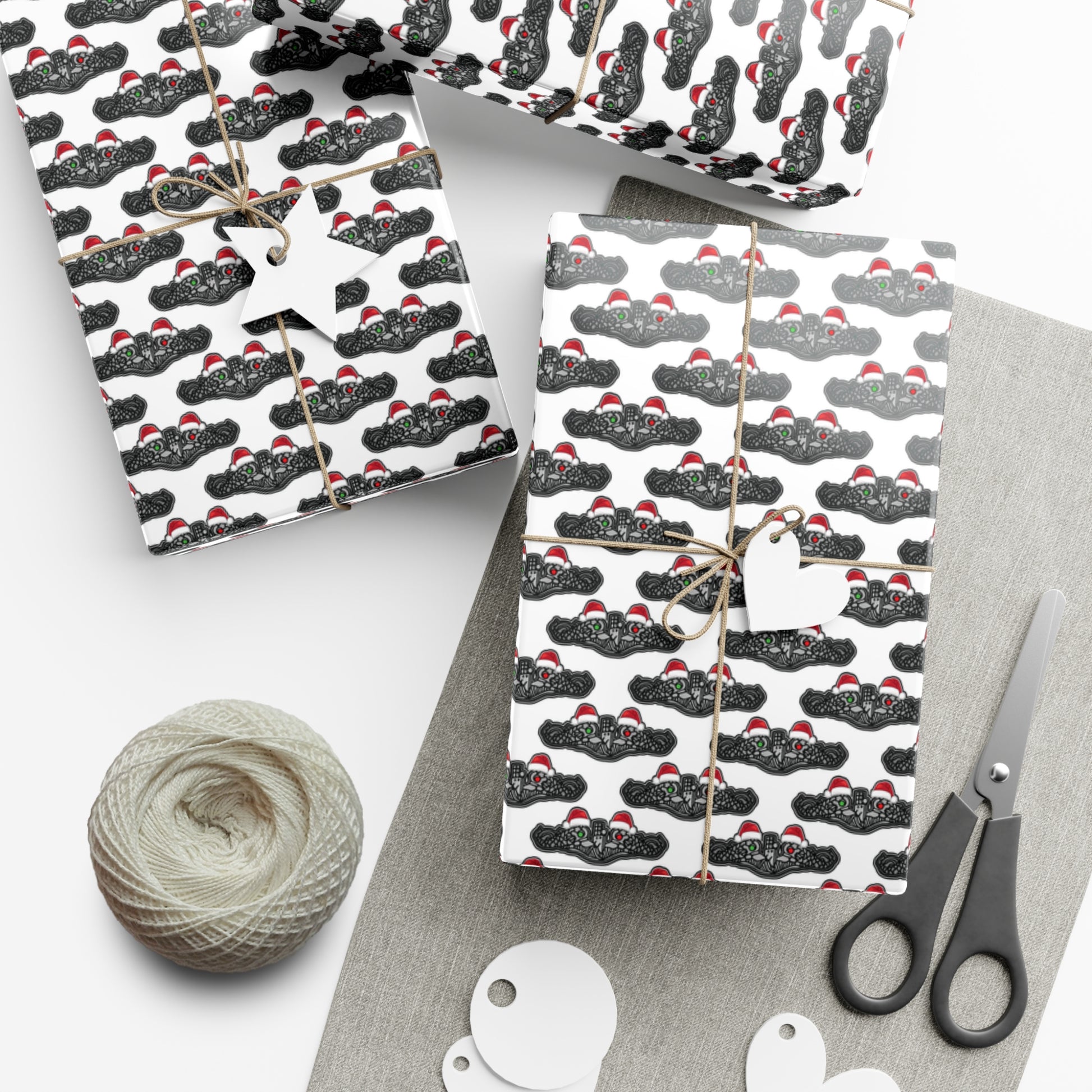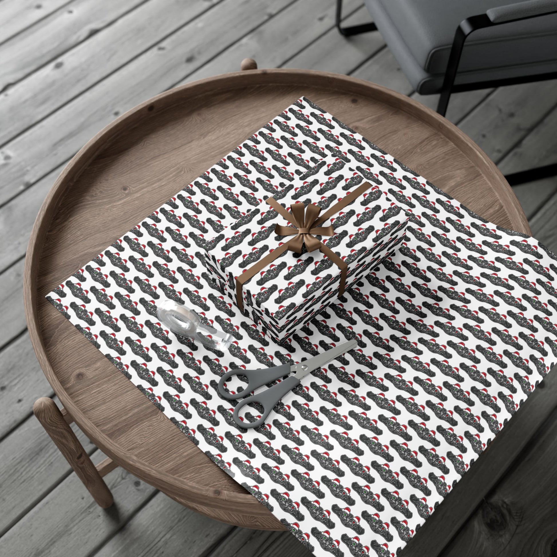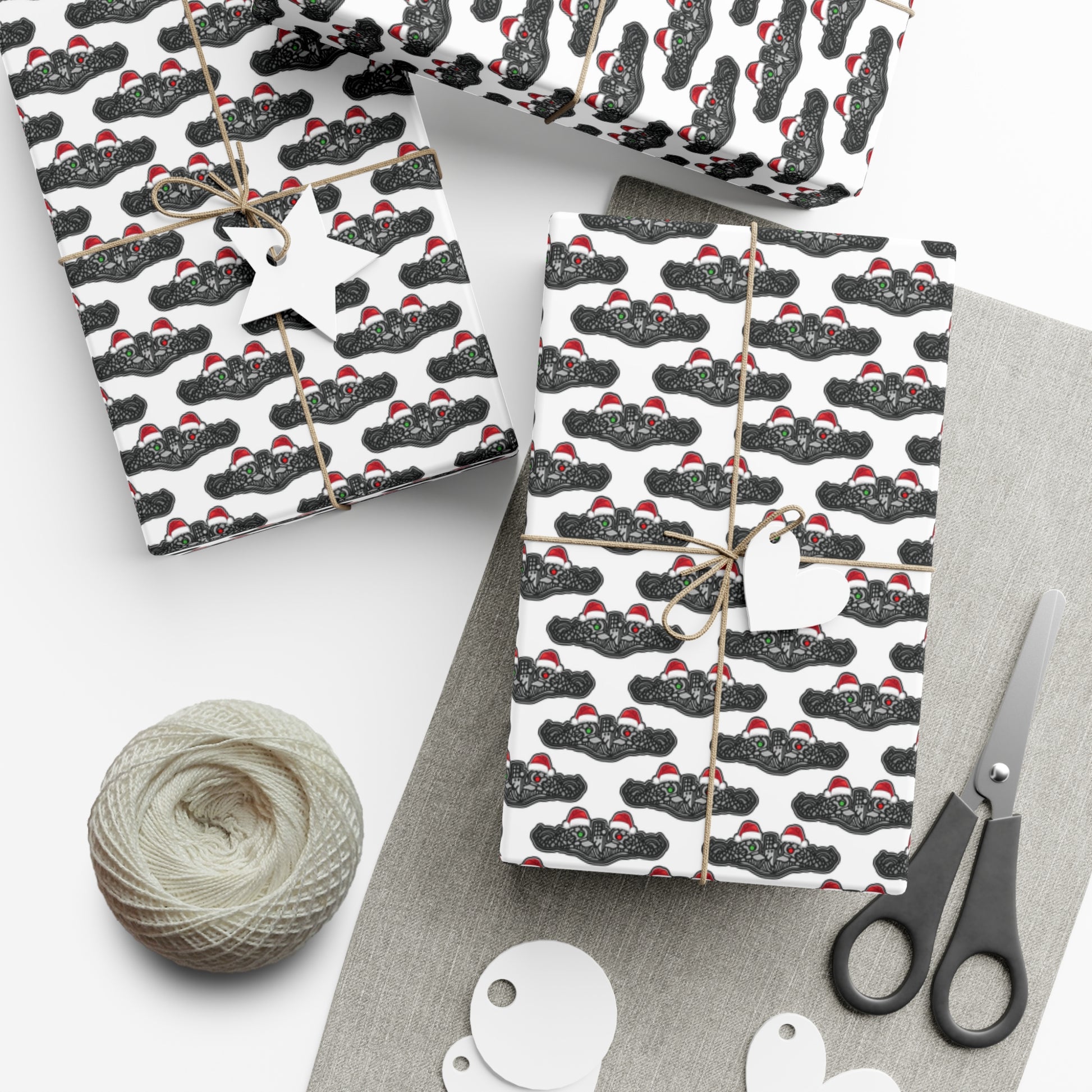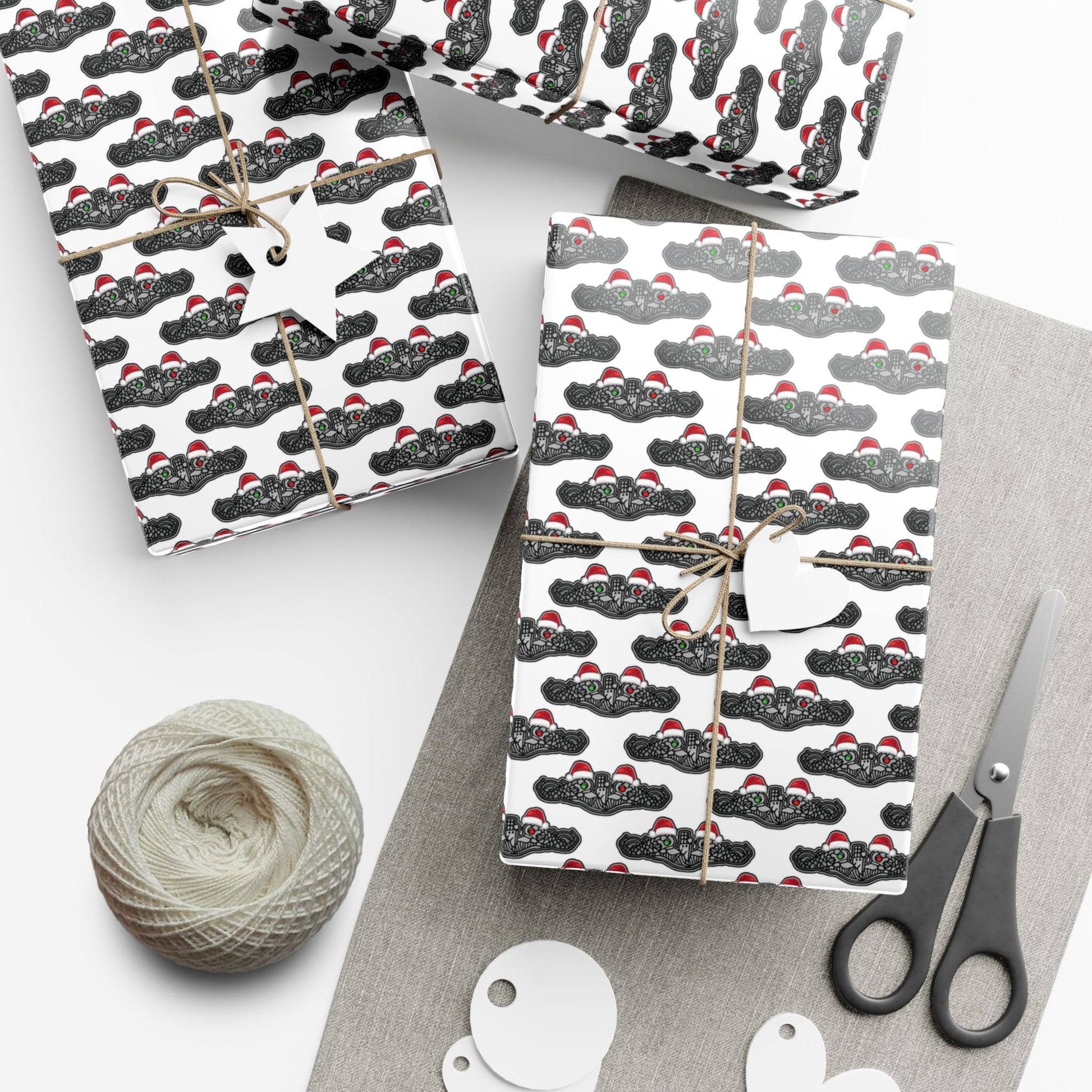 United States Navy Submarine Force Silver Enlisted Dolphins Christmas Hats with Red and Green Eyes White Gift Wrap Papers