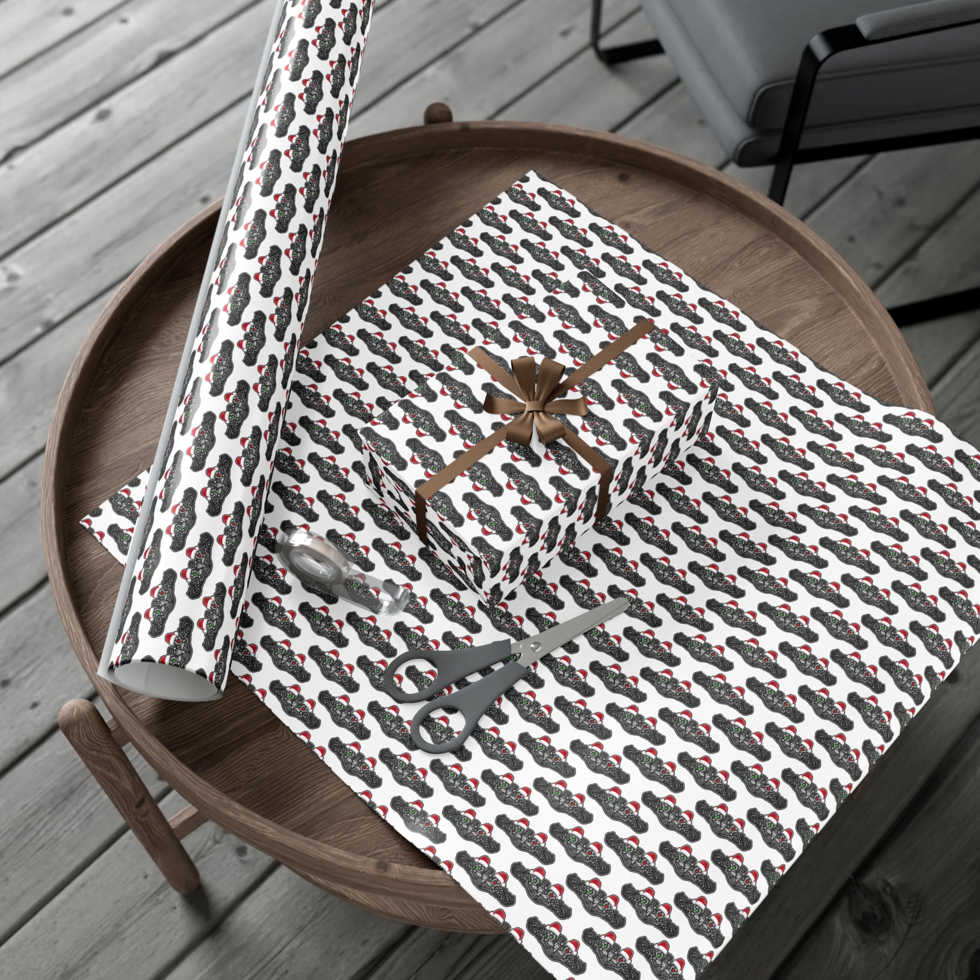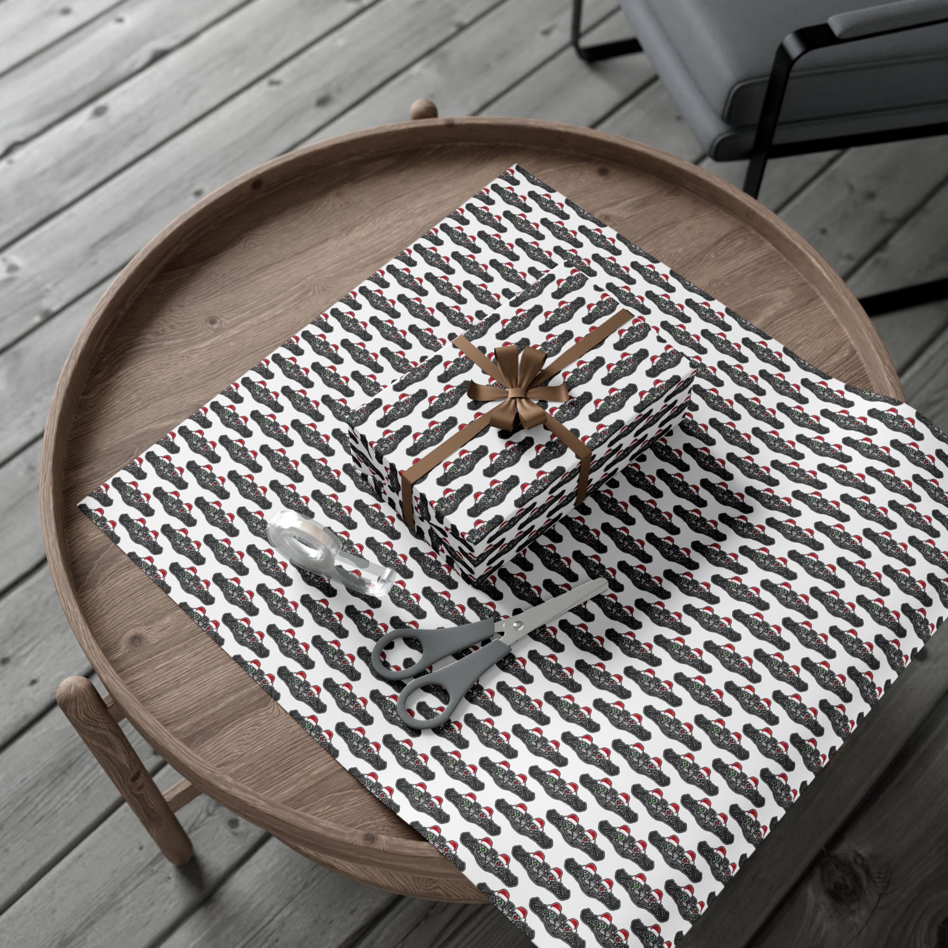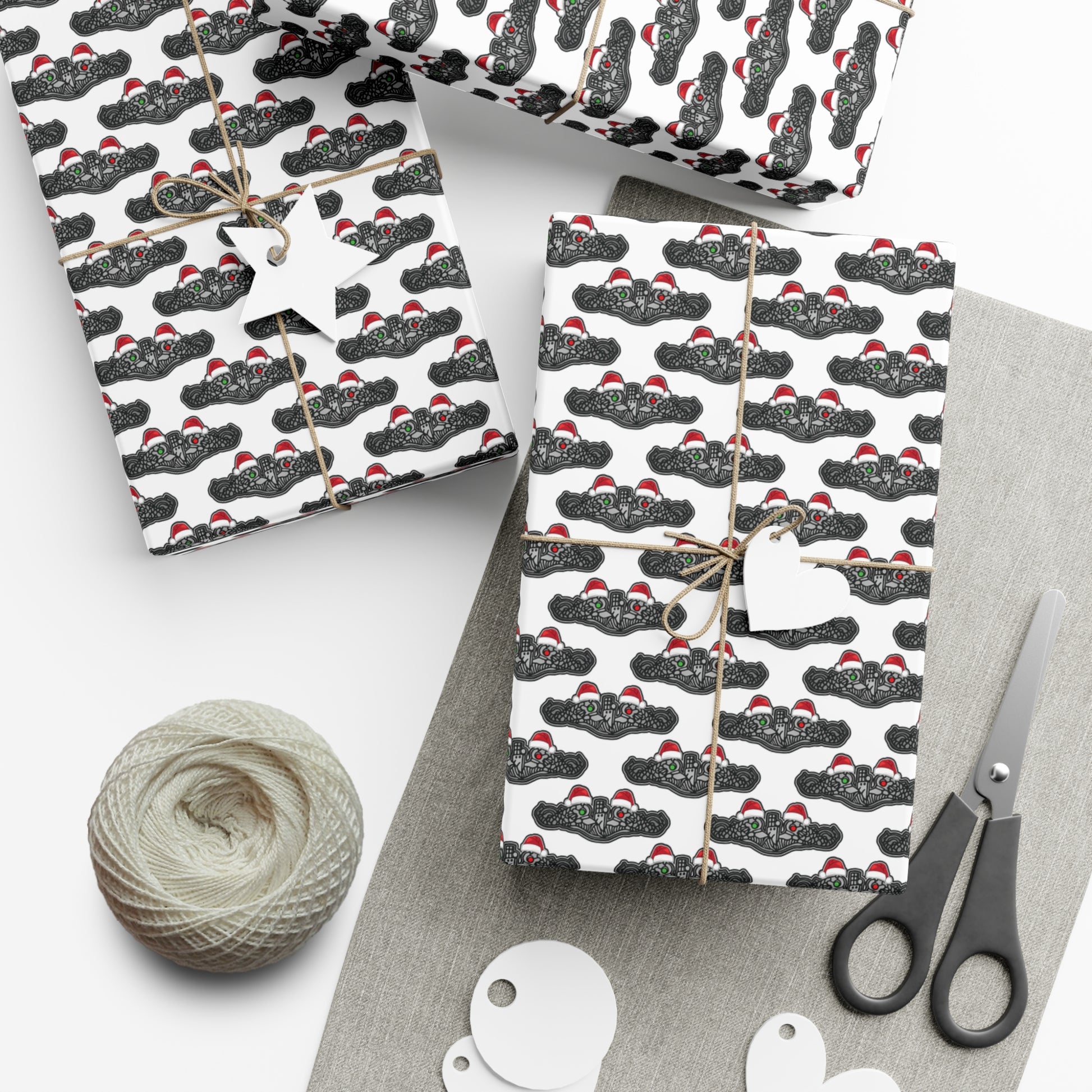 United States Navy Submarine Force Silver Enlisted Dolphins Christmas Hats with Red and Green Eyes White Gift Wrap Papers