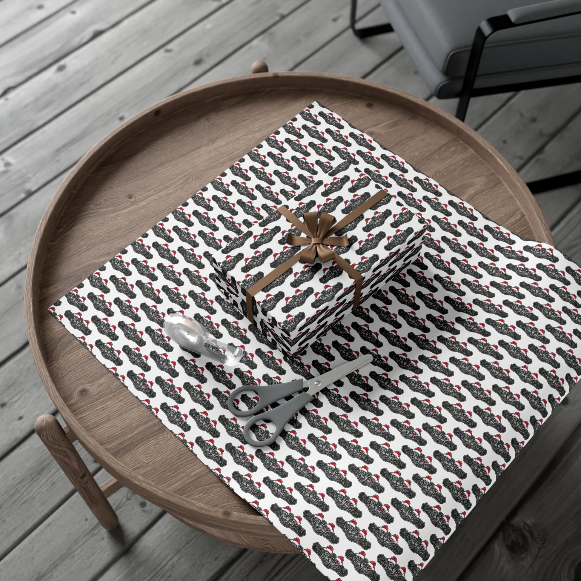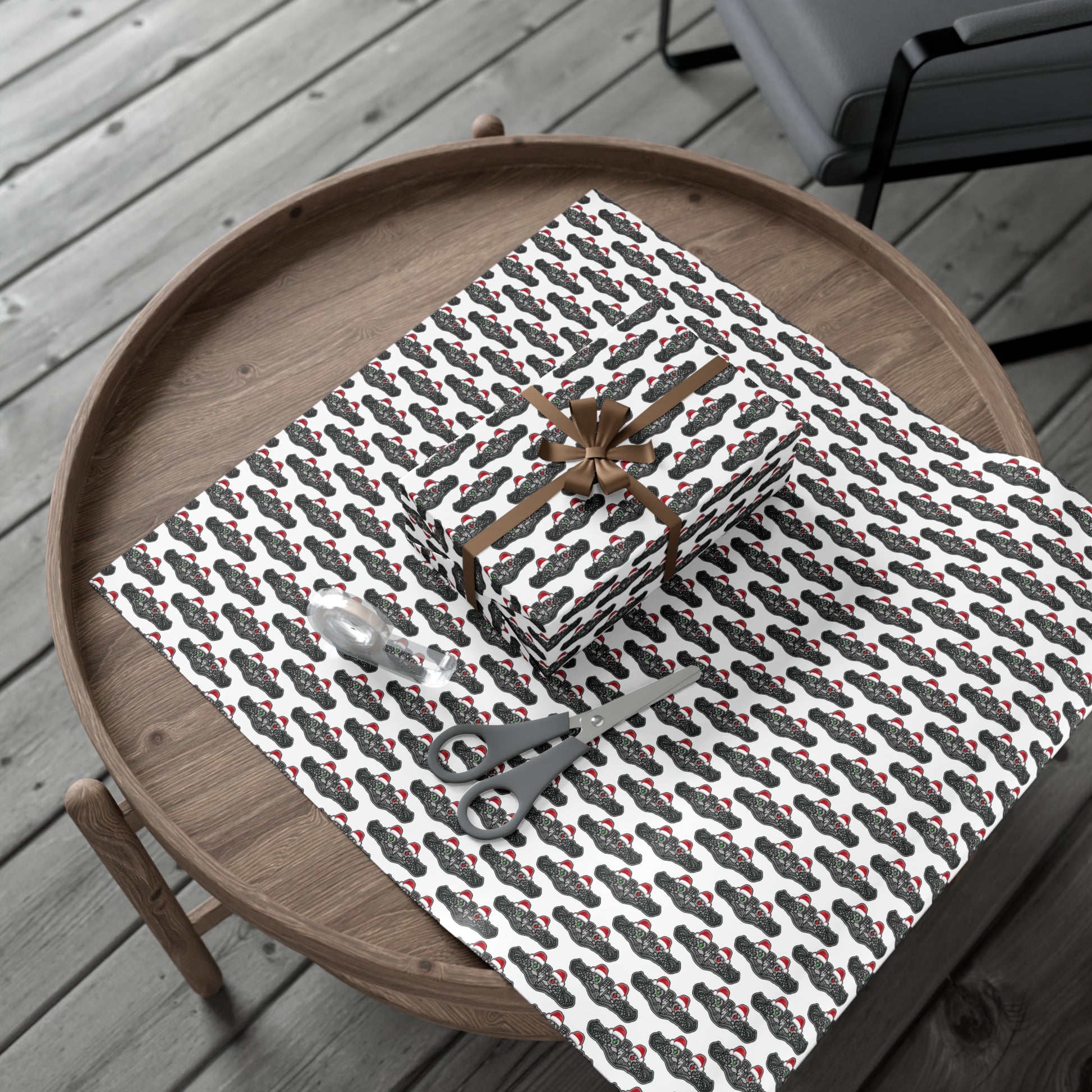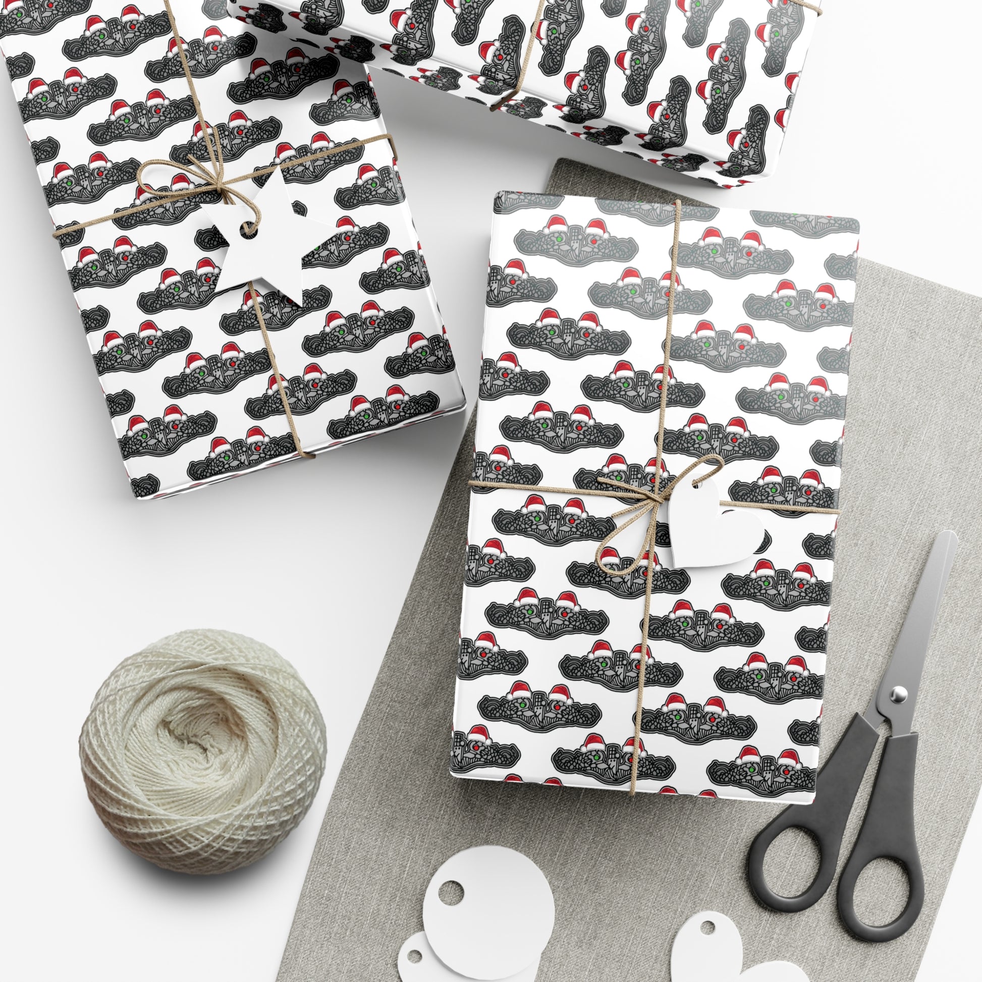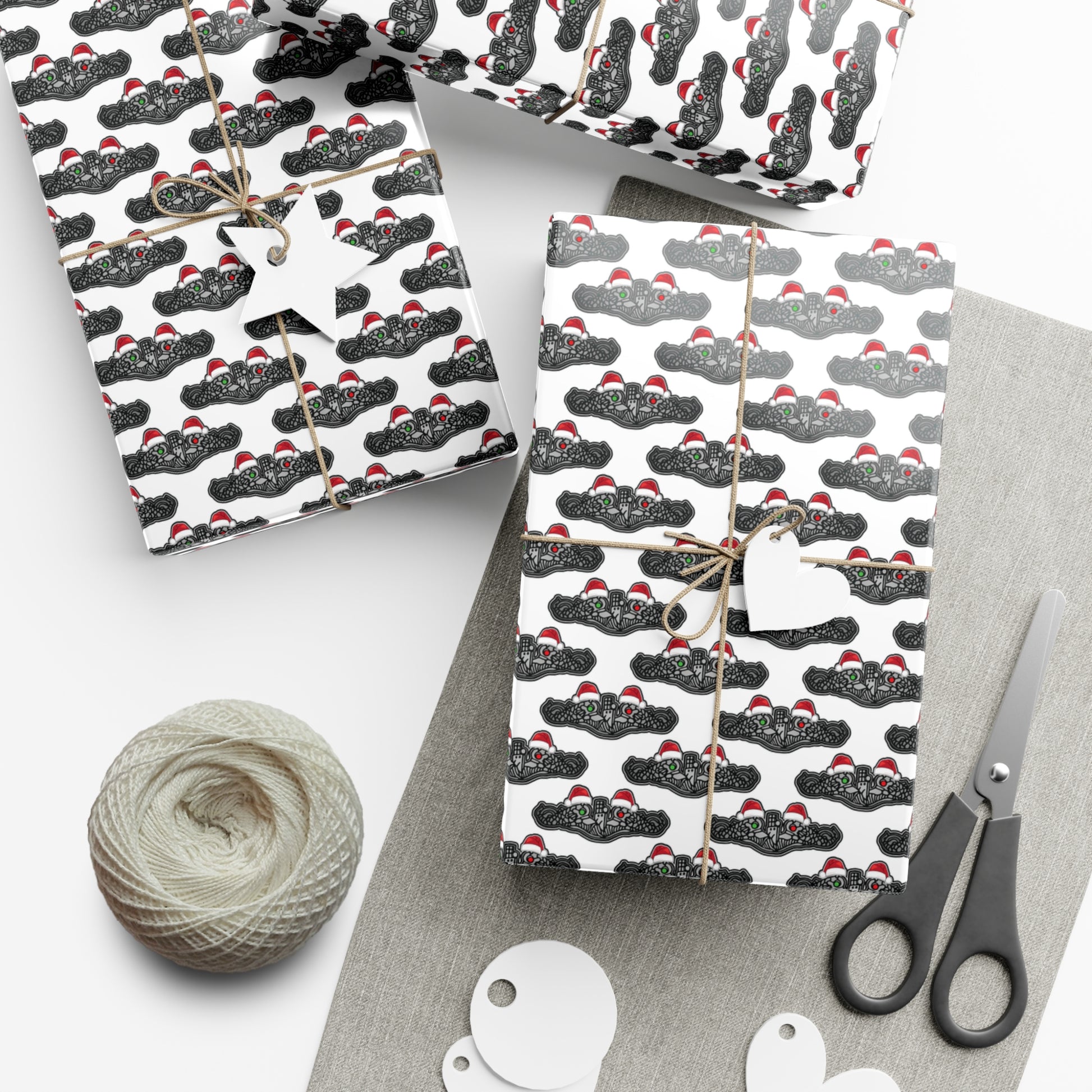 United States Navy Submarine Force Silver Enlisted Dolphins Christmas Hats with Red and Green Eyes White Gift Wrap Papers