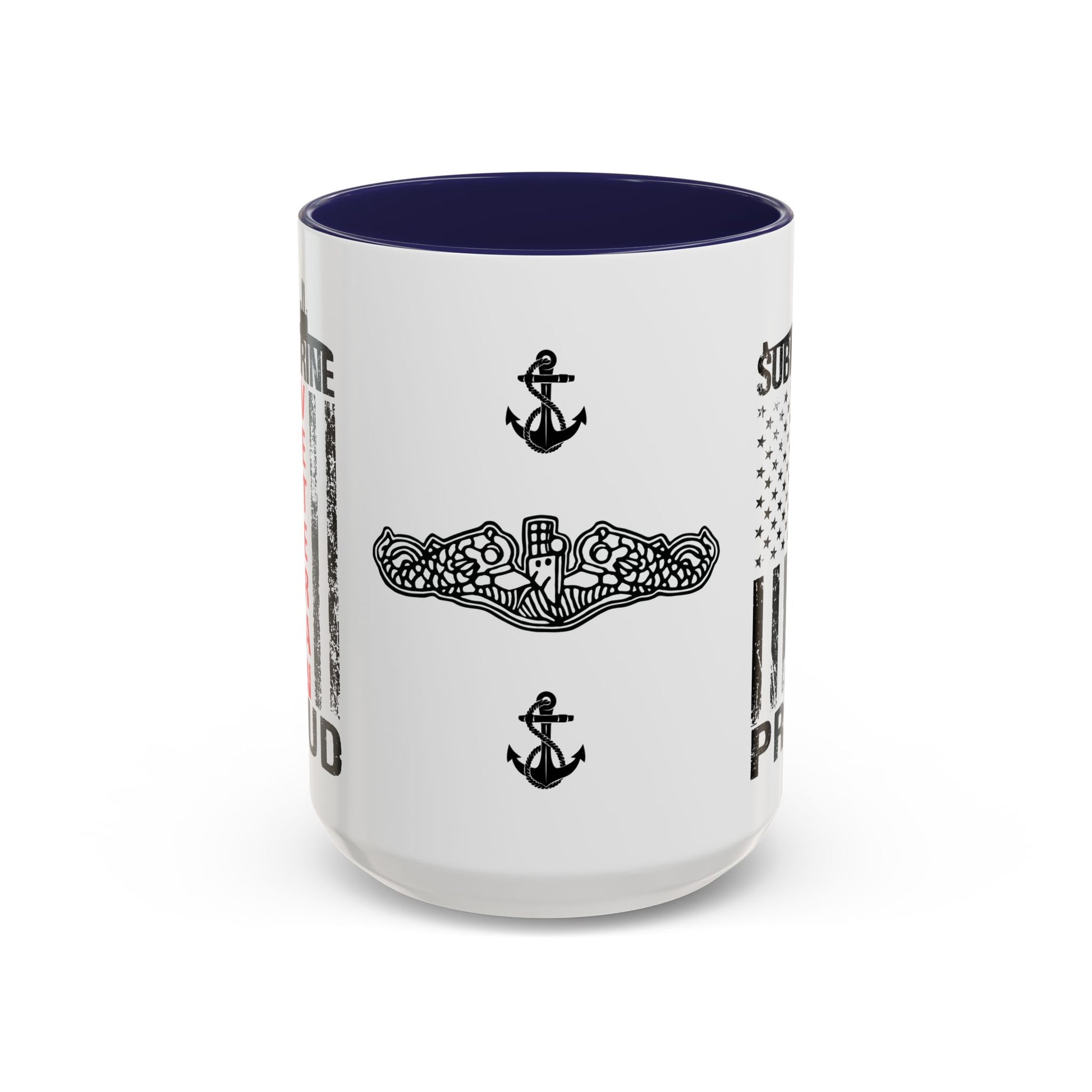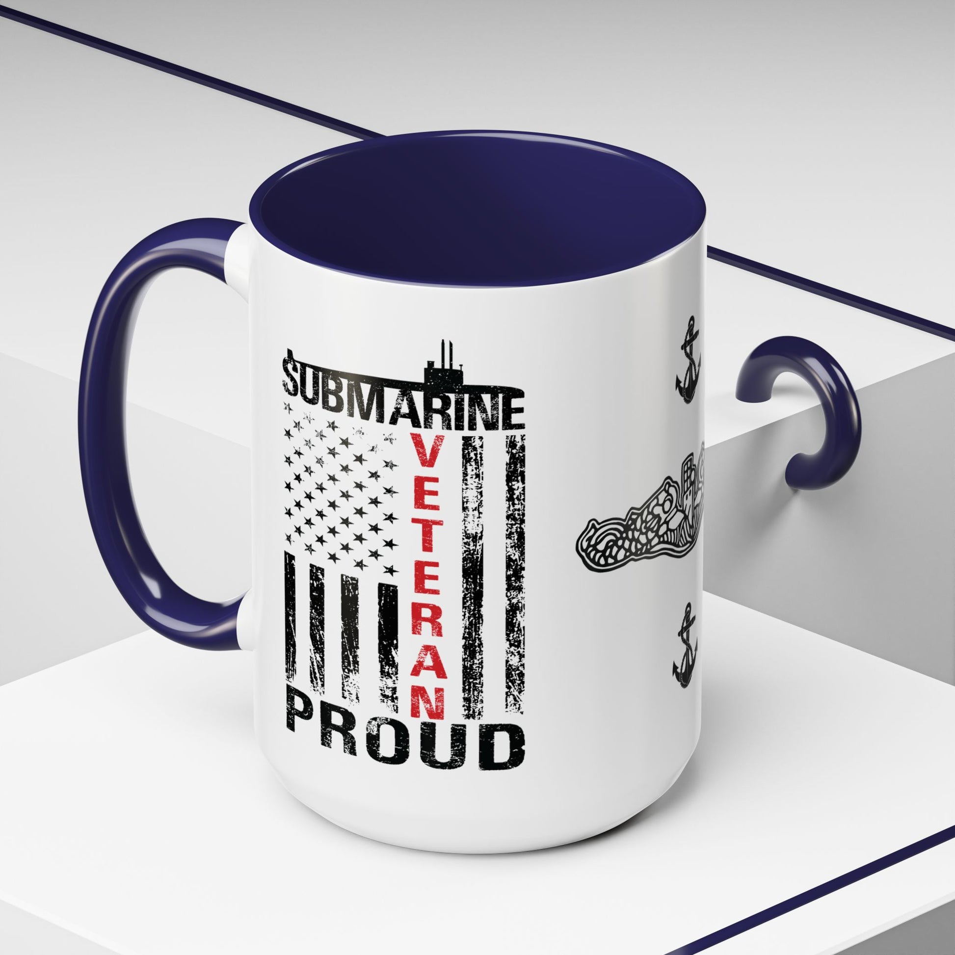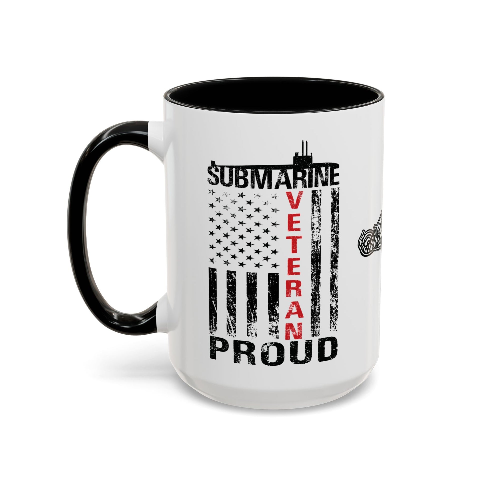 USN Submarine Force Veteran Proud Silent Service USA Distressed Flag Two-Tone Accent Coffee Mugs.