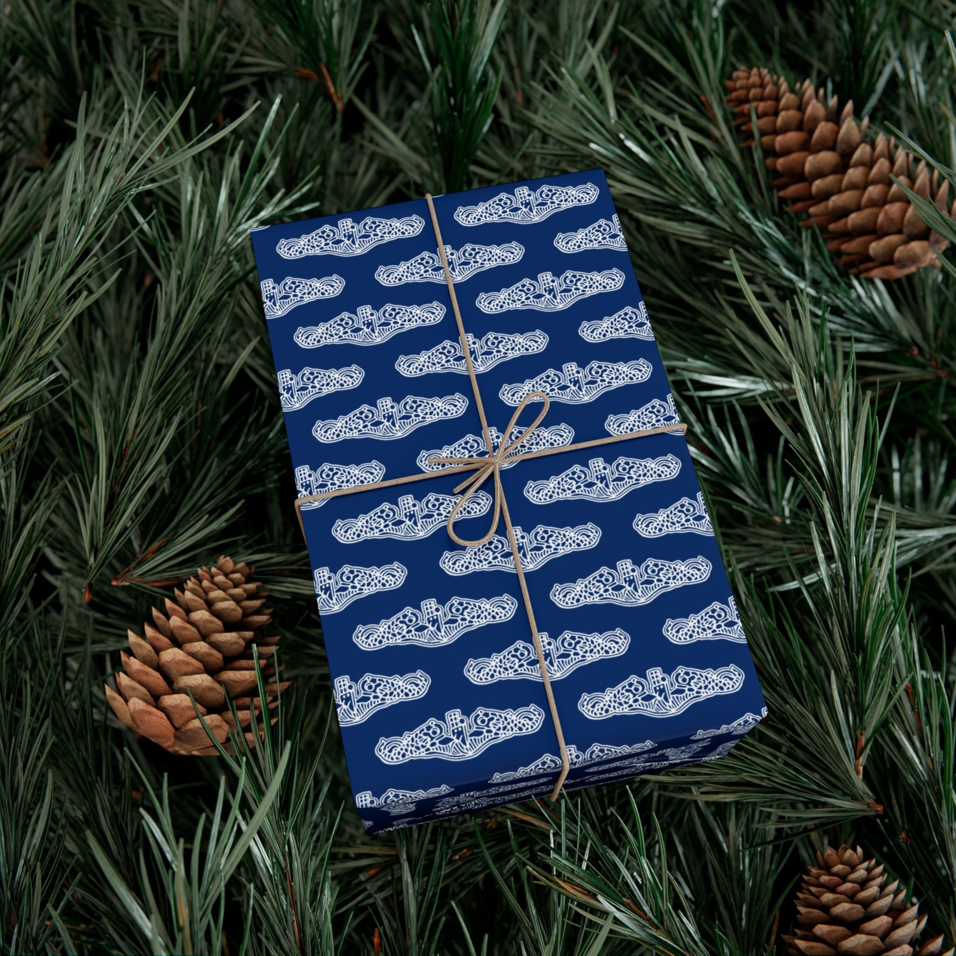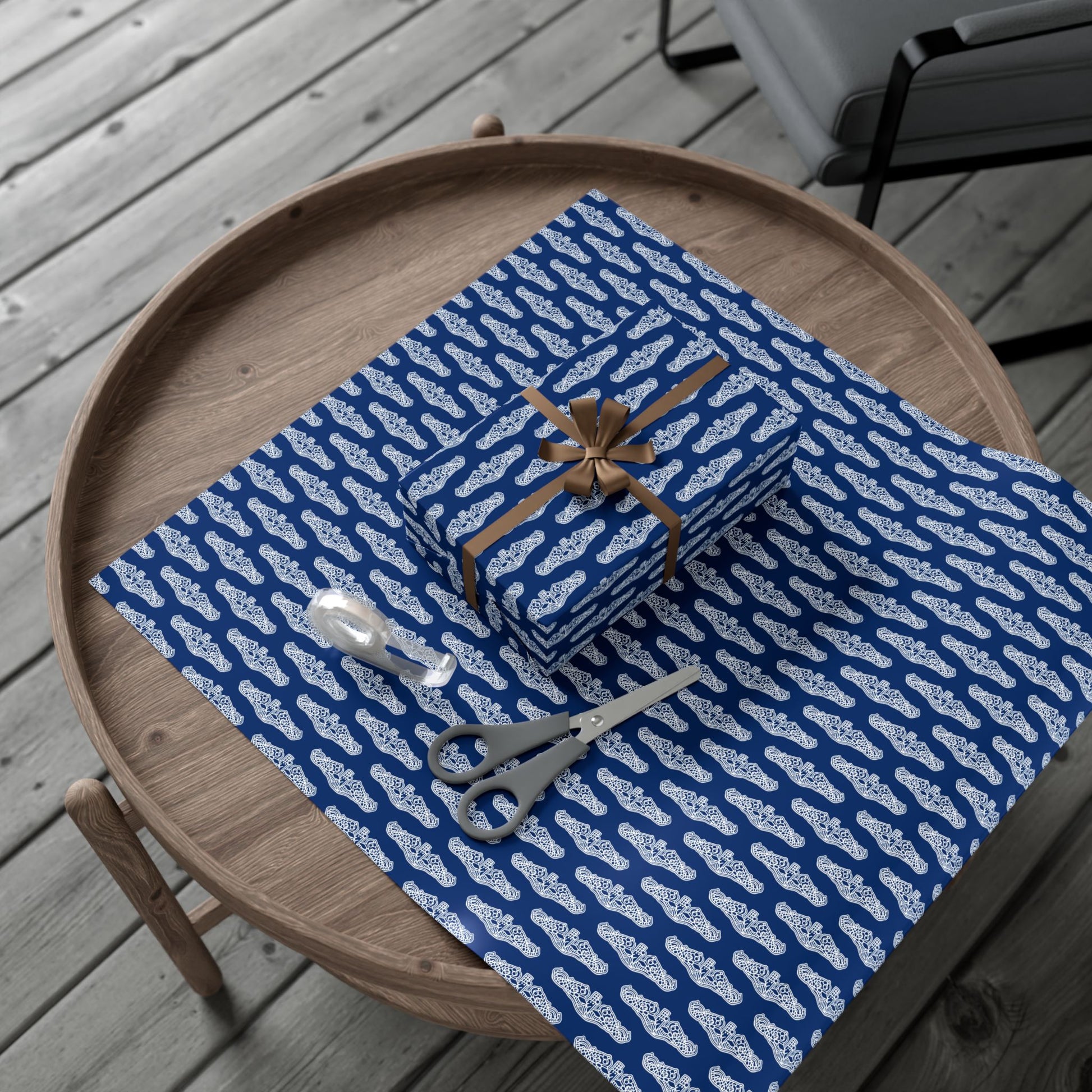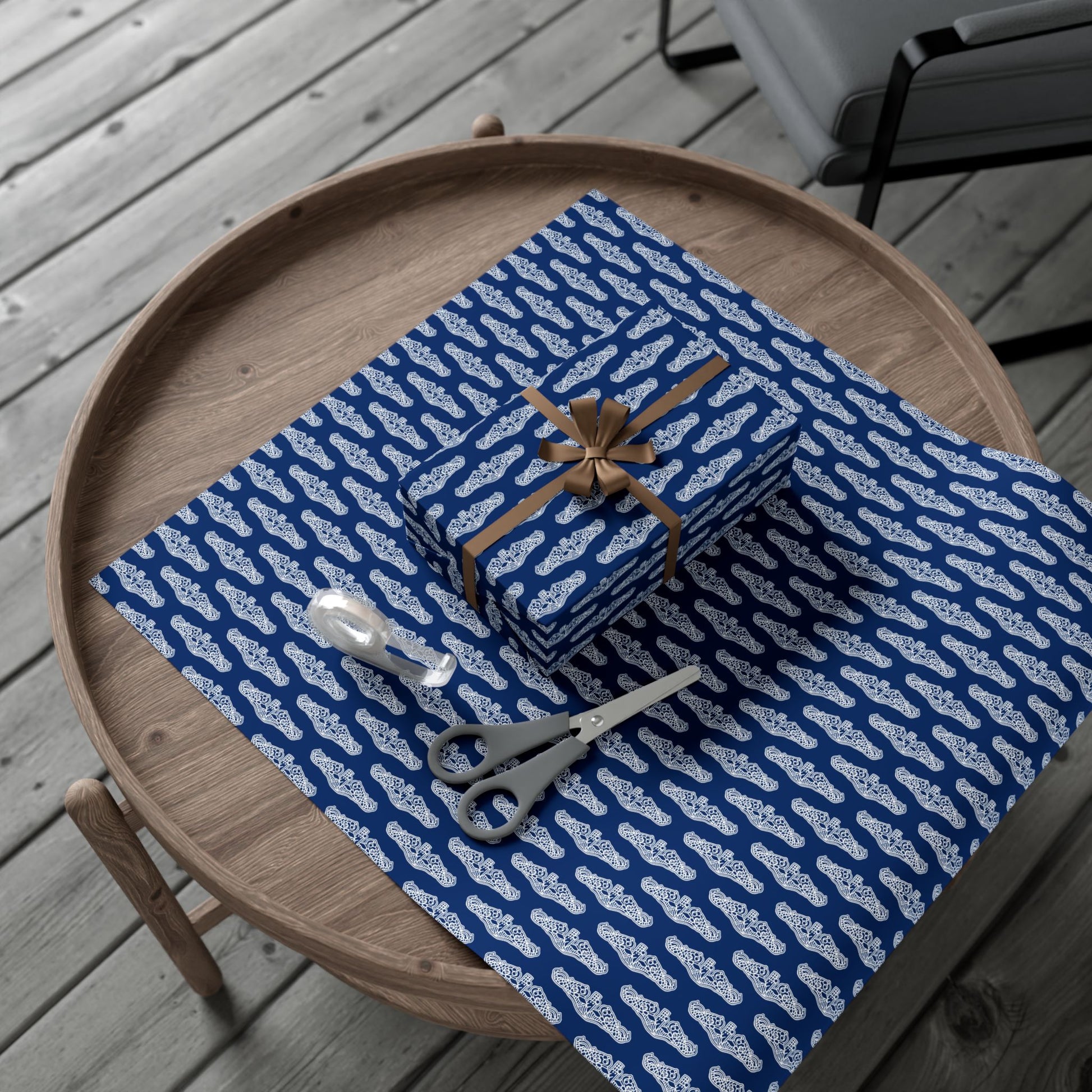 United States Navy Submarine Force White Dolphins Blue Gift Wrapping Paper Sheet.