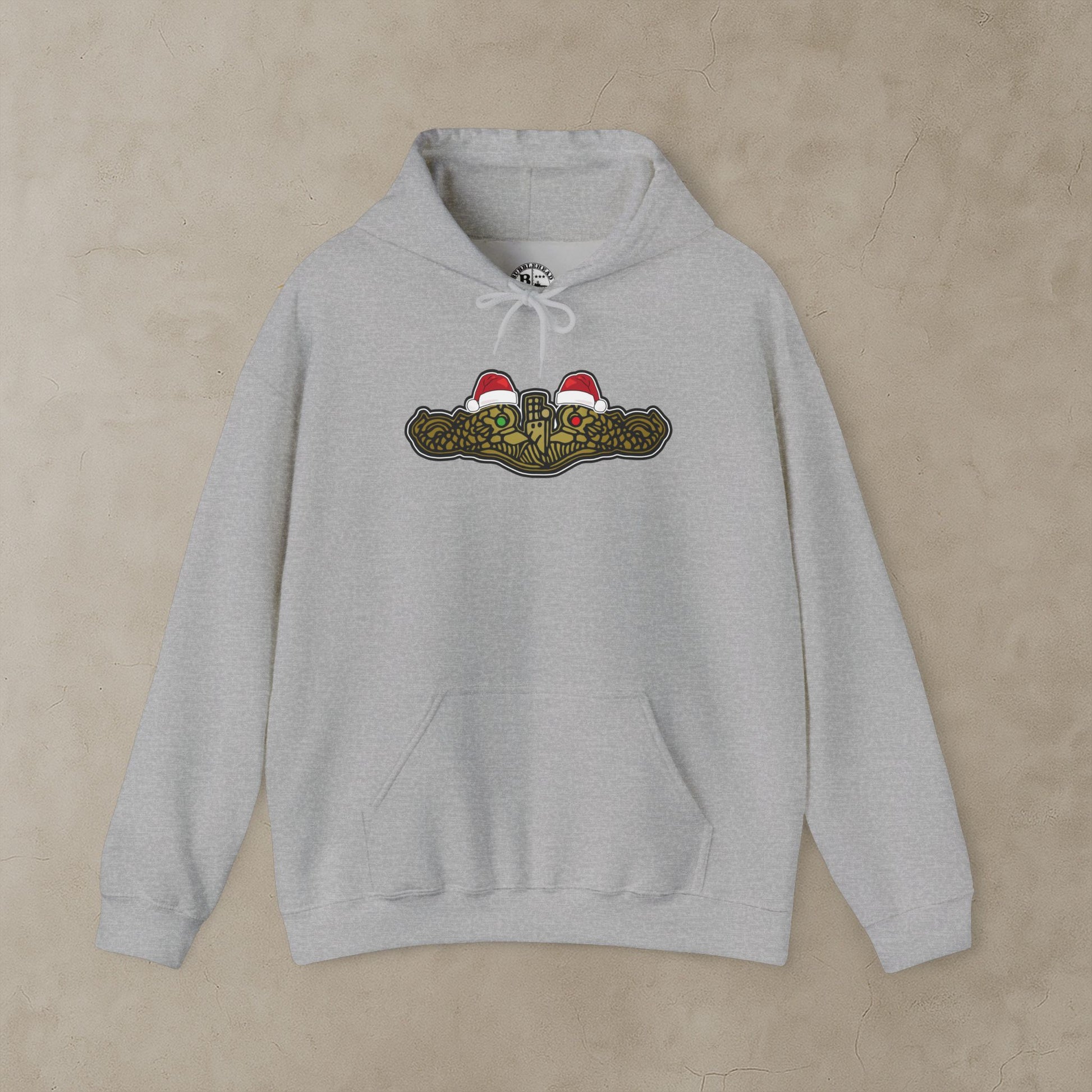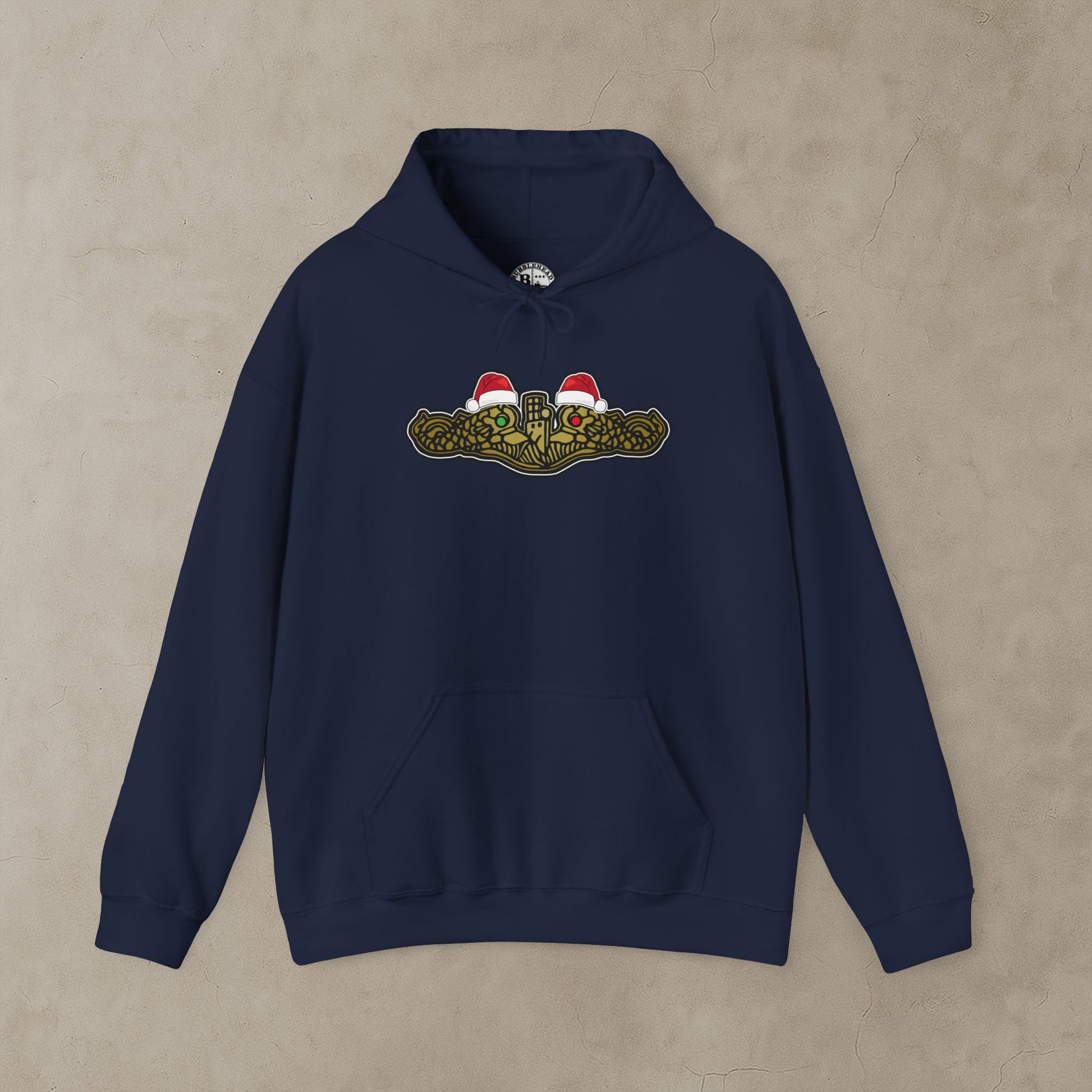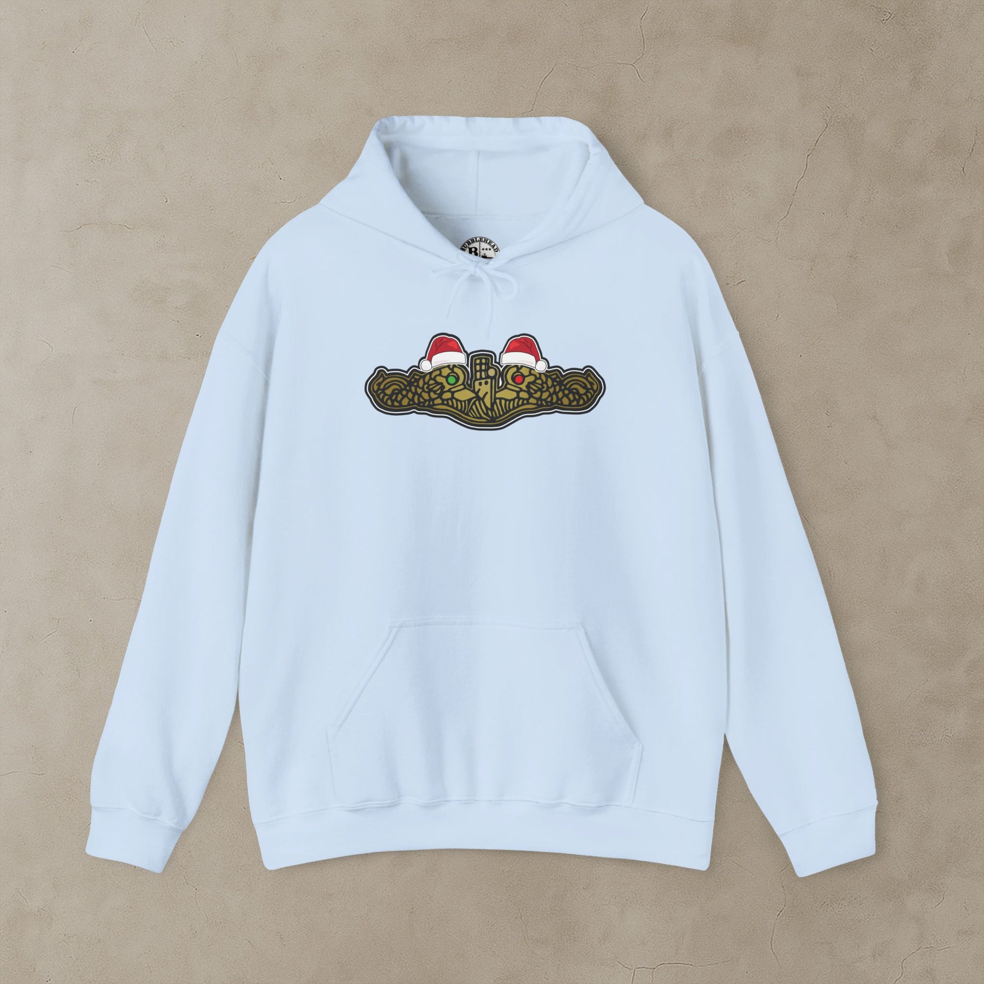 United States Submarine Force Gold Dolphins Christmas Hats with Red and Green Eyes Unisex Heavy Blend™ Hooded Sweatshirt