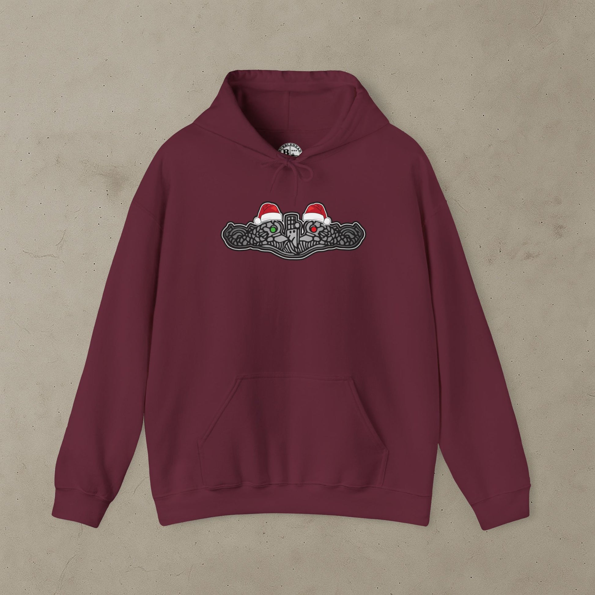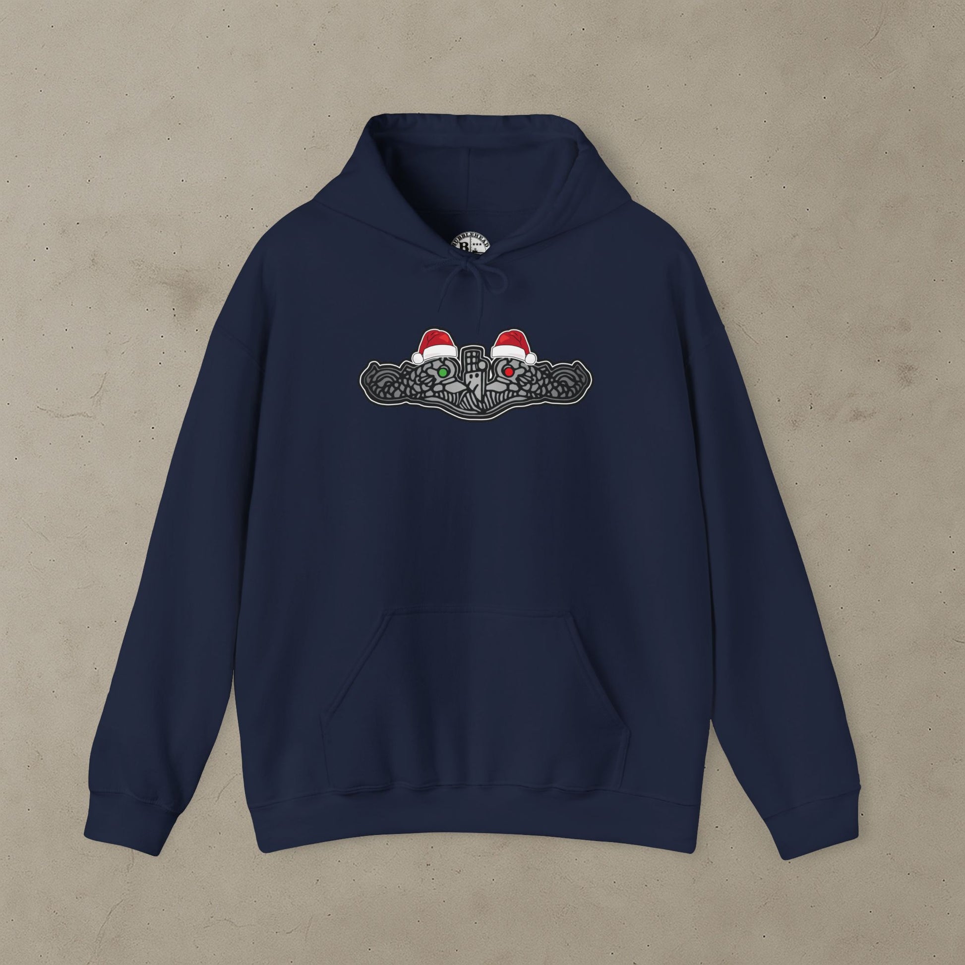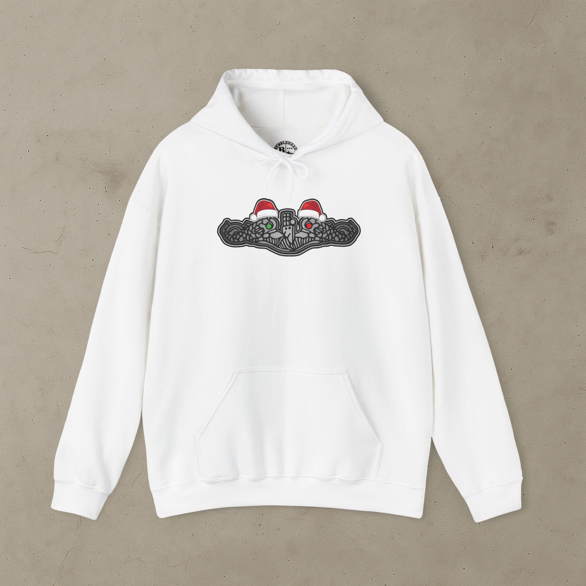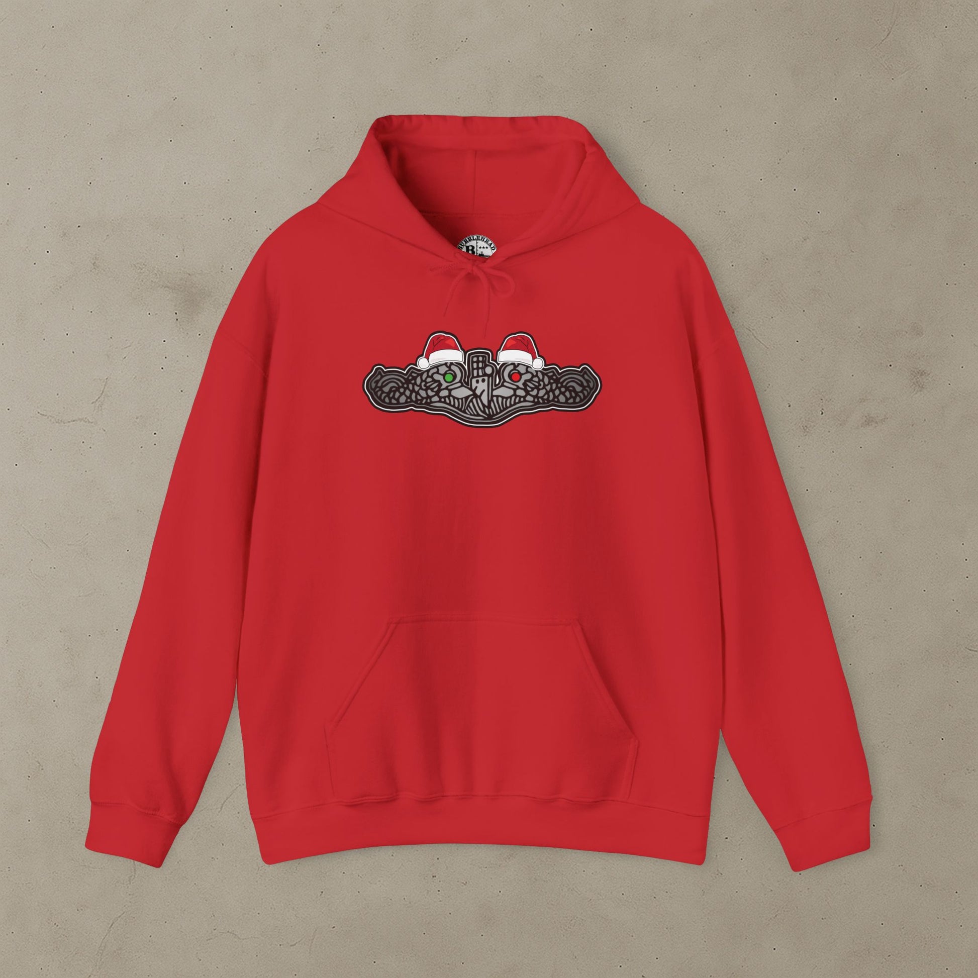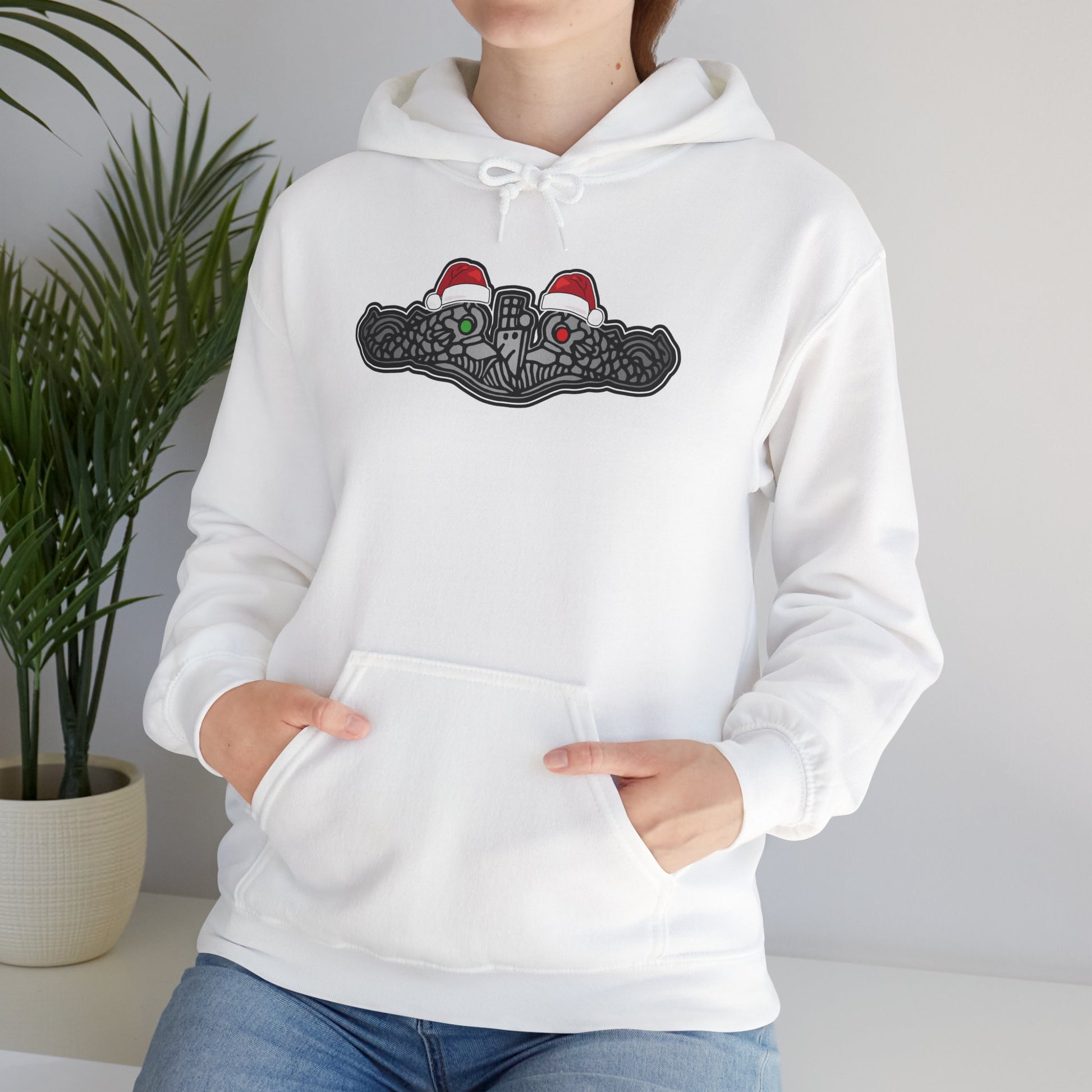 United States Submarine Force Silver Dolphins Christmas Hats with Red and Green Eyes Unisex Heavy Blend™ Hooded Sweatshirt